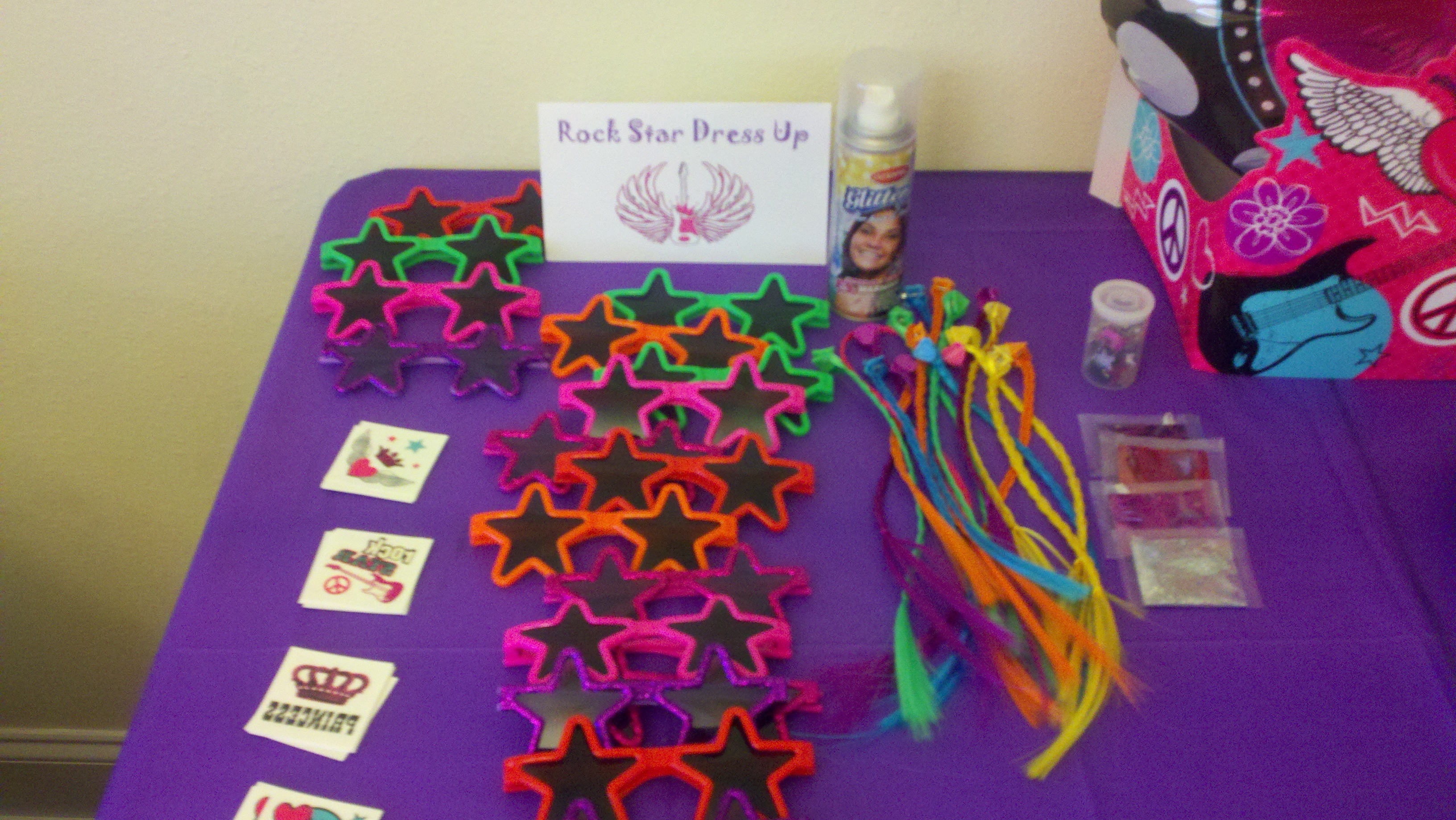 The children had a blast jumping in the castle inflatable, dressing up, breaking open the rock guitar pinata, eating rock candy, star shaped sandwiches, rock star cake and just plain old playing!