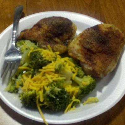 My retired husband surprised me one day this week by vacuuming, taking out the trash, doing 3 loads of laundry, cooking dinner and several other wonderful things to chickenbrocollicome home from work to.  He cooked baked chicken and fresh broccoli and cauliflower with cheese.  He even served it to me!  What a nice thing to come home to after a long work day!