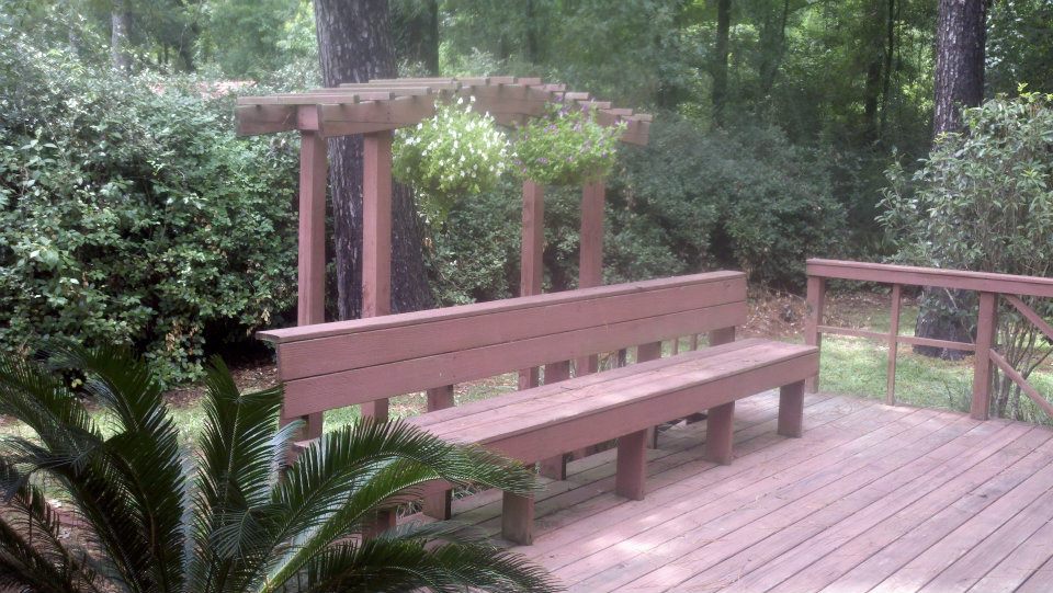 Roy and I are both exhausted trying to get so much accomplished now that we have a departure date set.  While we’ve been working on this for months there are somethings you cannot do until you know you are leaving.  Our list is long and everything on the list is either emotional and/or time consuming.  This week Roy has cleaned the RV roof, pressure washed the back porch and sidewalks at our house, cleaned by hand and pressure washed and painted  brendatrellisthe stain on the huge deck (with benches and trellis) at our rental house, painted some things in our sticks and bricks house, fixed the RV a/c in the dashboard, listed and prepared for shipping at least a dozen things on EBay.