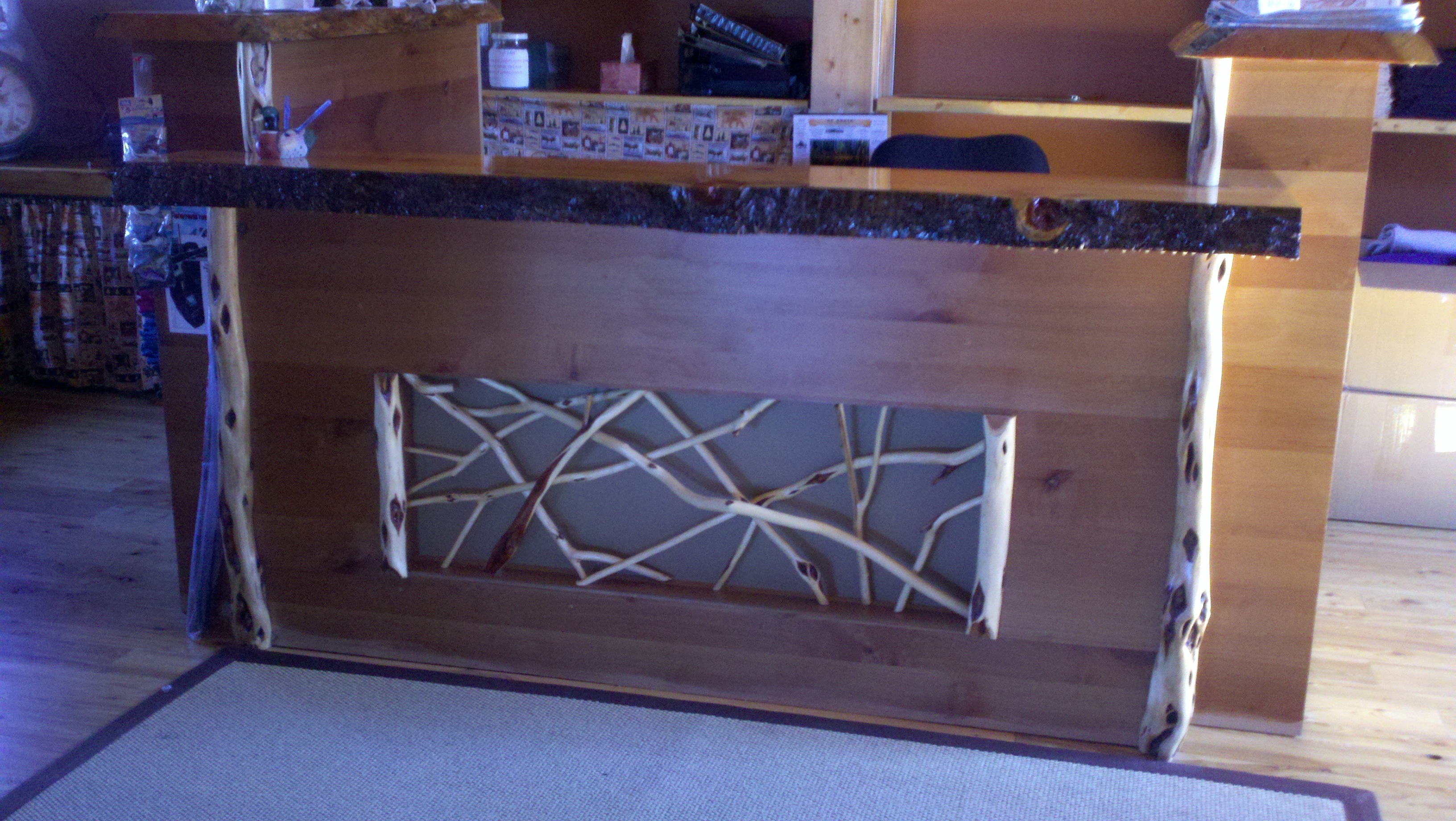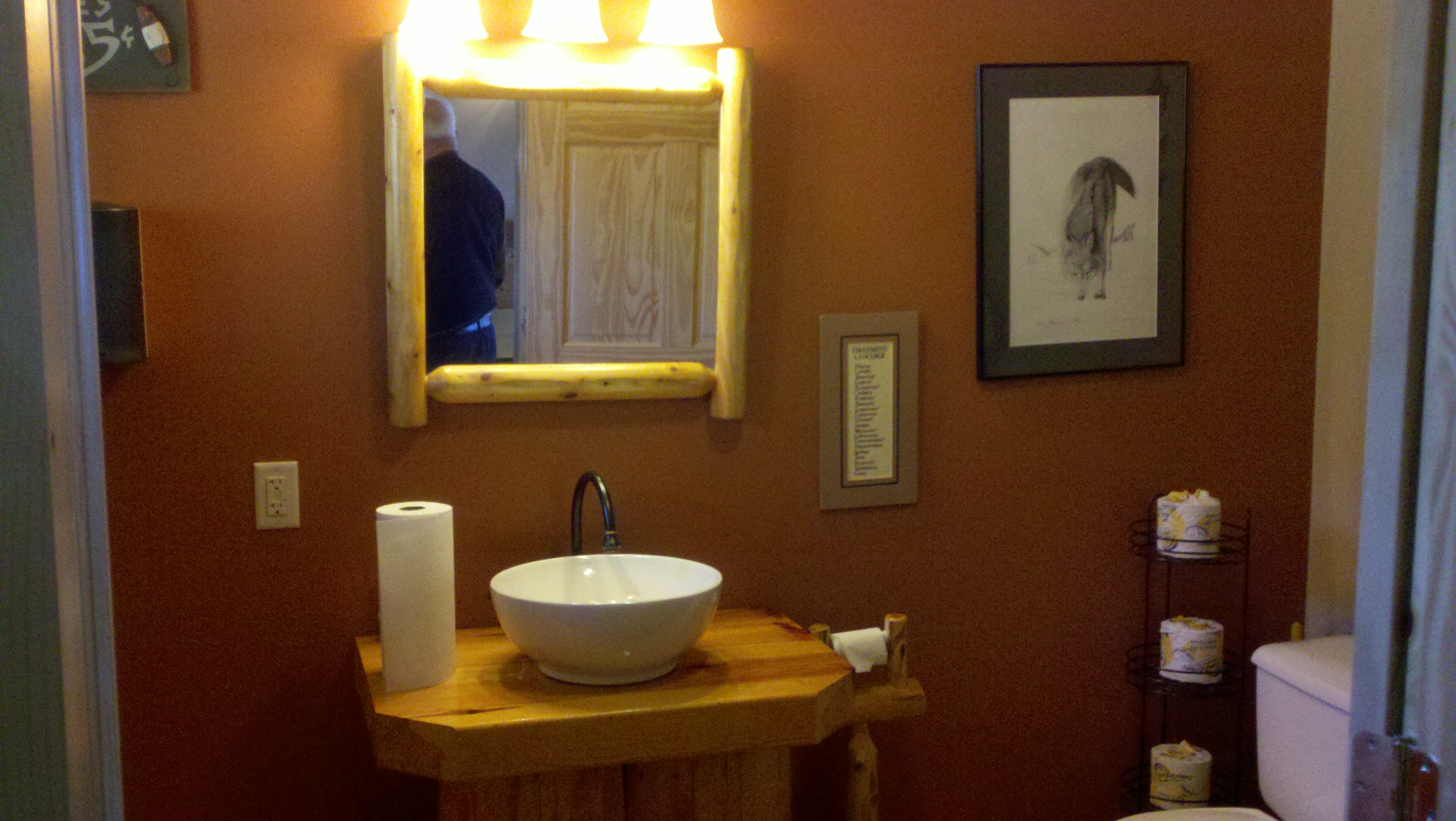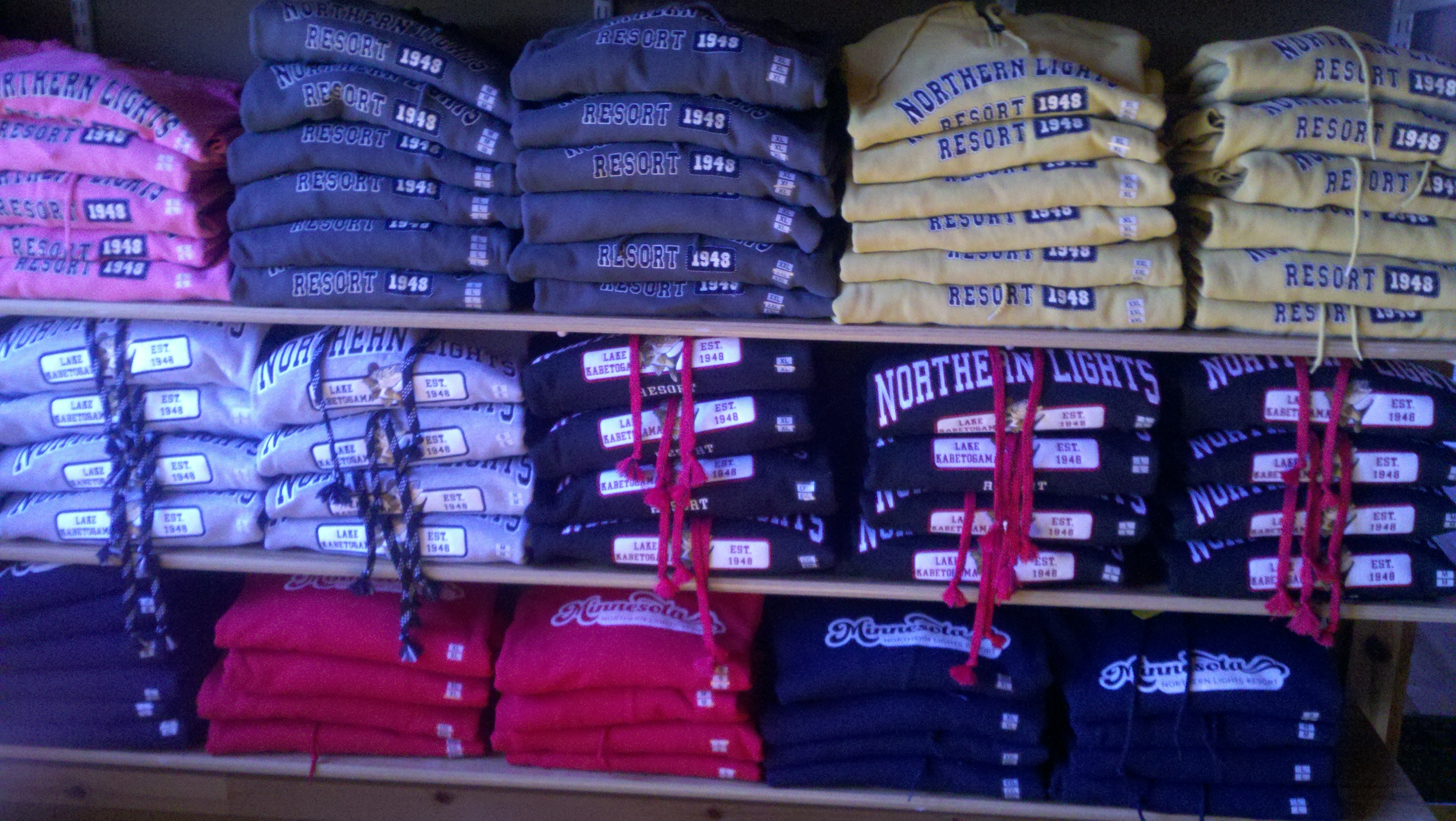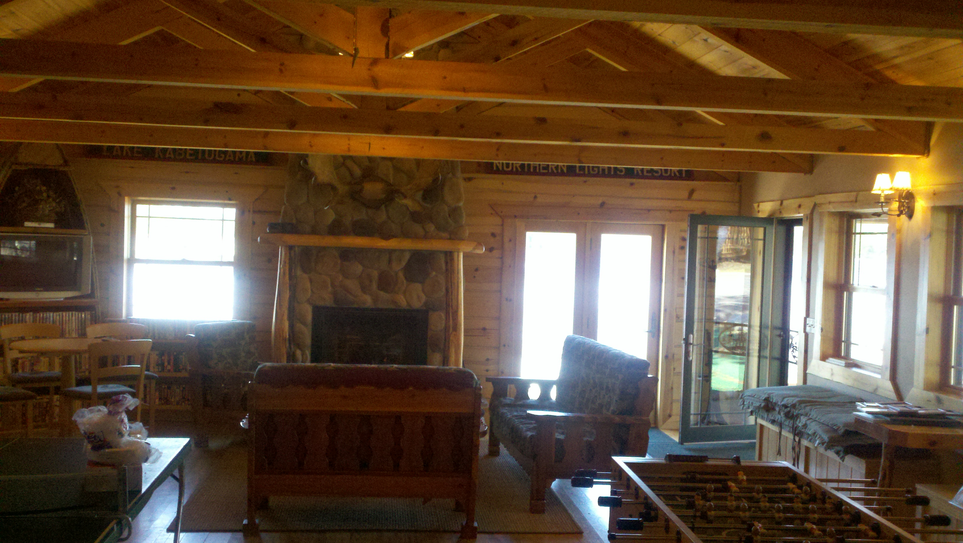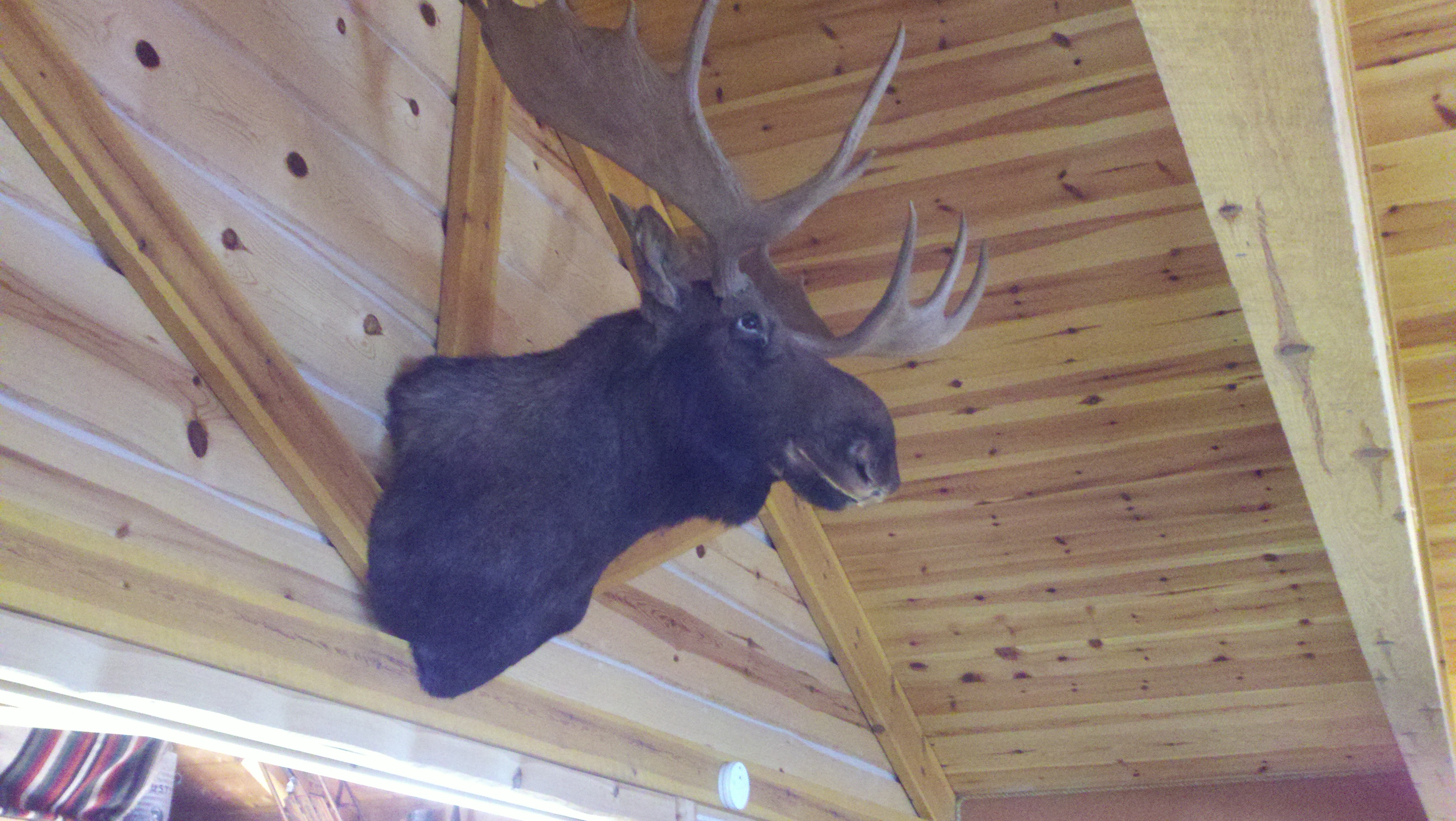 Welcome to The Lodge at Northern Lights Resort!I didn’t even know these were moose antlers, they are huge – I feel fairly sad for the poor moose who has to have those on his head!A sign inside the lodge.The wall of books and movies for the guests to enjoy. The TV is in the front of a boat (you’ll see the rear in a later picture). The view from there is just beautiful but the picture just shows glare!Mr. Moose with his antlers!Even the bathroom in the lodge is cool!This picture does not do the store counter justice. it is beautiful.This is the rear end of the boat. There are goggles, kites and other things for sale in it.Some of the really nice Northern Lights Resort sweatshirts and hoodies for saleMore collectibles on the store rafters!A partial view of the lodge from the store doorwayRight out the back door of the lodge is a huge deck that leads in all directions to the docks. Beautiful place to sit and eat, right next to the water