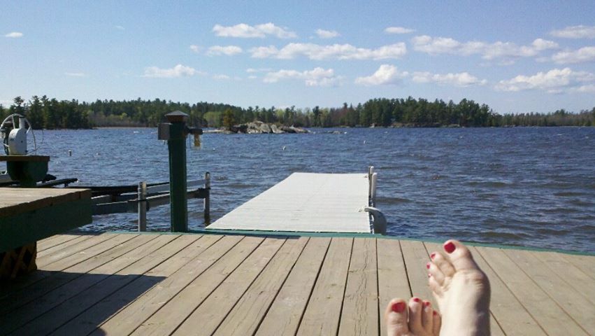 For my work I cleaned “The Loft” by myself for two days. See the two pictures above and the one below. It’s a cabin on the second floor over “Yellowstone” cabin. Tom and Pat, the owners, use to live there when they come to the resort, but have moved to another apartment at the resort. It’s a beautiful two bedroom cabin with a spectacular view of the lake. The guests are starting to go out fishing more, and from the loft you can see them skimming over the water. What a sight! Working by myself I cranked up the local Christian music station and cleaned away. One morning Annie and I were trained on using the reservation system and the cash register to charge guests for things they buy. This morning Debbie and I emptied out the van of all the cleaning supplies used during these past few weeks and got it all organized and back in the van for cleaning day tomorrow. Beth even stopped by on her day off and pitched in to help. We also put together sets of bed sheets in twin, full, queen and king by the dozens. We then put together storage bins with all the sheets, floor mats, and kitchen towels each of the five cabin that will be cleaned on Saturday will need. I finished off my work day by planting some flowers in containers on the docks.
