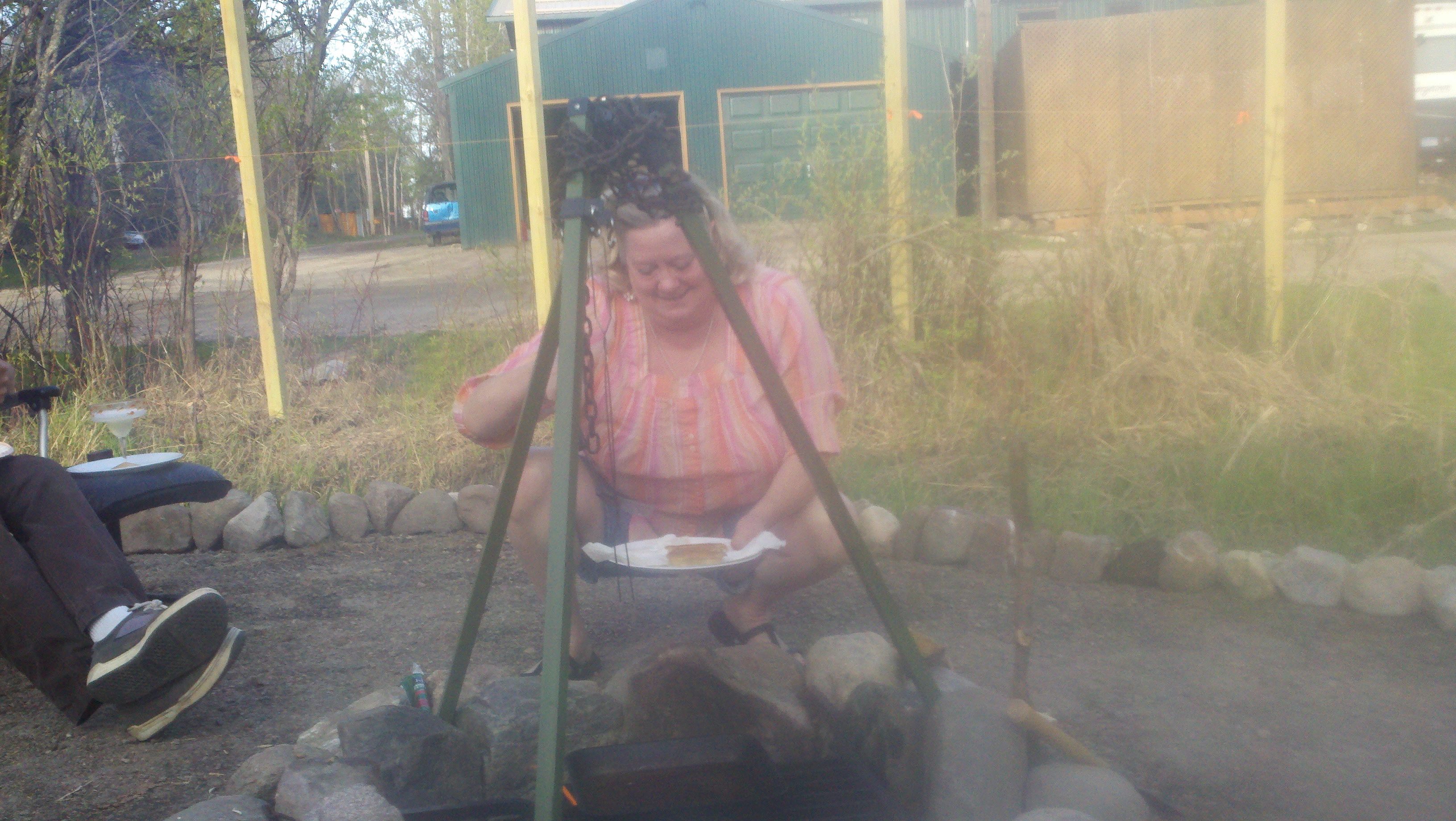 Sunday night our neighbors Annie and Russ invited us over for a wonderful dinner of giant fried burritos. I’ve never eaten a burrito but I believe these are very different than the normal variety you get in a restaurant. After we loaded the wrap with whatever we wanted we folded them over on two sides and then made a little packet ouf of them with the remaining two sides. Russ had a fire going with a rectangular heavy pan heating some canola oil. He placed them in there one at a time and cooked them on both sides until they were beautifully brown, crunchy on the outside and soft and delicious on the inside. Annie then took each one and made what she calls a diaper out of a paper towel so we could hold them while we eat them. We each had two of these mouth watering creations which totally filled us up. This cooking outside has so many facets to it and we’re just starting to scratch the surface. I love having them for neighbors, they’ve taught us all sorts of things. They are retired school teachers who have been camping for years and not too long ago started doing it full time. They are really fun to hang out with and I think they’ve even figured out that we’re crazy and they still hang out with us!