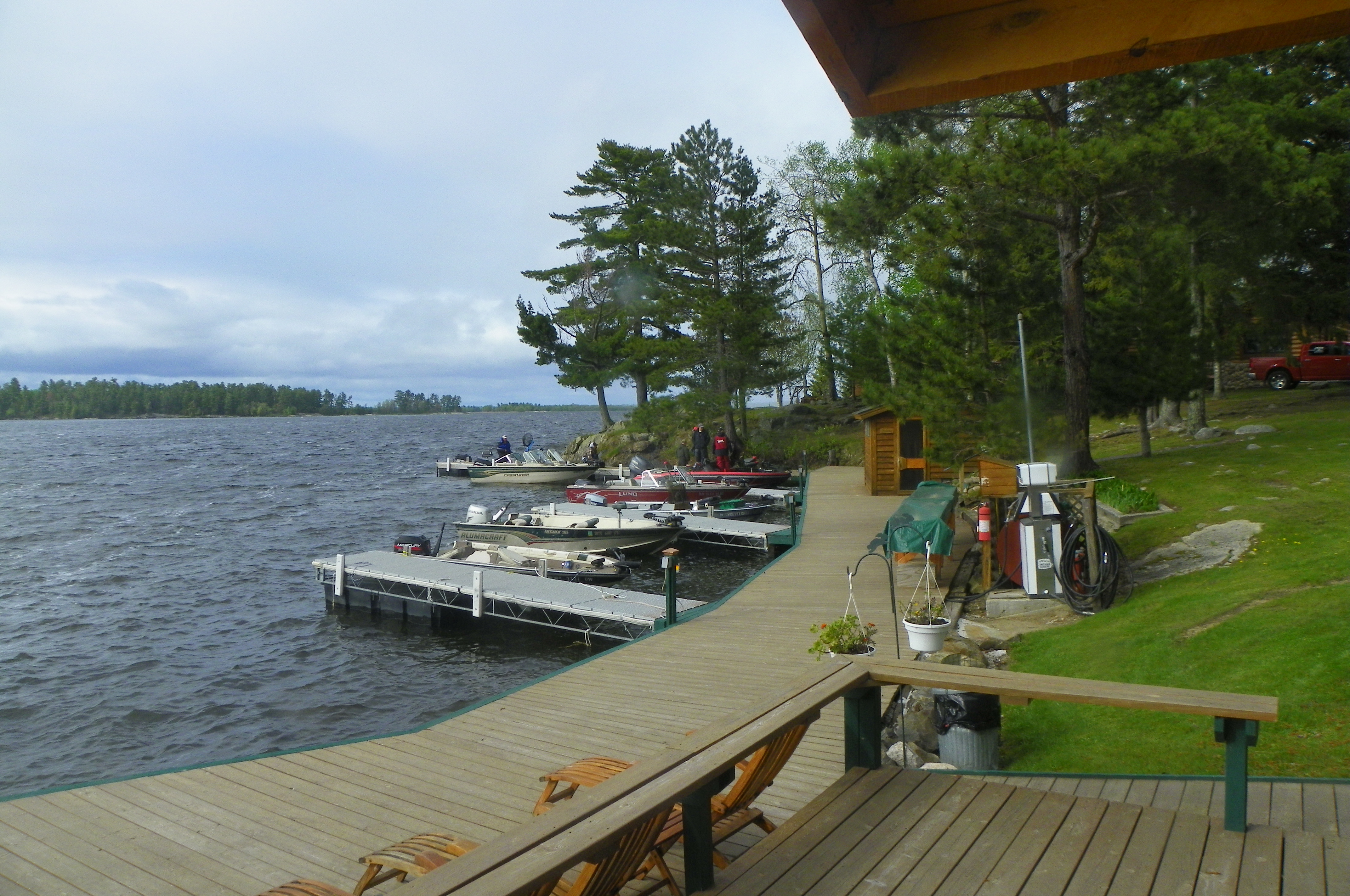 Two of the cabins can hold several families so there were multiple boats for these cabins. Our guys working Saturday evenings get the extreme privilege of launching every single one of these boats. Our dock slips are all filled and some of the guys even ventured out to fish yesterday evening in the high winds and rain. These are serious fishermen! Roy works on Friday evenings which is when most of them pull their boats out of the water and he’ll have the privilege of doing that!