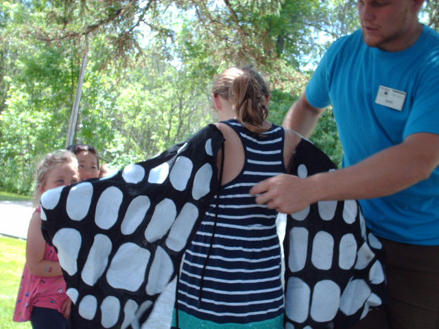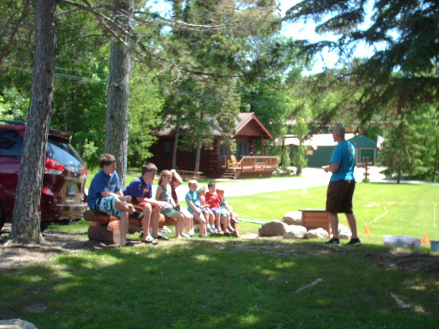 An intern with the Department of Natural Resources (DNR) came to do a presentation today at Northern Lights Resort. The audience was all the little children at the resort this weekand I was there to help. We had ten children ages 4 – 14 and I think they all enjoyed it and all learned from it, mostly me! We learned the life cycle of a fish and they played a game going up stream, in the lake and down stream all on the big meadow near the lodge. Then they each received a big stuffed fish, all different. They learned the differences between fish and the name of the different parts of a fish, and why each fish is designed the way it is (for protection, etc.) Then they came inside and made decorative fishing lure with craft things Nate the intern brought with him. After that the children all went outside with Nate and fished for a while off the dock. Talk about active little ones but it was fun and I learned a lot. Some of the kids know more about fishing than I do but I think each of them learned something new!
