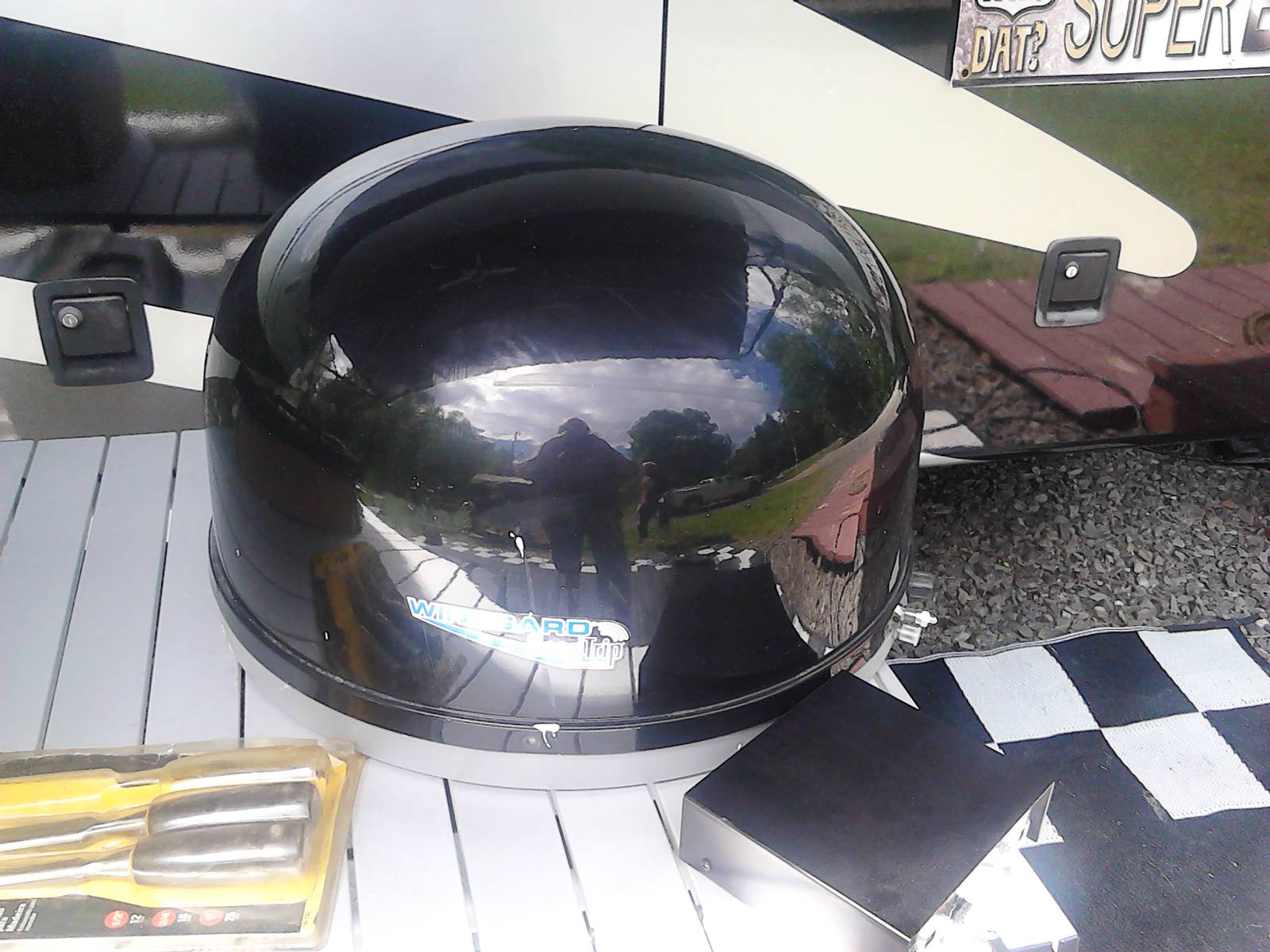 Roy did some research and found the Winegard SK-1000 Traveler. It’s now our new satellite dish and it tracks all three satellites at the same time. It is more like a home satellite dish you’d have on a house. He found it on eBay at a good price and bought it. Since he installed it we have had several rainy days and we’ve not lost reception once!!!!!!!! It’s subject to lose satellite during severe weather just like you would at home, it won’t be affected by the light rains we typically have.