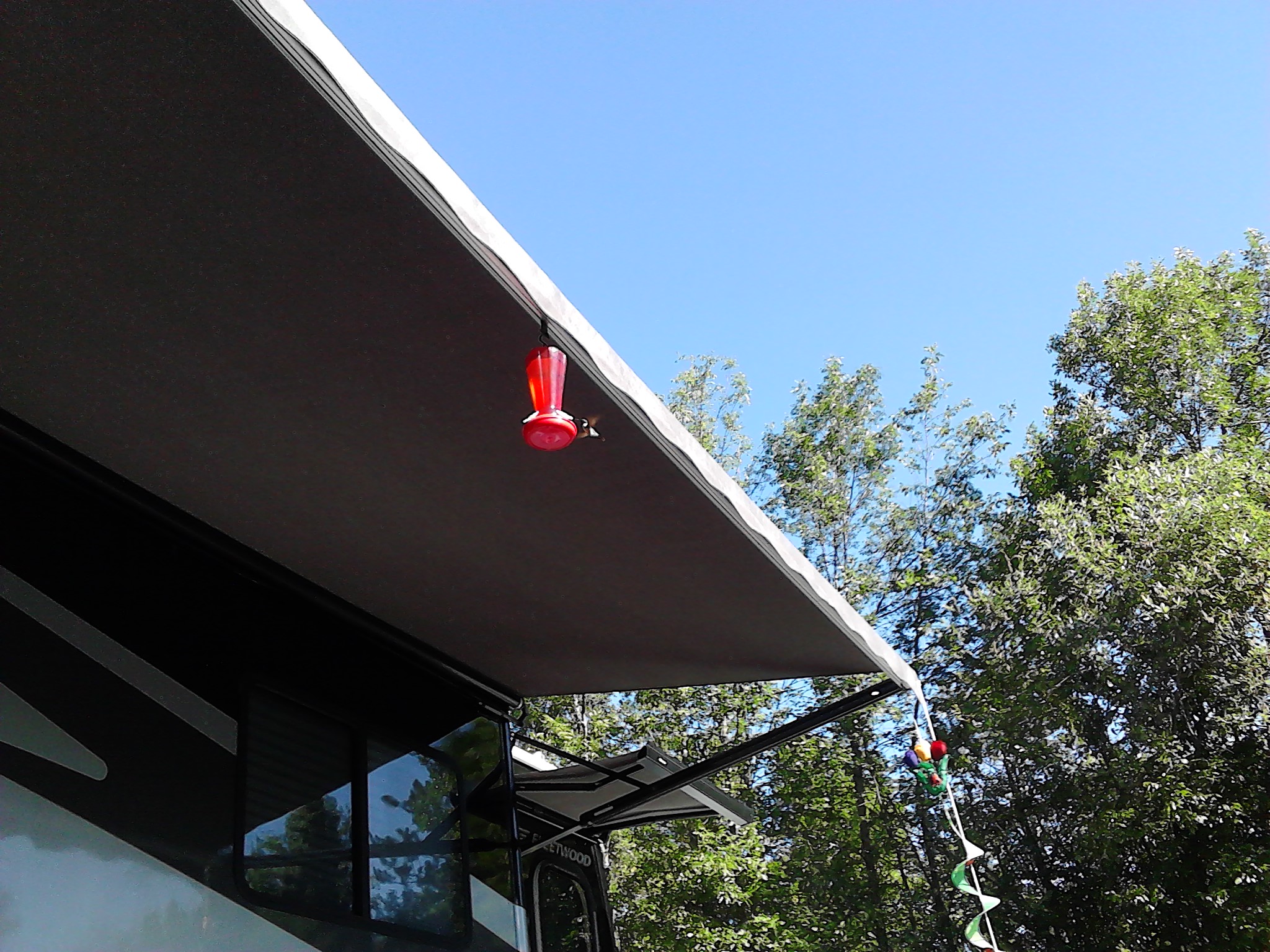 We hung a hummingbird feeder on the awning outside and have been enjoying seeing the hummingbirds come to feed. They also feed off of the hanging plants and make such a beautiful humming sound when they fly. We’ve learned that they are very territorial as they fight off other hummingbirds who happen upon the feeder at the same time they do. I tell them not to fight as they are probably brother and sister and there is plenty for everyone but they keep fighting.