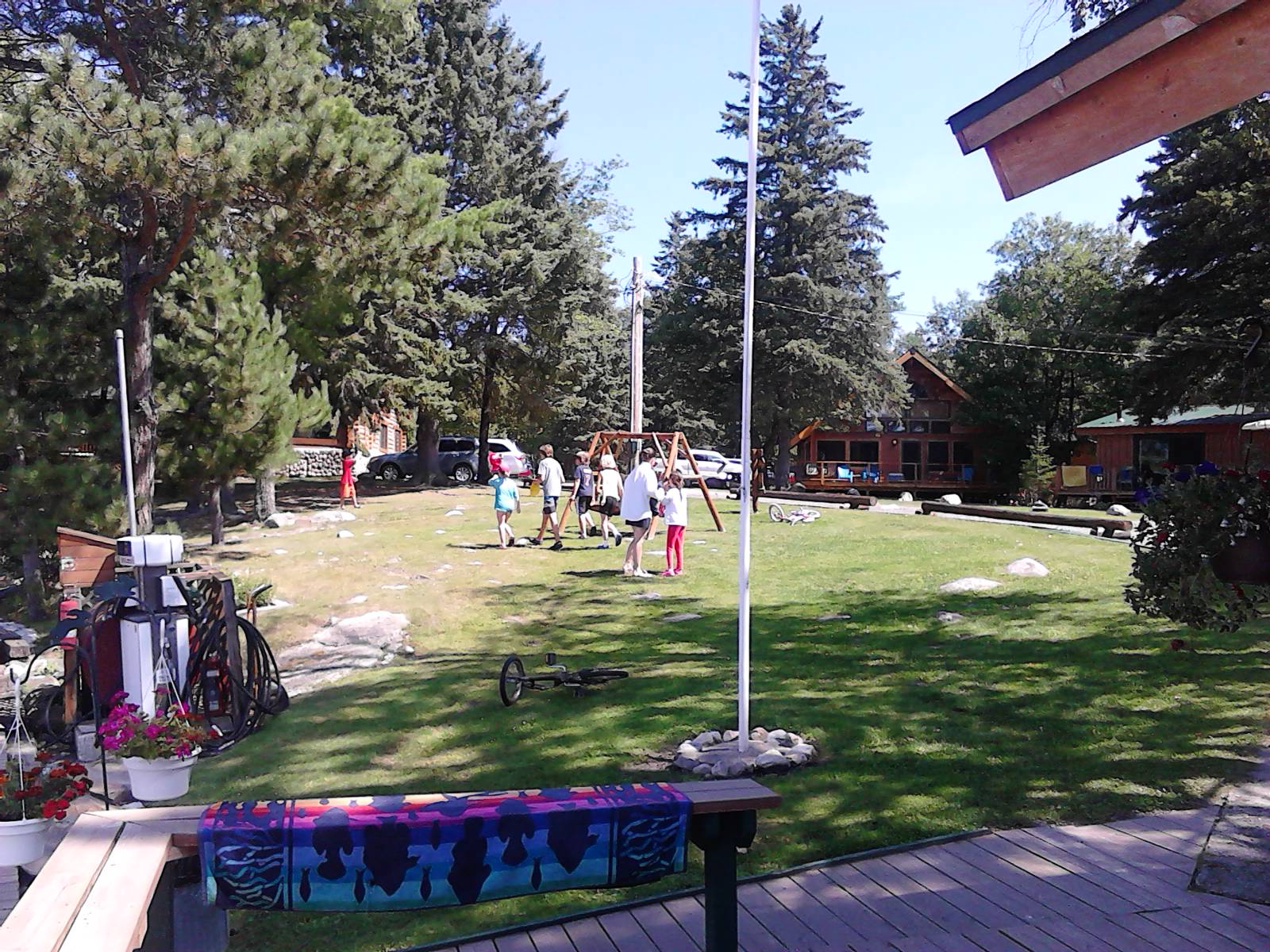 My kid’s quest group of about 12 children (two groups of six children) were out and about finding their scavenger hunt items while Roy was staining making him being up on the ladder a tad bit risky.  I tried to stand near him to keep the children away from the ladder and took some pictures of their adventures.  It’s very hard for them to just walk from place to place which you can see in the pictures because they all try fast walking or skipping since I tell them they can’t run.  Next Monday will be our last Scavenger Hunt for the season and I have to say I really loved playing with the children each week and getting to know them.  However that does mean it’s one step closer to us leaving Minnesota and getting to see some more of this beautiful country that God has given us!