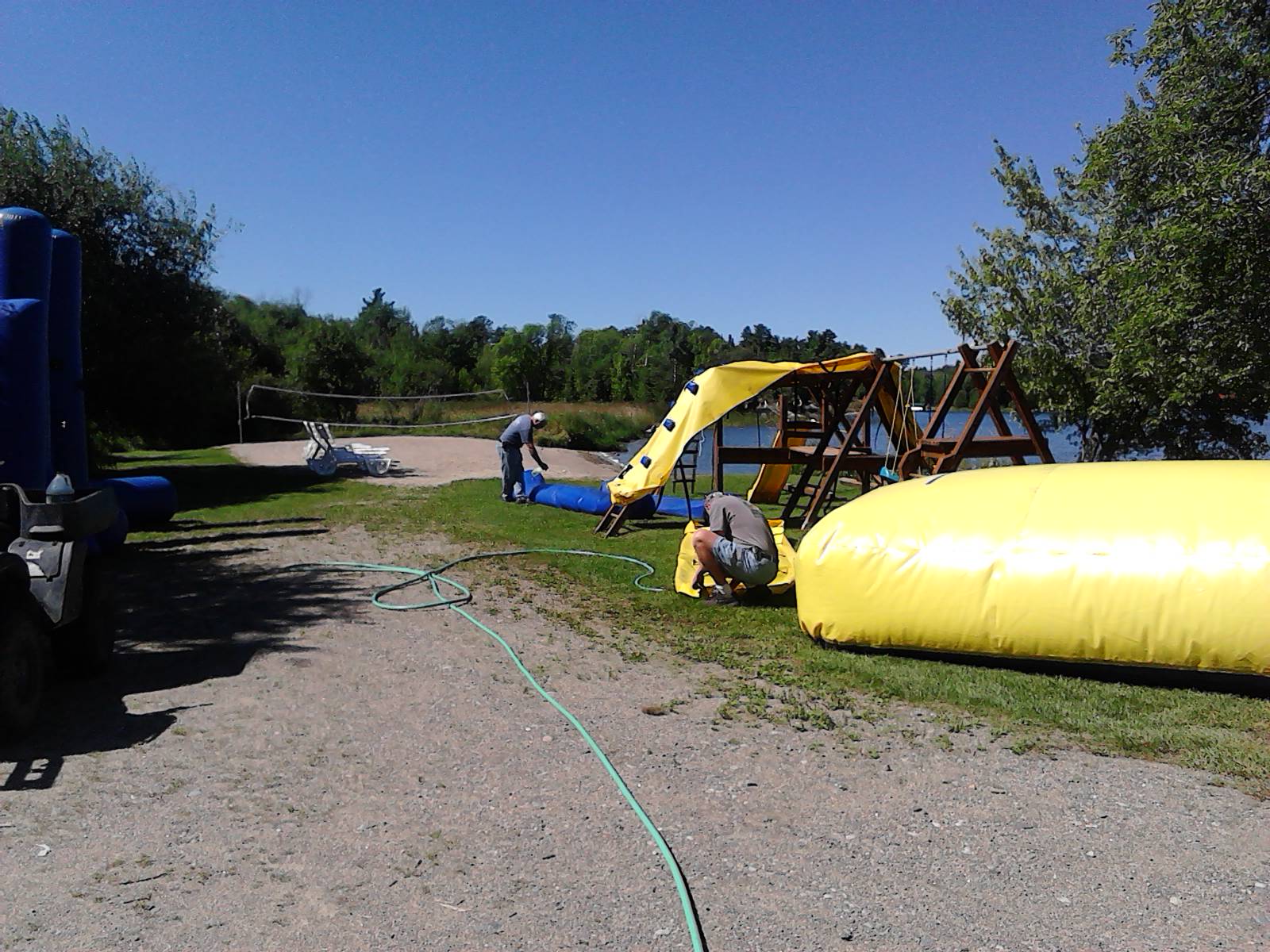 There are many signs around here that the resort close down has begun. The big horse riding water toys have been removed from the water. The slushie machine is emptied and turned off. No more dozens and dozens of little children running in and out all day drinking the slushies before it was turned off. The decks in empty cabins have been pressure washed and are ready for stain. The RAVE is coming down as soon as the weather calms down(it stormed and hailed Saturday and Sunday it was really cold and high winds). I’ve really enjoyed watching children and adults play on those things, especially the screams of excitement when they are launched off the water tower high into the air then splashing in the water. I never did venture out there this summer after I learned there are leaches in the water and they would probably get all over me. I decided to just enjoy watching everyone else. By the time I finished writing this the RAVE is out of the water being packed up for the winter which will arrive here in Minnesota in just a few days.