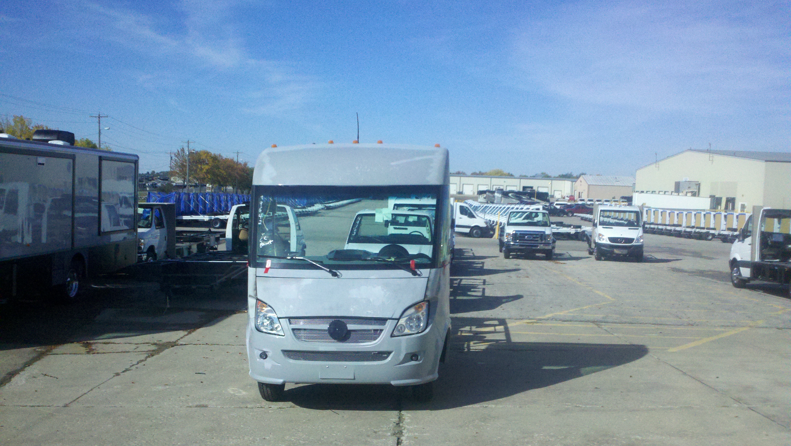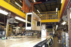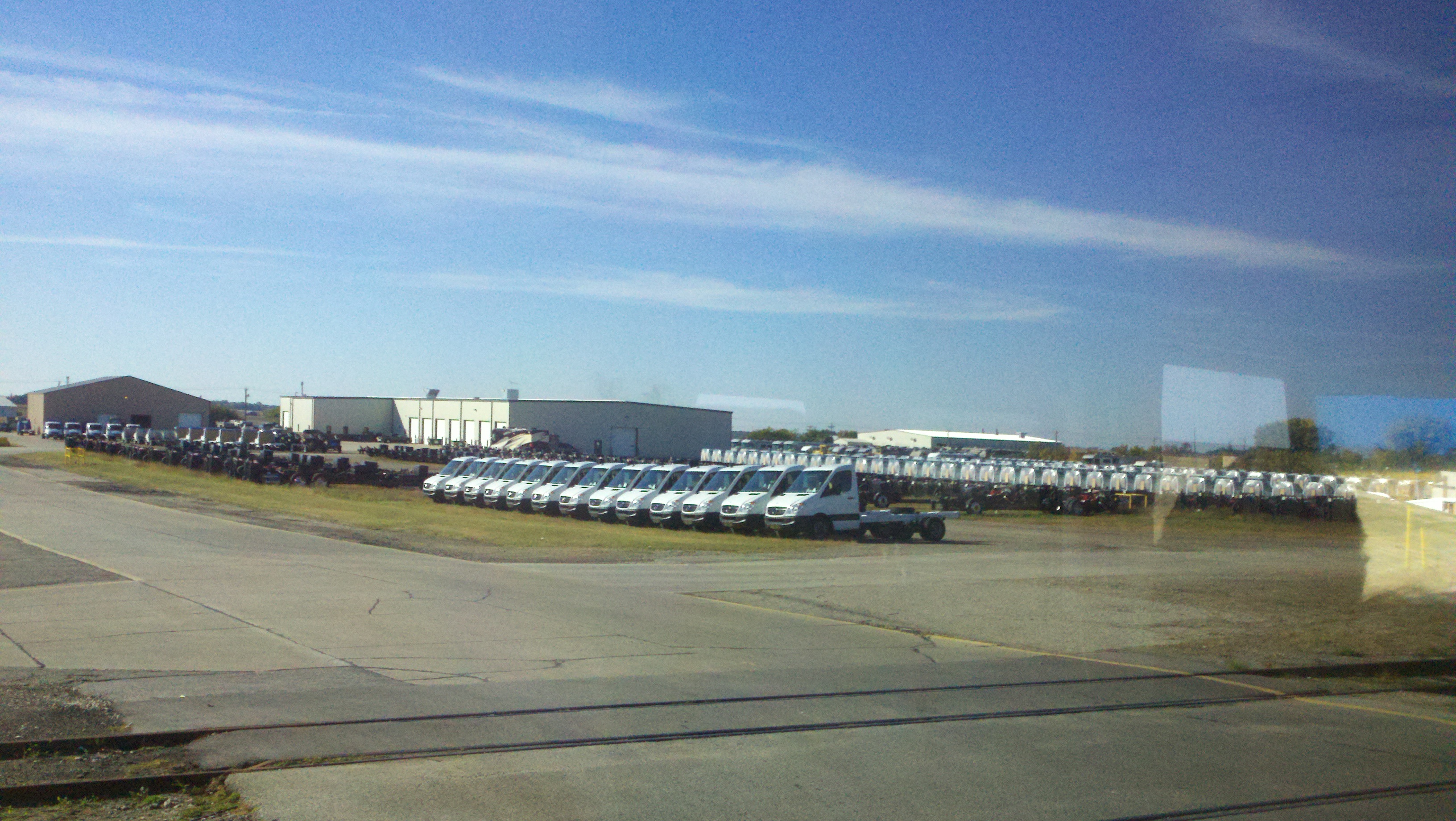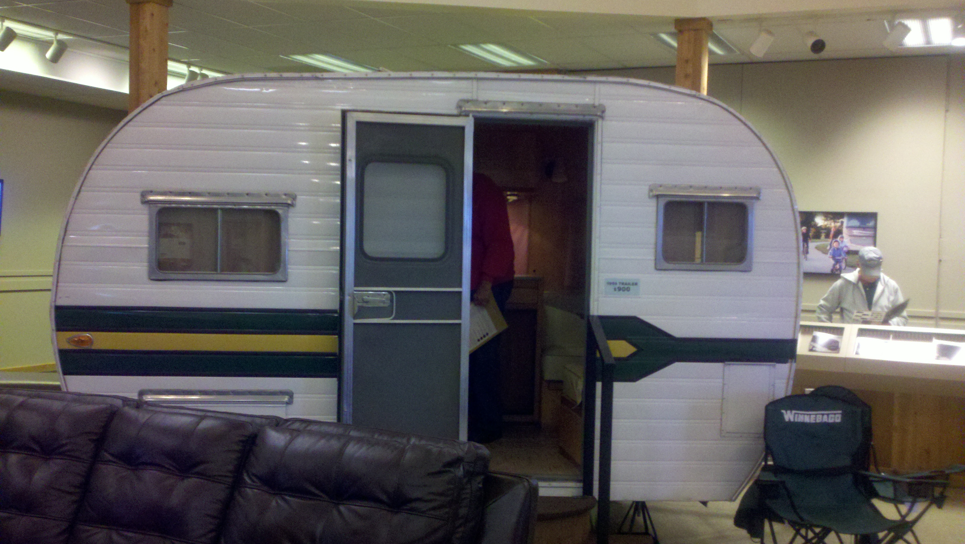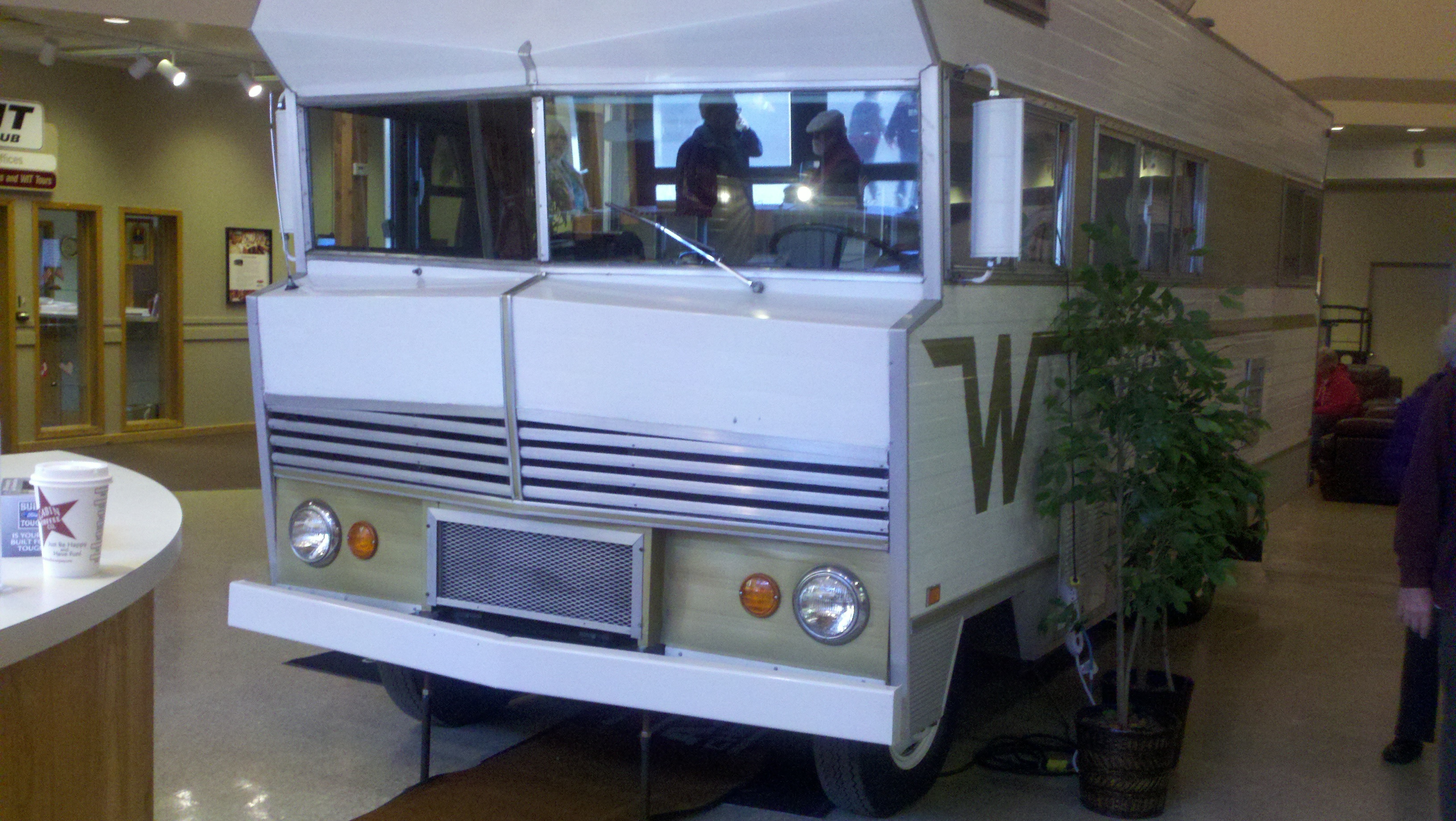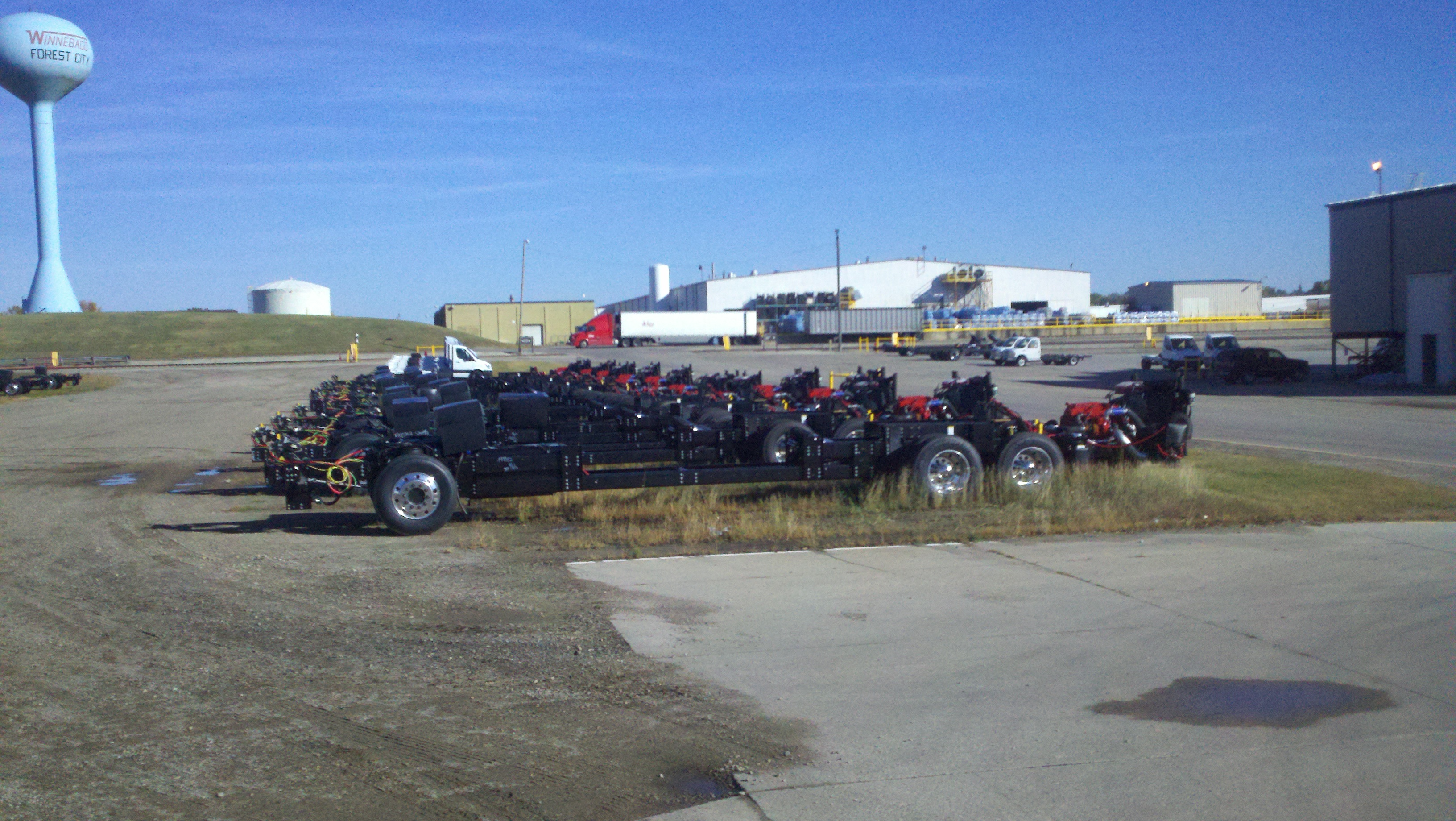 This morning, Monday, we toured the Winnebago factory. They do not allow pictures to be taken inside the plant which is a real shame because it was fascinating to see all the aspects of assembling their beautiful RVs. I did find some pictures on the web and am posting them below. I took several outside pictures if I thought it was interesting. The first pictures below are of old RVs that are on display inside the Visitor’s Center. Before the tour we watched a 15 minute video telling about everything we were going to see which helped us understand it when we went into the plants to see it.