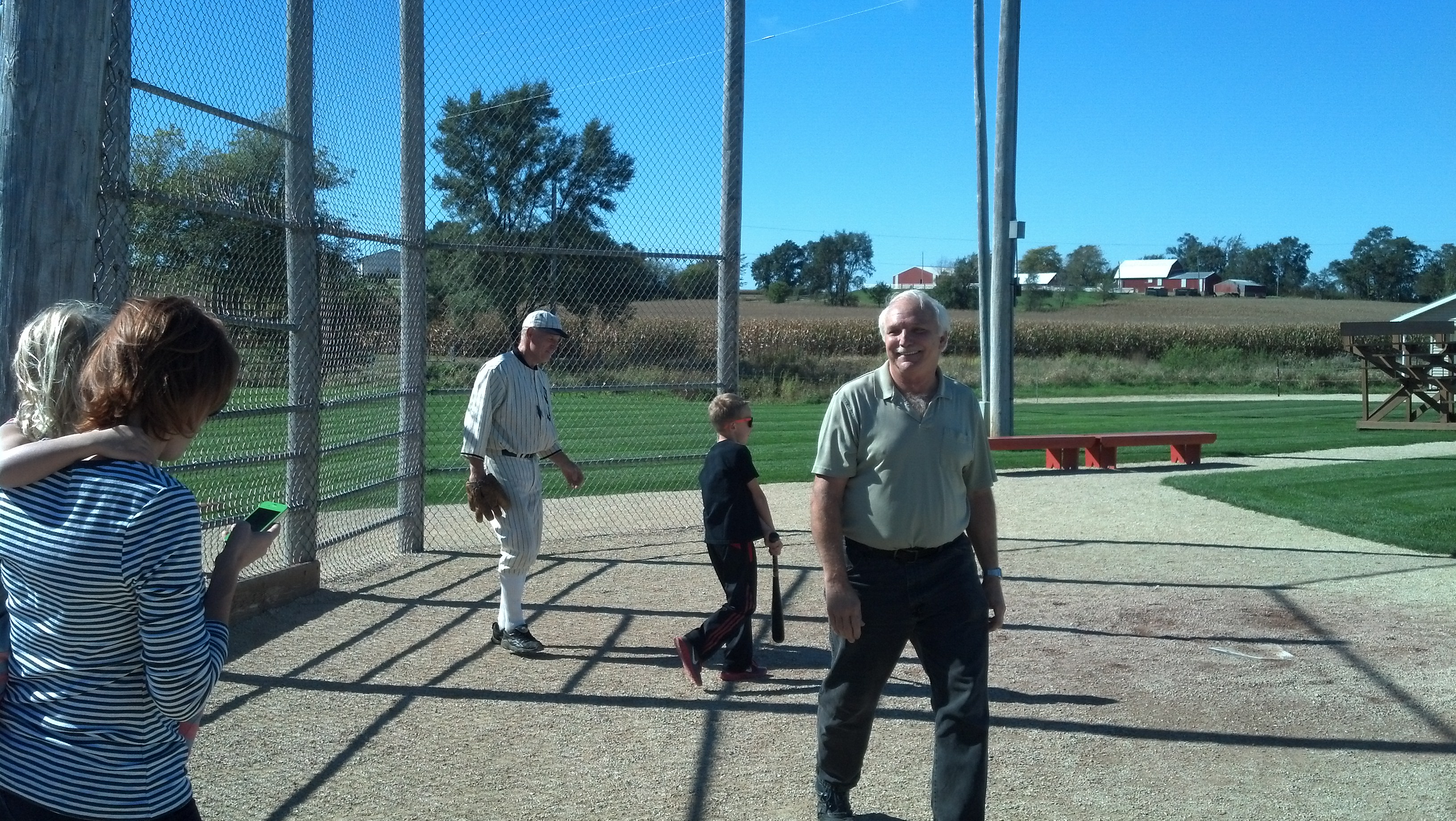 Both of our sons played baseball and softball growing up, we had a baseball field in our side yard on Hinson Road, and we loved the movie Field of Dreams. Betcha can’t guess where we went today!!!! That’s right, to the site of the Field of Dreams movie in Dyersville, Iowa. Roy played some ball with others including an older man dressed in an old timey baseball uniform like they wore in the movie. We went into the cornfields and out ad in and out. I’m sure we looked like silly children and maybe we were today! It’s all still exactly like it was in the movie with the exception of a souvenir stand they added. The family who has owned the property for years just sold it and we understand the new owners plan to add more ball fields so I’m glad we got to see it in its original form. The weather was perfect and there was a nice breeze. Anyone who loves baseball or the movie should try to make it here to see it. The admission is free!