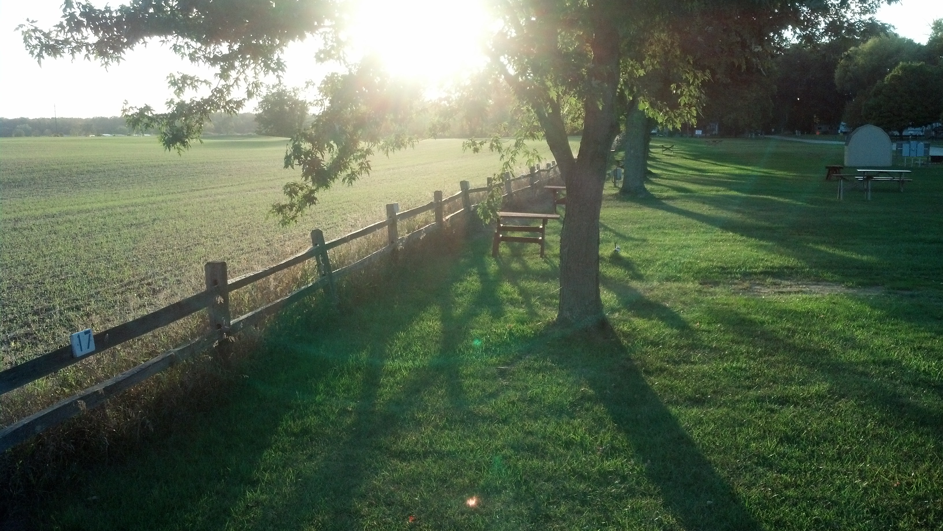 When we left South Bend we headed for Howe, Indiana where we plan to visit some of the surrounding Amish country. The resort is mostly permanent RV residents but there is a strip of land for folks like us that want to stay just a few days. We are parked next to a long wooden fence. On the other side of the wooden fence is many acres of farmland. It’s so pretty here and the weather is beautiful. We may try to stay longer here if possible. We enjoyed drinking our coffee outside this morning which was a lovely treat!