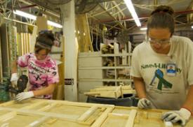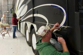 This tour was far superior to the Winnebago tour we took last week. The tour guide, Tom, had been with Fleetwood for over 20 years and knew just everything. We all wore safety glasses and headphones so we could hear Tom no matter what the sound level was in the factory. He took us down on the factory floor for the whole tour. We got to touch and see up close every aspect of the build. We learned that it generally takes 4 weeks for a class A RV like ours to go from start to finish. They are not making any more the Excursion at the length ours is. They’ve reduced it to around 33 feet.