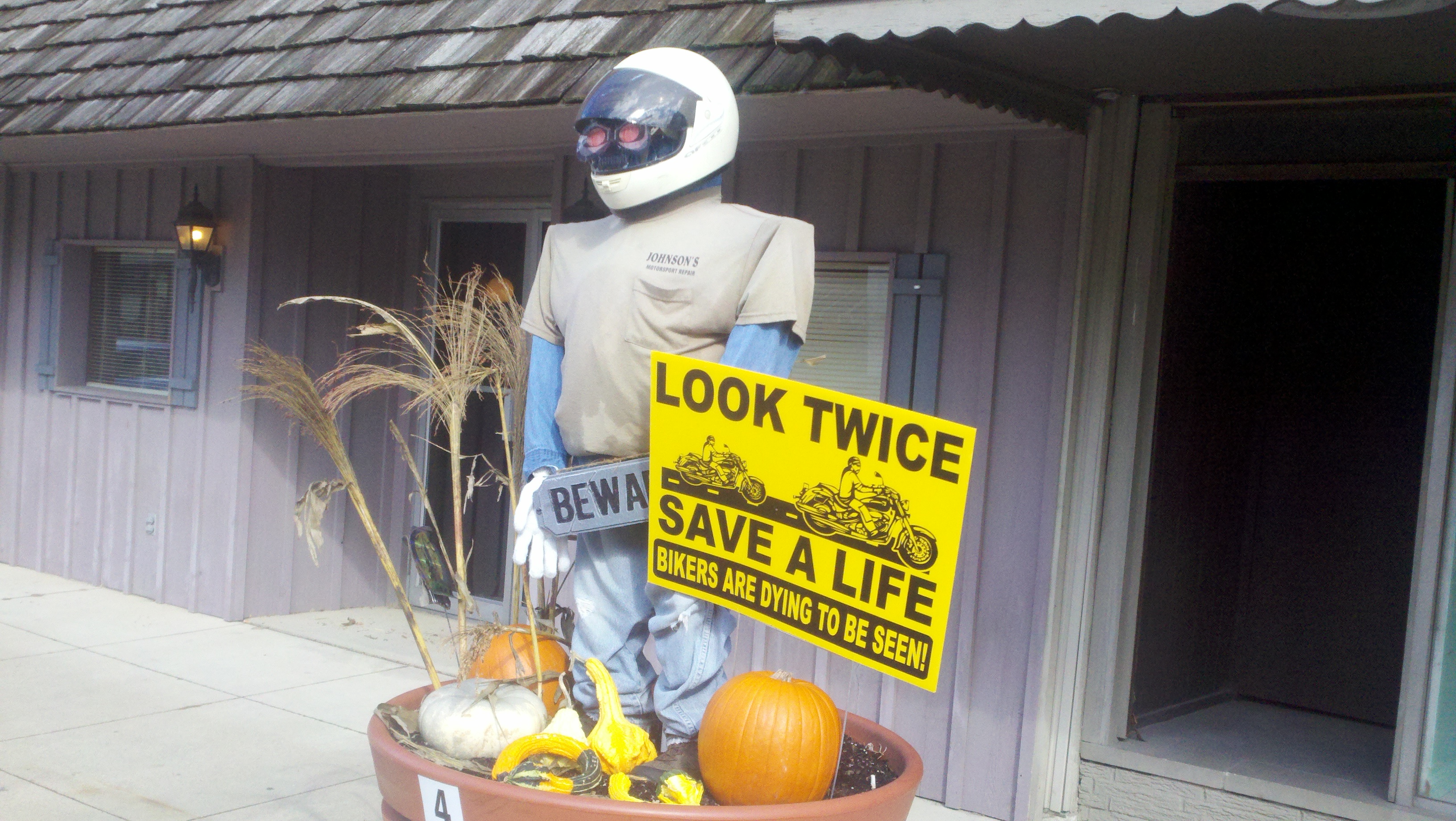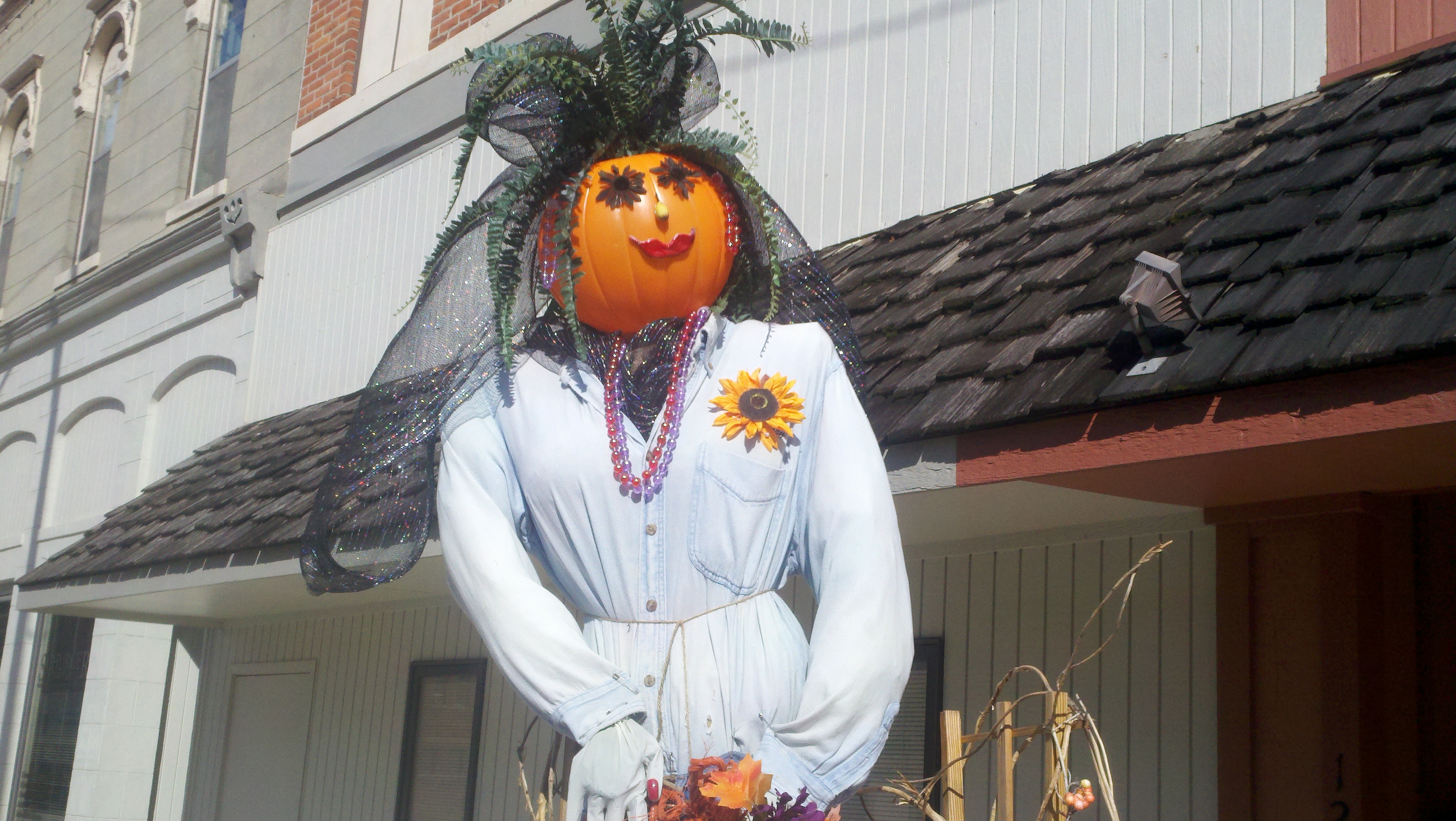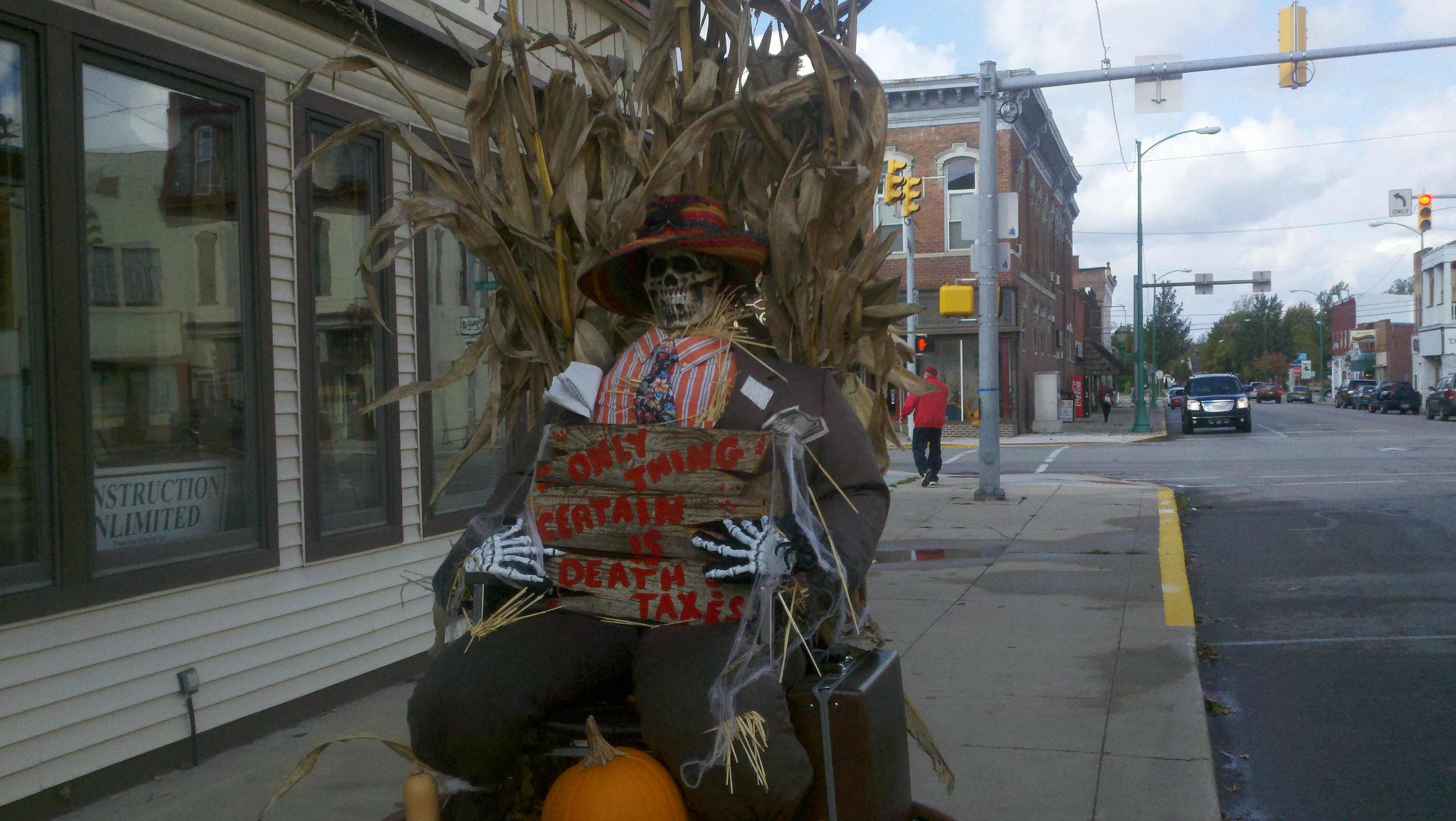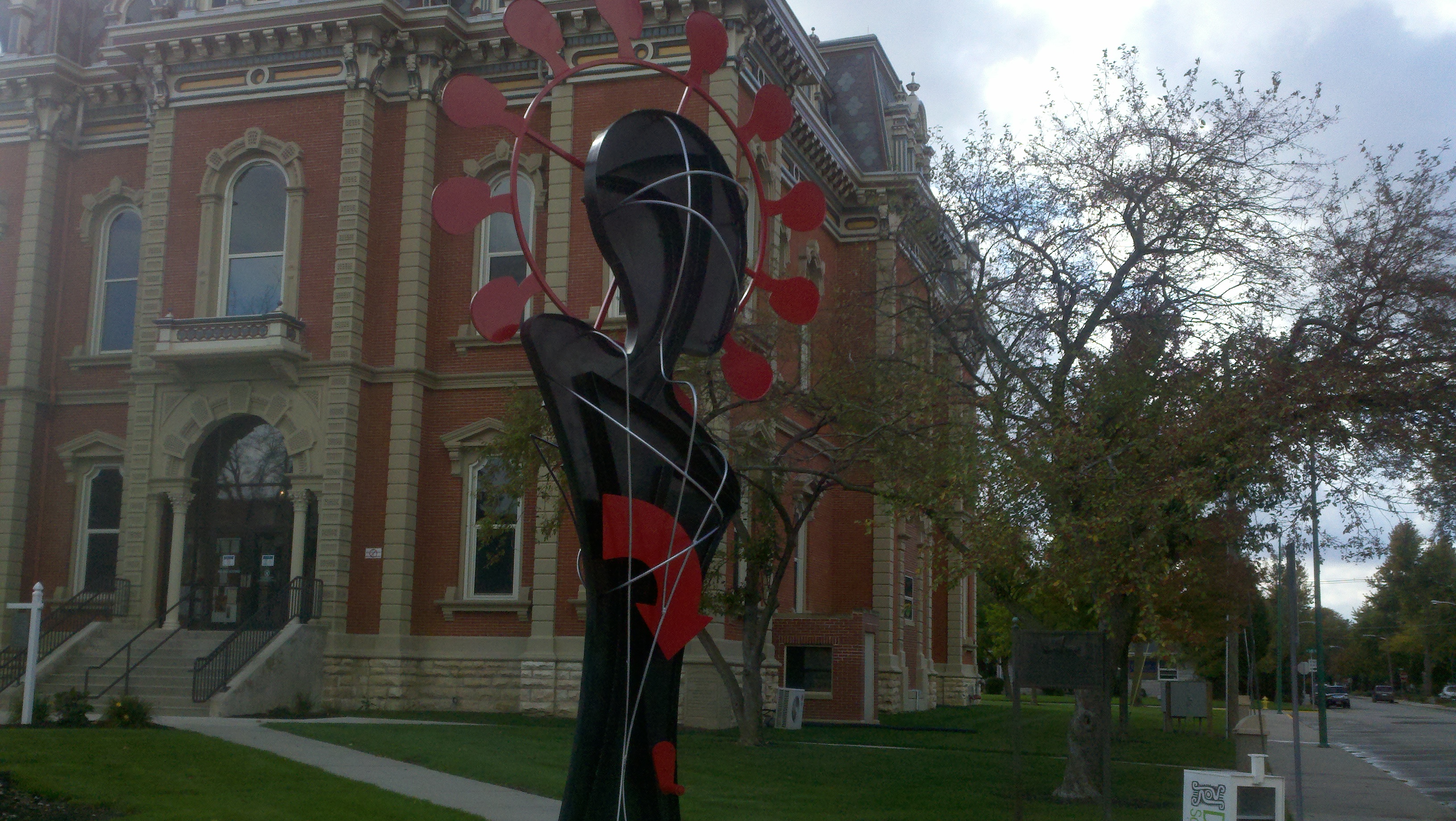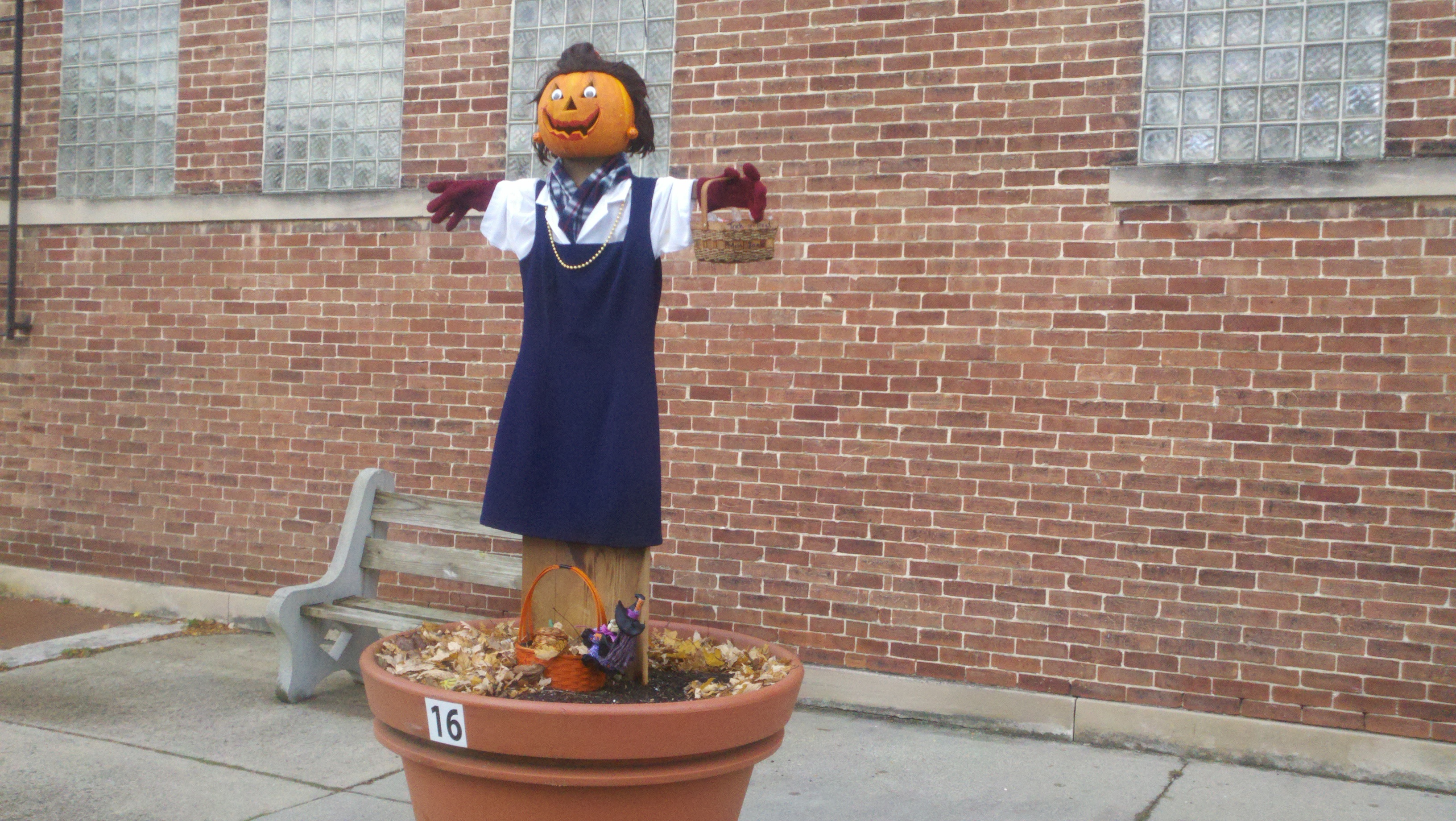 The weather has been wet, windy and cold this week which made us not want to get out too much. Saturday afternoon the sun came out and it wasn’t raining but was still windy. We decided we needed to get out and enjoy the day so we went to see some of downtown Decatur. What a nice surprise it was to find a really neat town. There are several sculptures at various spots downtown and due to the Fall season there are many big planter pots decorated by a company, group or organization about 3-4 per block. I found out that the city is decorated getting ready for the Callithumpian parade later this month. The folks here vote on their favorite decorated pot and the top three win a prize during the Callithumpian festival. I have no idea what Callithumpian means but they have a sign hung over the main street announcing it!