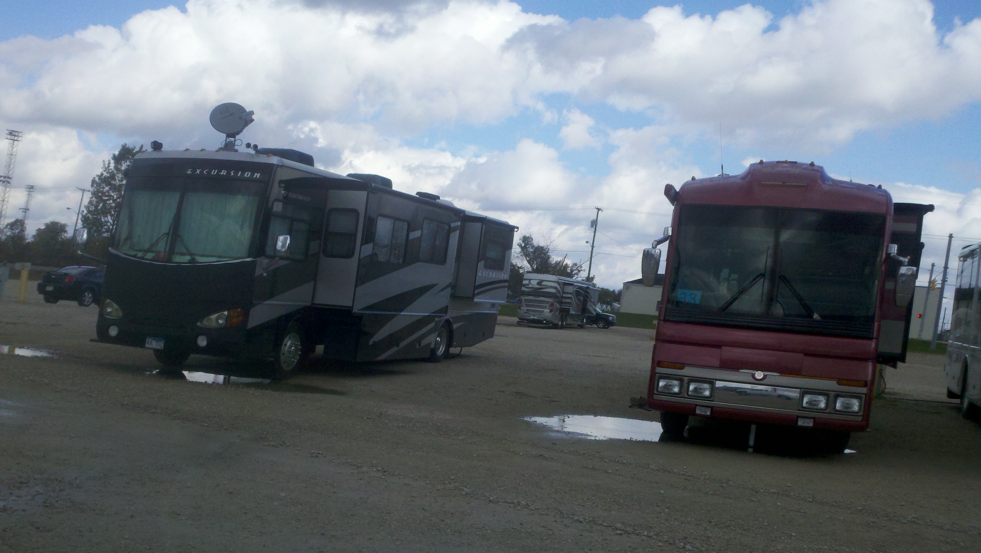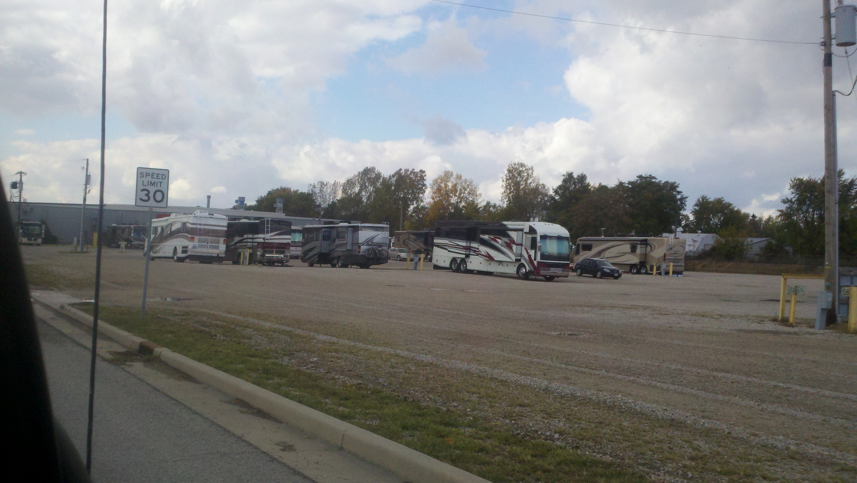 Last Monday we arrived at the Fleetwood Manufacturing Plant and were given the RV site #34 to park in. On Tuesday we took the fantabulous tour of the plant. On Wednesday they called us in for our turn to be evaluated. We did not have a scheduled appointment so we were considered a drop-in which meant our issues would be addressed after the RVs with appointments were serviced. Once they determined what needed to be done, they had to get approval from our extended warranty people and on Friday morning we received a call around 6 am that they were going to come get Dora and us to have the approved work done. They successfully replaced the part for the air suspension however when they replaced the O-rings on the dash a/c it was still leaking so they replaced it again and it was still leaking. They determined it is a hose that needs to be replaced and of course they don’t have one. A company in Fort Wayne, Indiana can make one but they don’t have the end caps. They are pretty sure they can get those in on Monday. They also need to replace a a/c dryer which had to be ordered and should be in Monday also. Our extended warranty is paying for most of this, for which we are very happy!