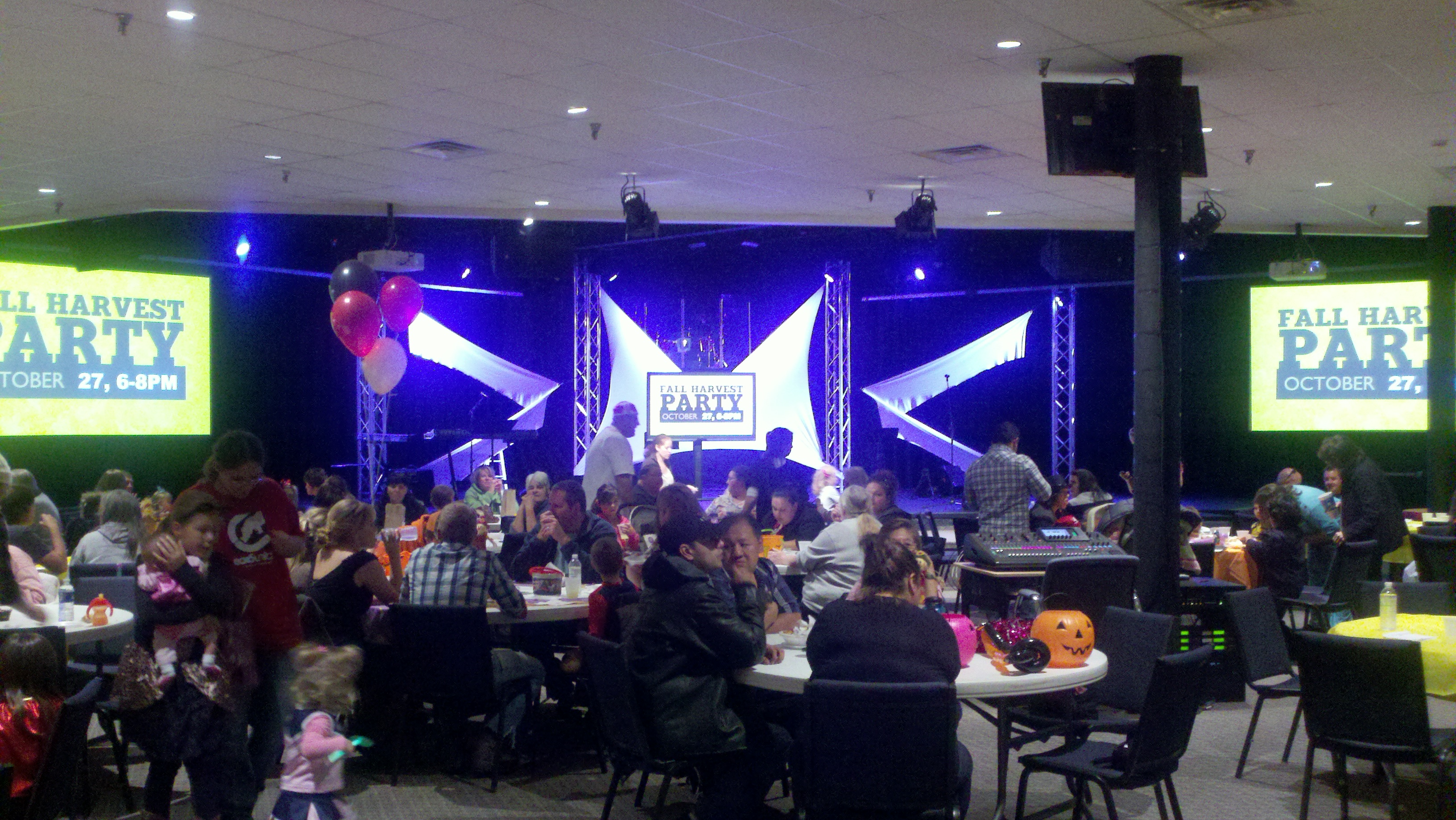 We came back to the church Sunday evening for their Fall Harvest Party. The church is huge so they were able to hold the entire party inside the building. It is a wonderful outreach to the community and the parking lot was packed when we got there. Long tables of delicious foods were served, lots of games and photo op locations. We loved seeing the little children in their precious costumes and we enjoyed the food we ate!