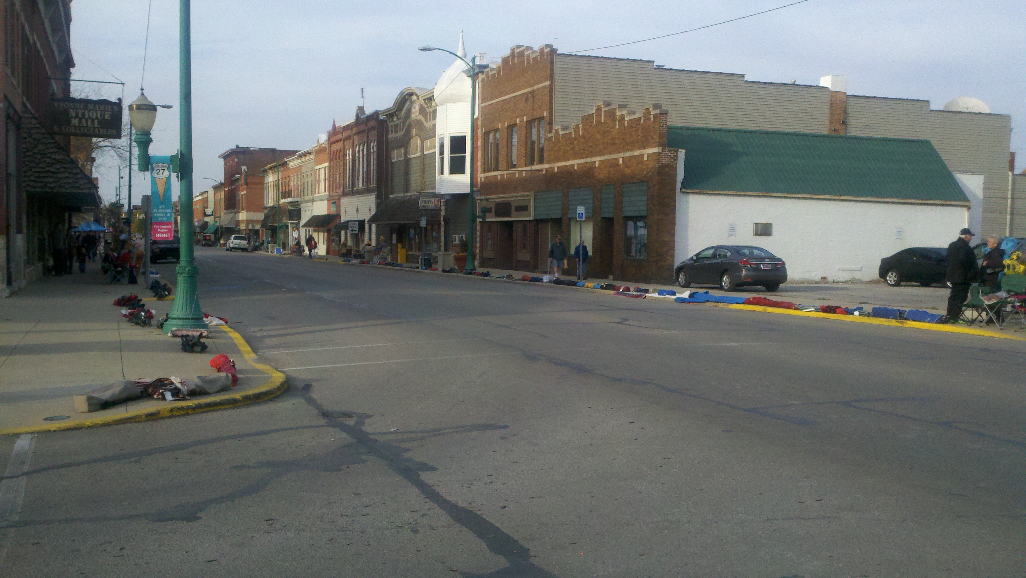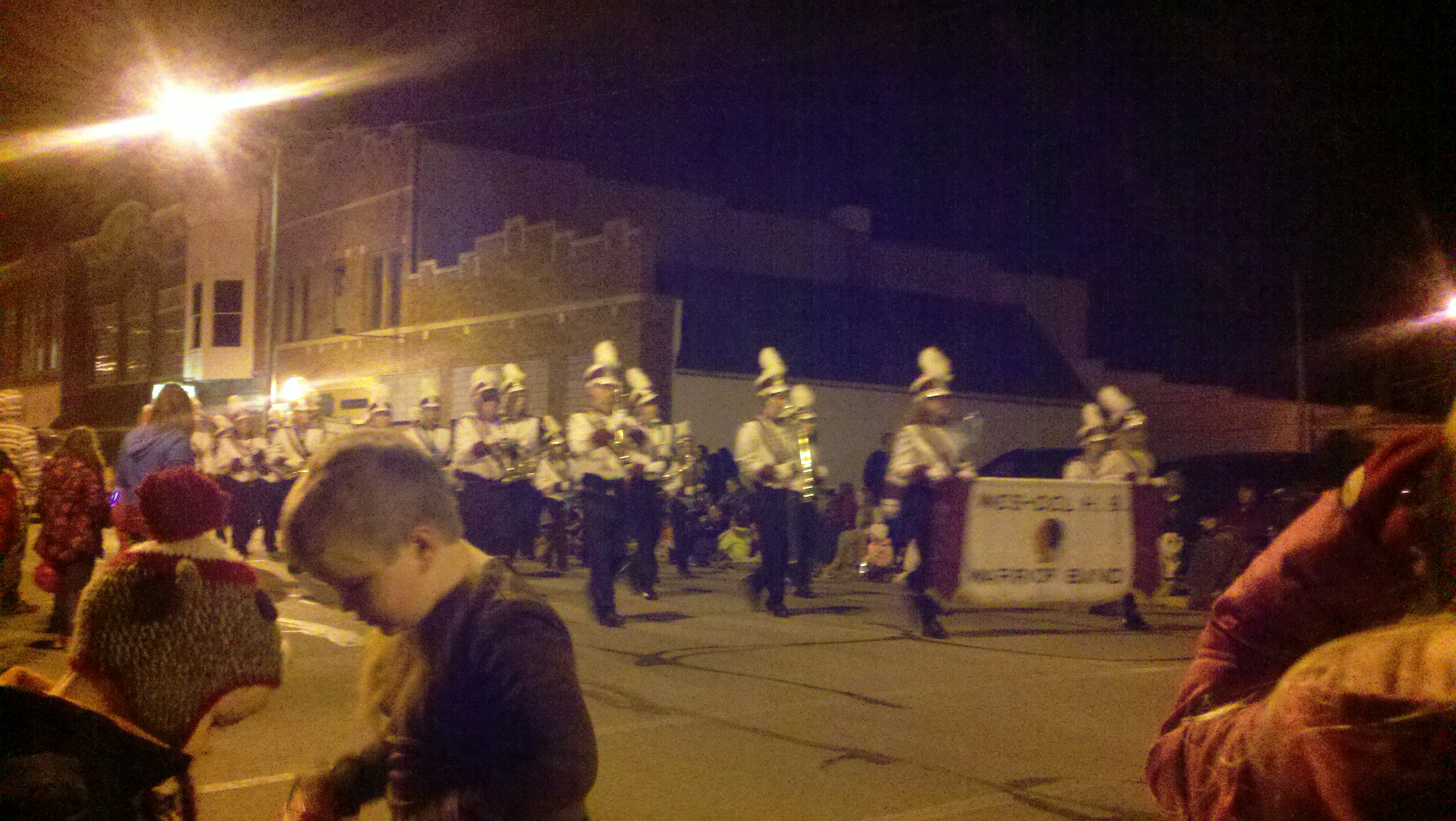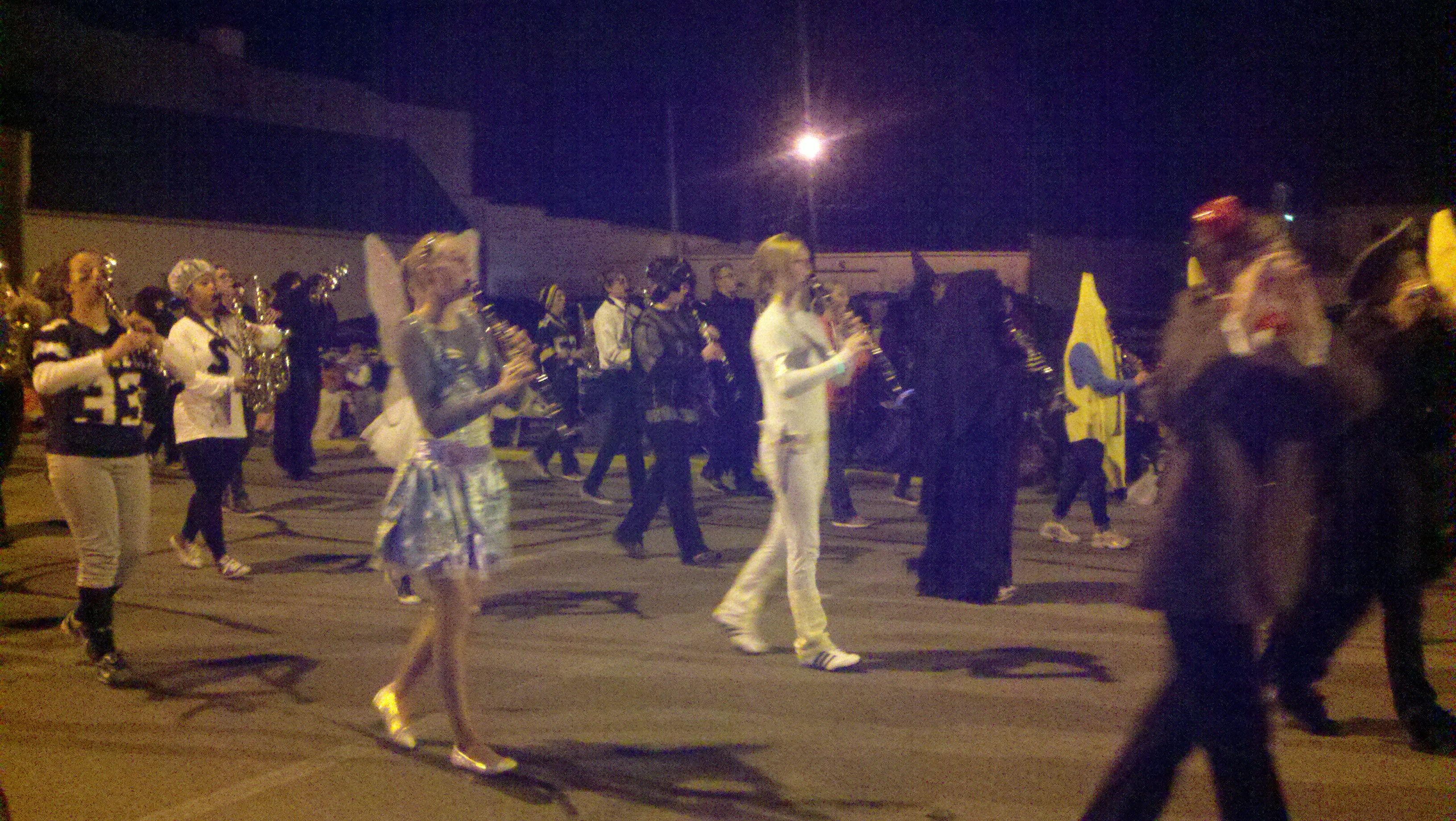 Monday night the town of Decatur held its Callithumpian Parade which we’ve learned just means Noisy Parade. It’s really a Halloween parade with lots of organizations having tents and booths set up selling food for fundraisers. When we arrived the first things we noticed was that all along the parade route through downtown Decatur there were folding chairs along every inch of the parade route on the sidewalks. They were not set up chairs but chairs in their bags just marking their space. We walked around and checked everything out, then went back to the truck and got our chairs and marked our spot! We bought a huge order of nachos with meat and cheese from one of the tents and enjoyed them while waiting for the parade.
