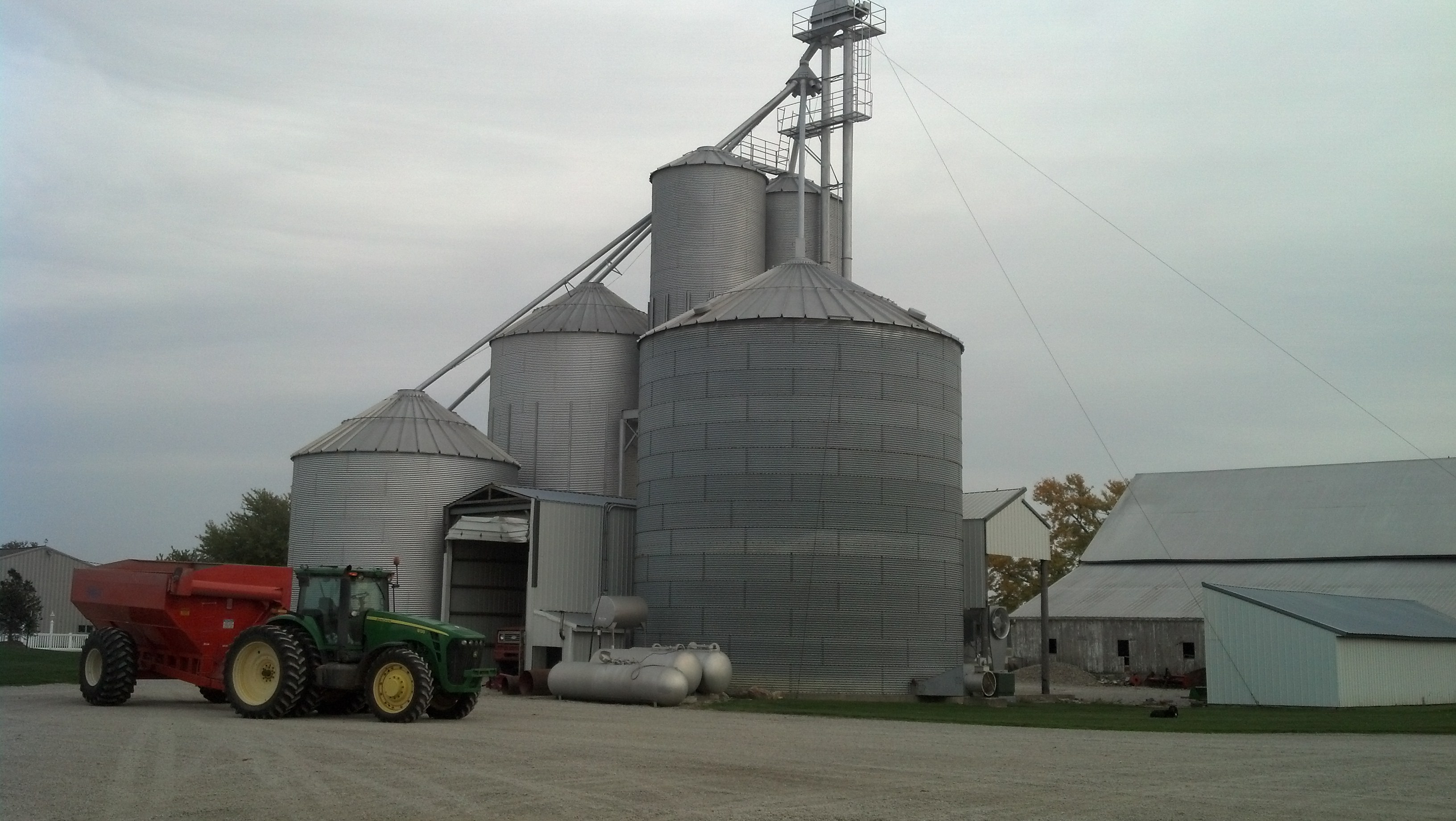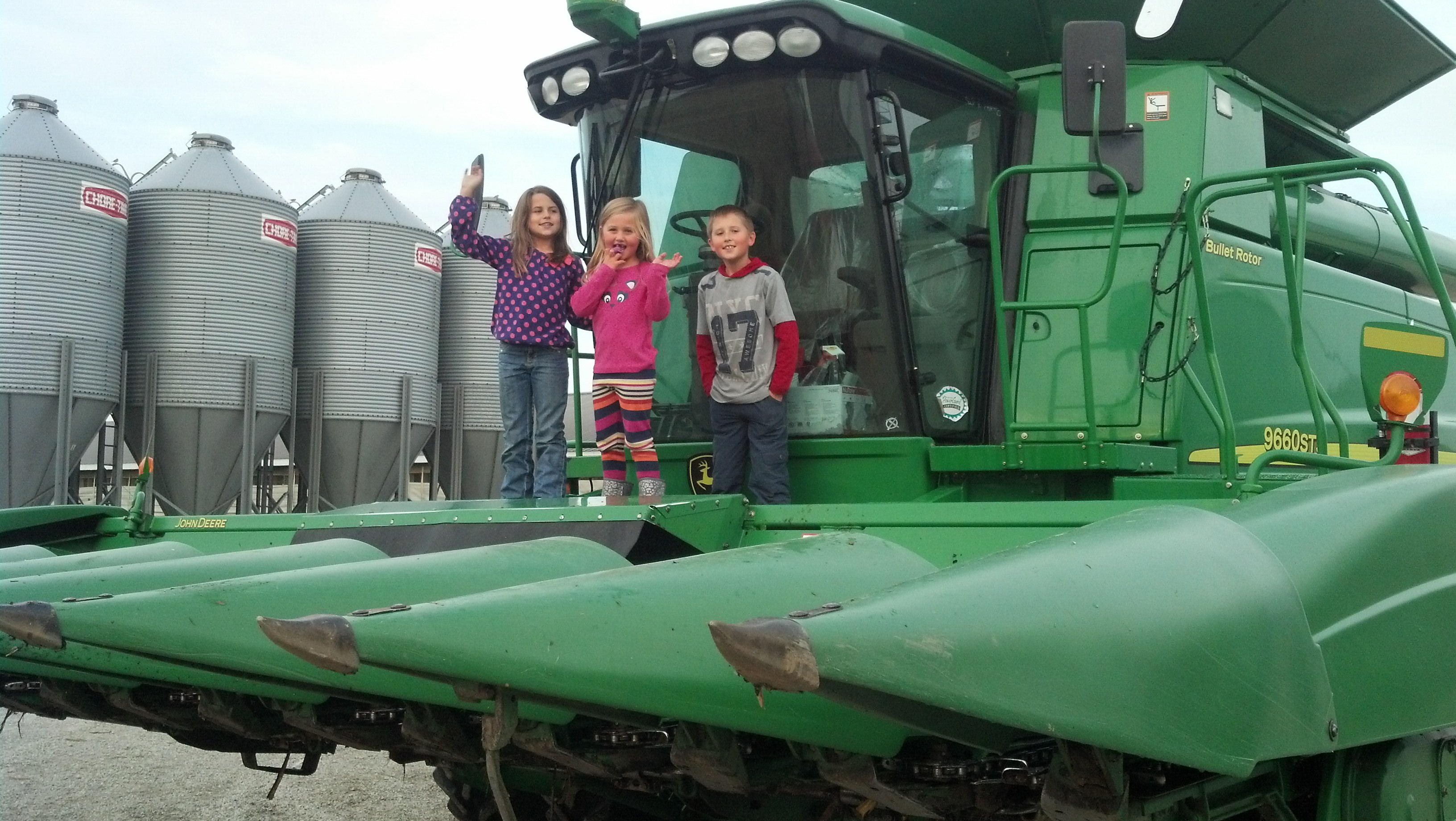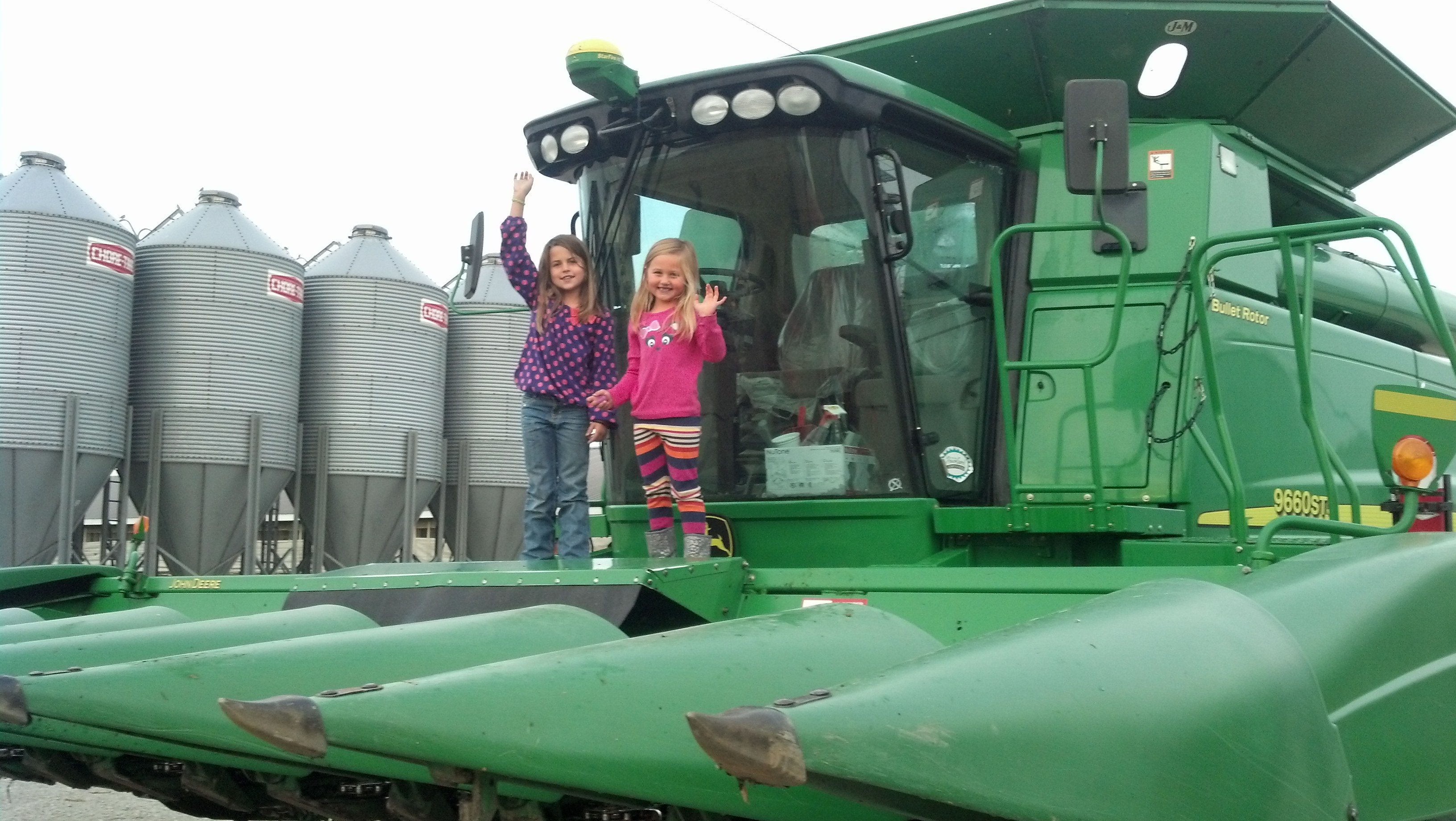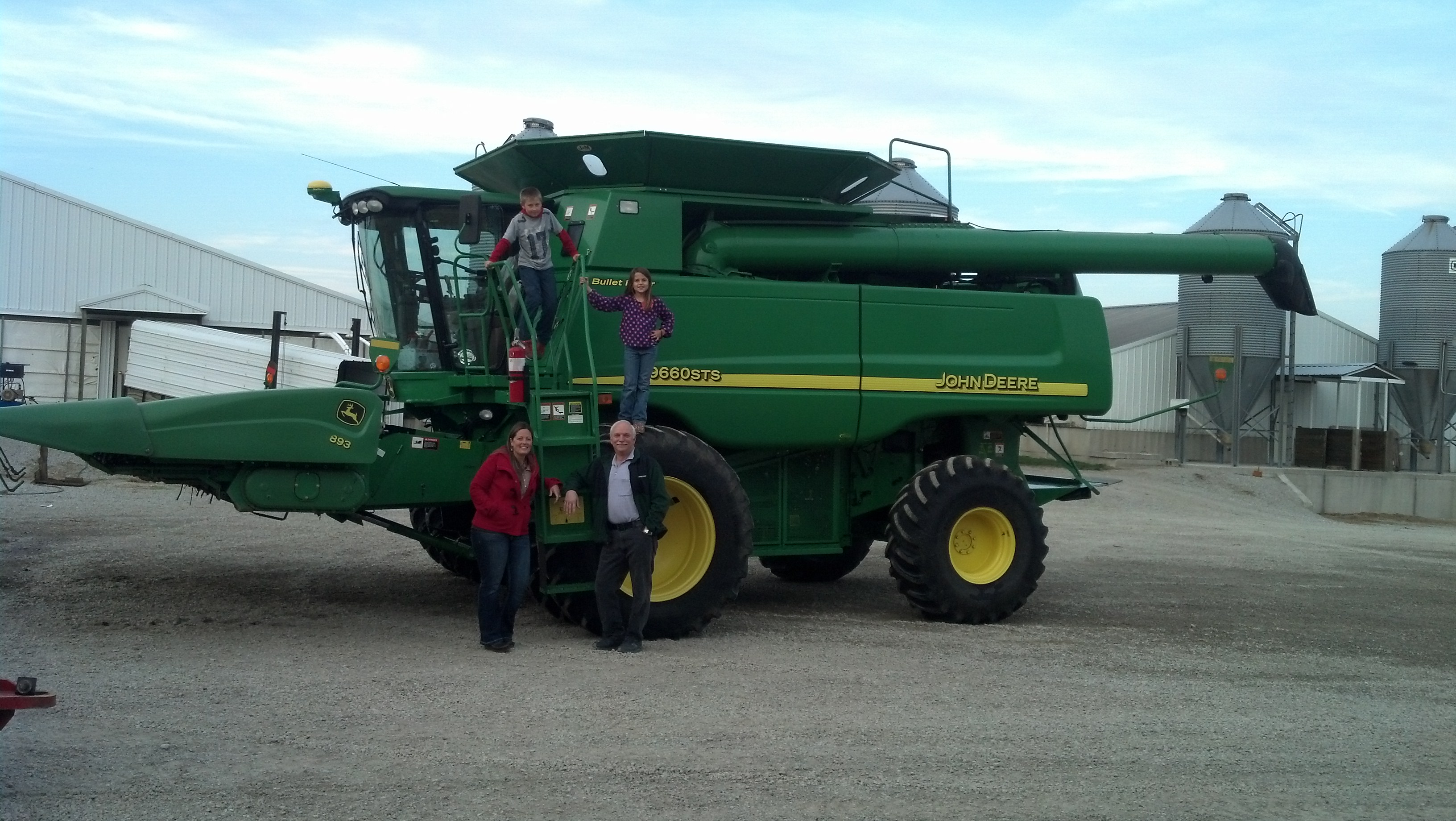 They have a huge 1000 acre farm where they raise corn, soybeans and 5,000 pigs! The equipment is ginormous John Deere equipment and they have lots of it. We climbed up on their combine and boy was it a different world up there. Really cool too!