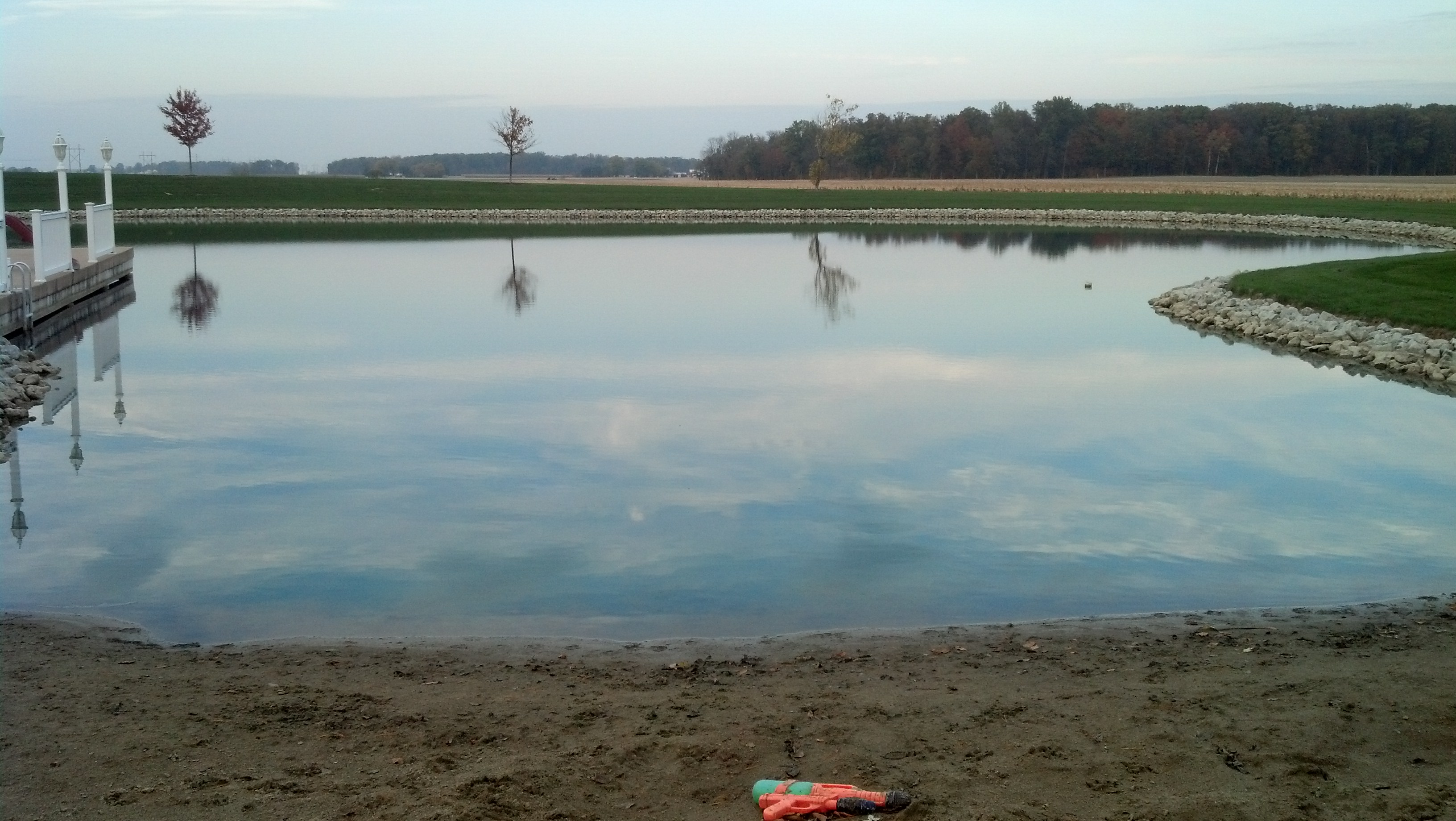 Their home is a three generation home where Ron’s parents and grandparents lived. Ron and Nichole have made a lot of changes including putting in a beautiful pond and small beach. The pond has a cement pier that the kids can either climb into the pond or slide into it or fish from it. The water is almost pool like, clear and blue! We could easily see the fish swimming in the pond.