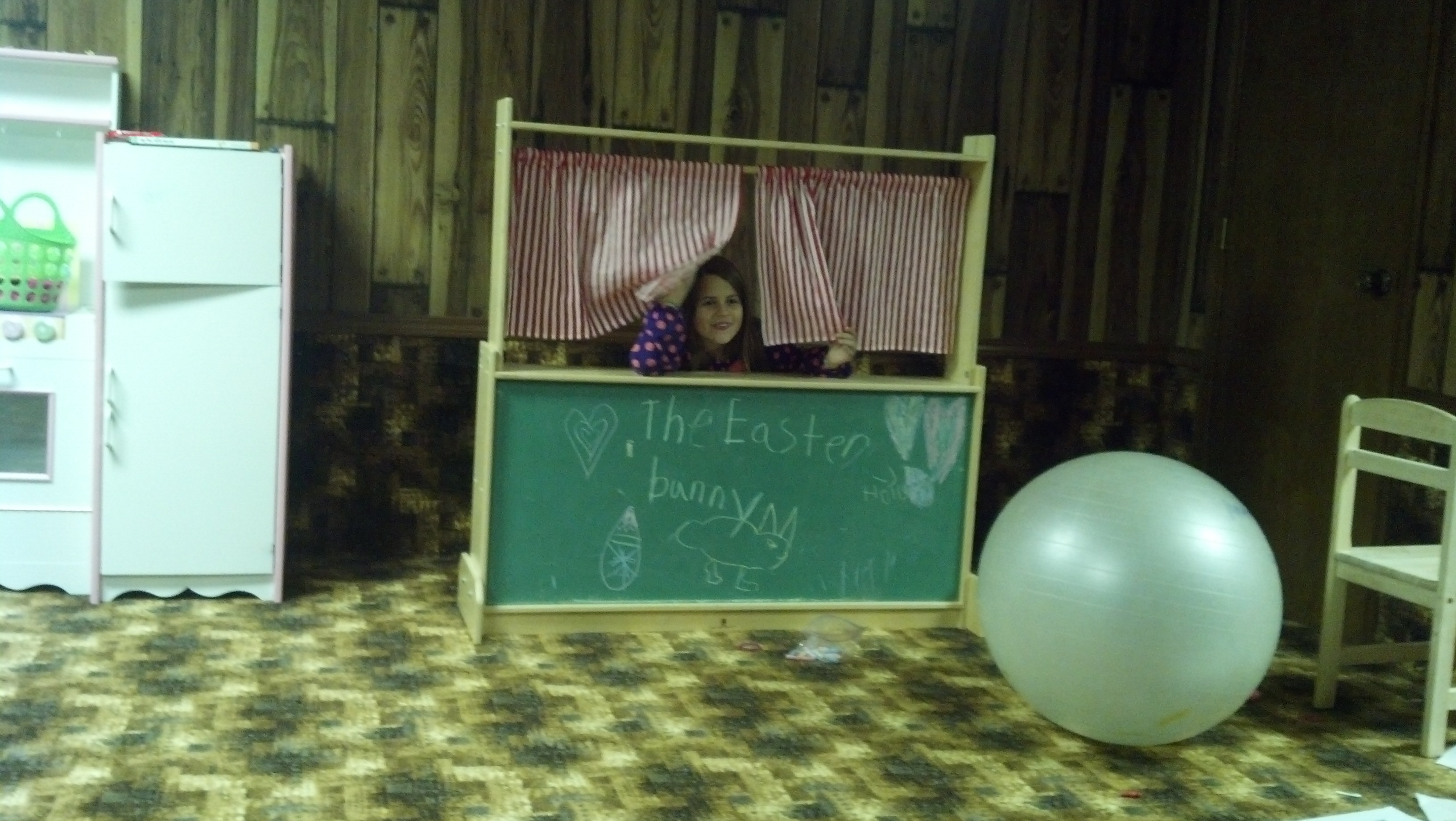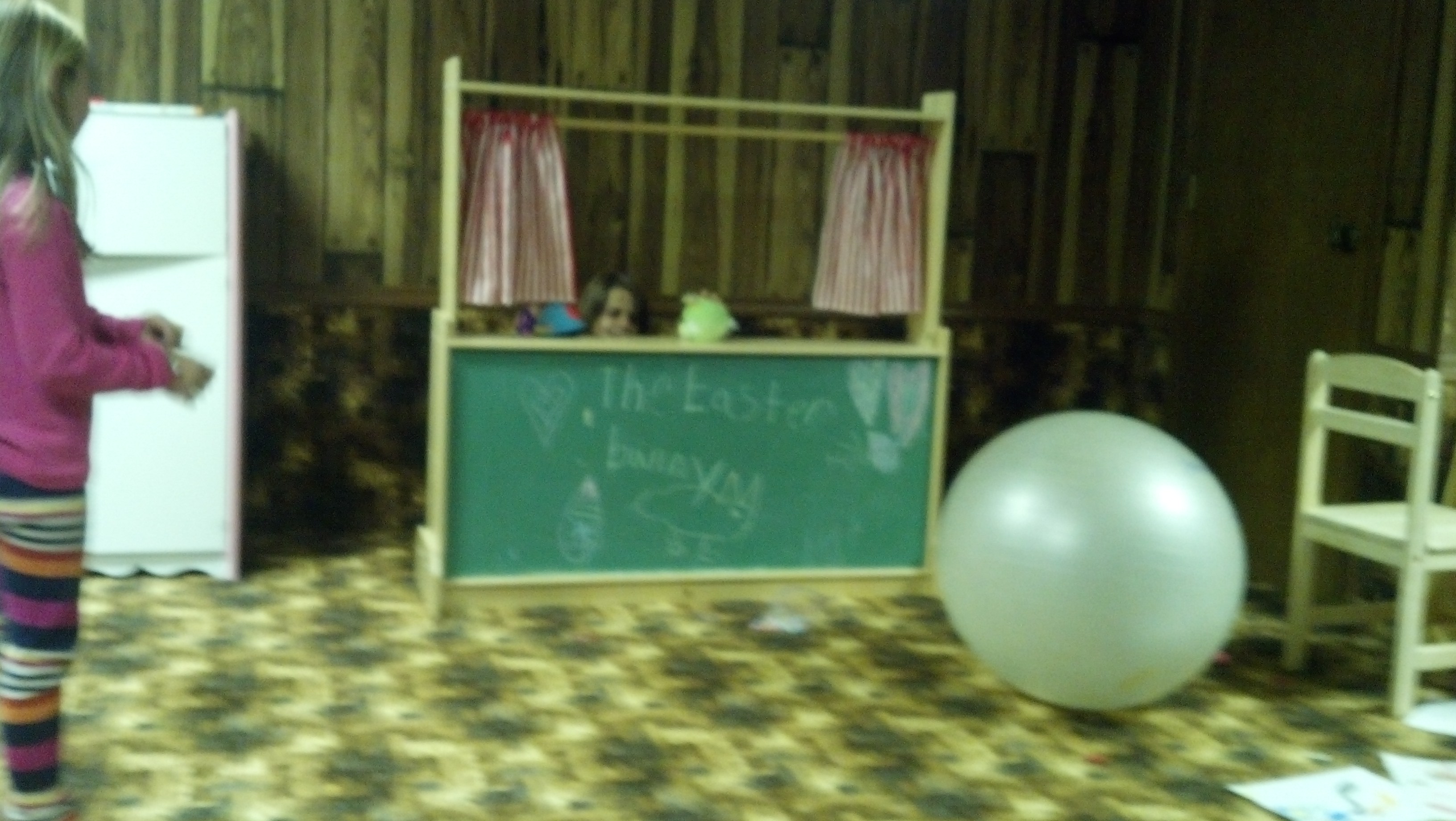 Melanie and Holly brought us down into their basement where they treated us to a couple of puppet shows. We really enjoyed that and kind of felt like grandparents again being entertained by our grandchildren. Neither Roy nor I have been in a basement before so this was a real treat! It’s a perfect place for the kids to run around and be creative.