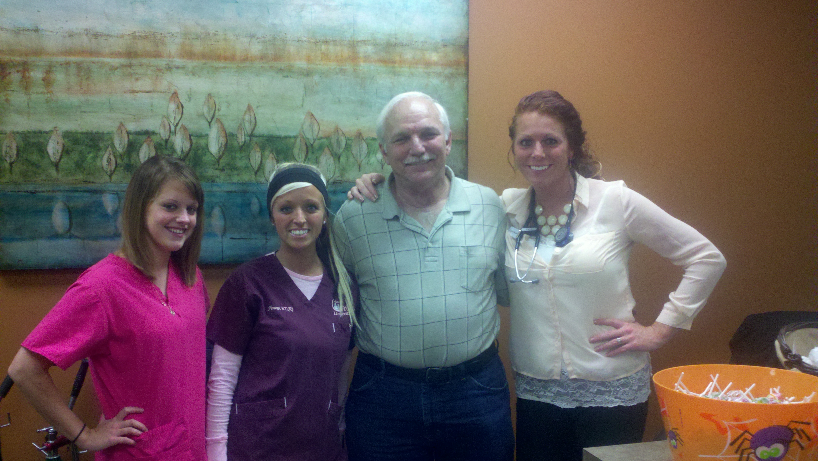 Ya’ll know how we like to take pictures of everything we do so we took a picture at the Urgent Care center with the ladies that took care of Roy.  That’s the first smile I’ve seen on his face in a few days but he’s got pretty ladies around him so I understand!