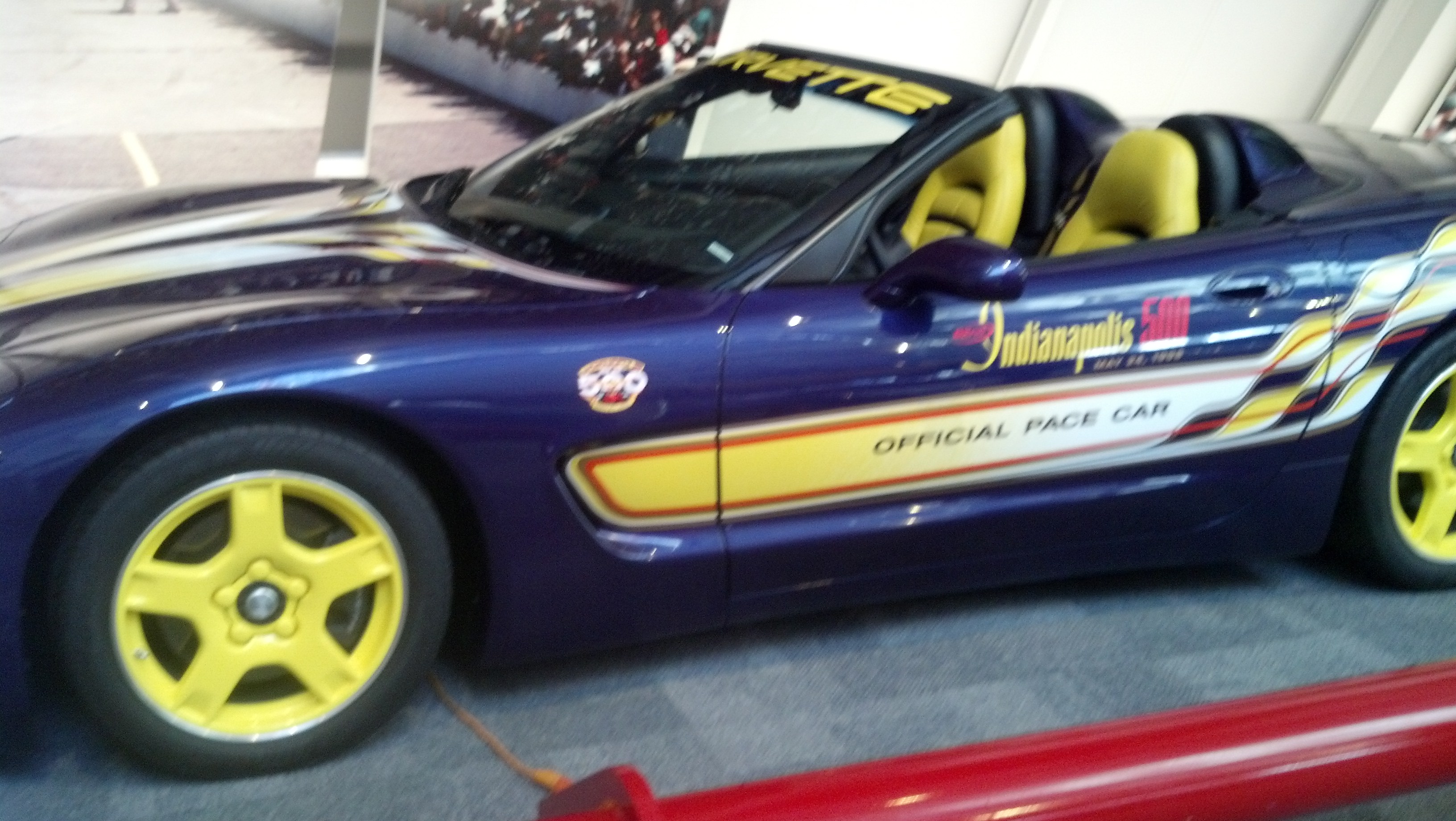 Many of the Indy 500 Corvette pace cars were on display in this upside down cone shaped building that was highly ultra modern.  Every bit of the decor in the whole museum was Corvette styled.