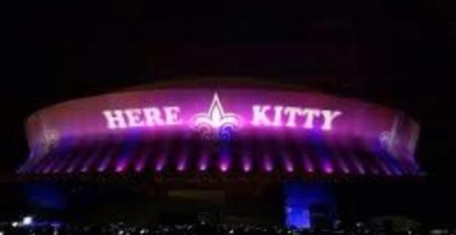 This is what the New Orleans Superdome looks like welcoming (or perhaps it’s warning) the Carolina Panthers. Had to show this, I love it! There is nothing like the spirit surrounding football in Louisiana!