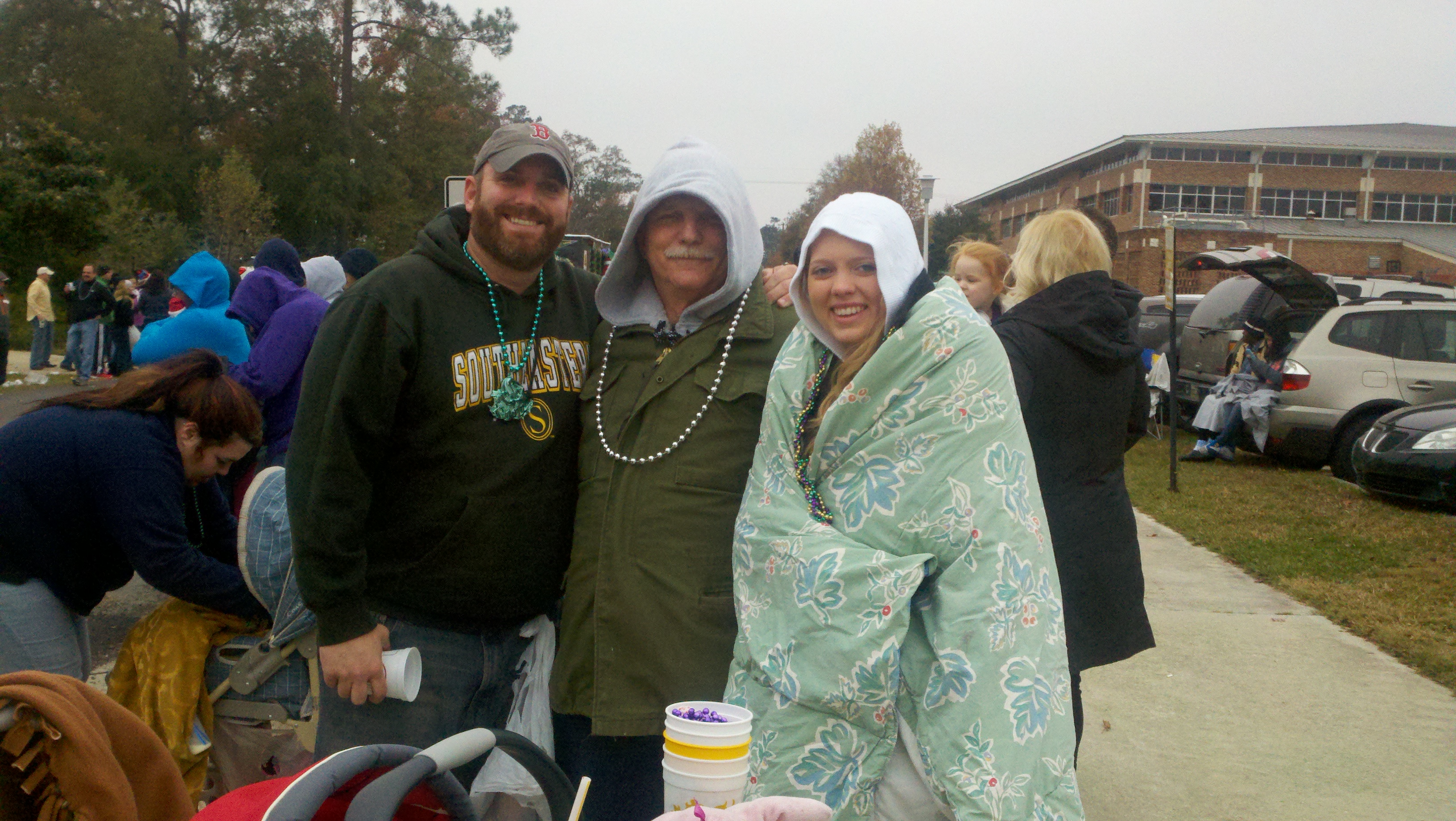 We had a wonderful time and it was between 38 to 40 degrees which for you northerners is quite, quite cold for Louisiana. The little boys were bundled, covered and covered more to keep the cold out! We all had many multiple layers on and still managed to catch tons of doubloons, beads, candy and cups. How nice it felt to go to a Louisiana parade again! There is nothing like it and to get to go to it with our family was the best! Here are some pictures from the parade.