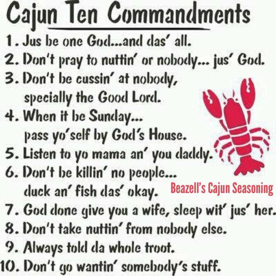 No this is now how we learn our ten commandments. Those are learned from the Bible but this is certainly a perfect cajun way to describe them.