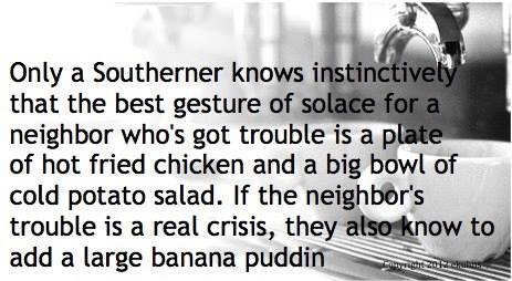 Us Southerners are big people because of this. If someone is sick, you feed them. if someone dies, you feed the family. If a friends relationship breaks up, you bring them food or take them out to eat. If someone does something great, you have a party with food. If nothing is happening you create something by cooking and inviting family or friends over. Every aspect of our lives involves delicious home cooked food. I’m a firm believer that Southern Baptists are the best at pot luck dinners that there is. If you really love someone you bring them banana pudding!
