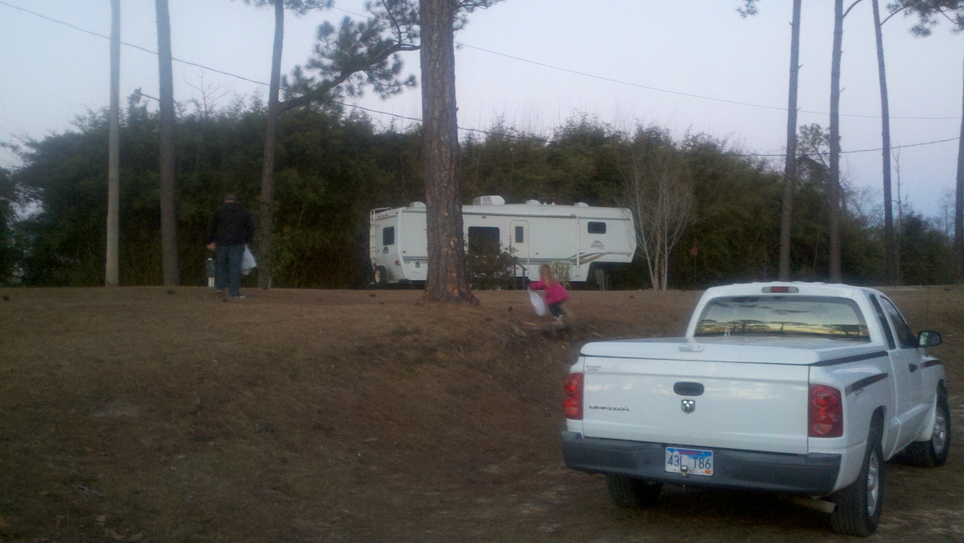We spent yesterday evening outside gathered around the fire pit for hours. Chip and Madisyn took bags and searched for wood and pine cones for our fire pit. Roy and Chip went down to the beach and cut some wood. Madisyn made friends with the little girl, Emma, next door and they ran all around the lawn, squealing like little girls do so well!