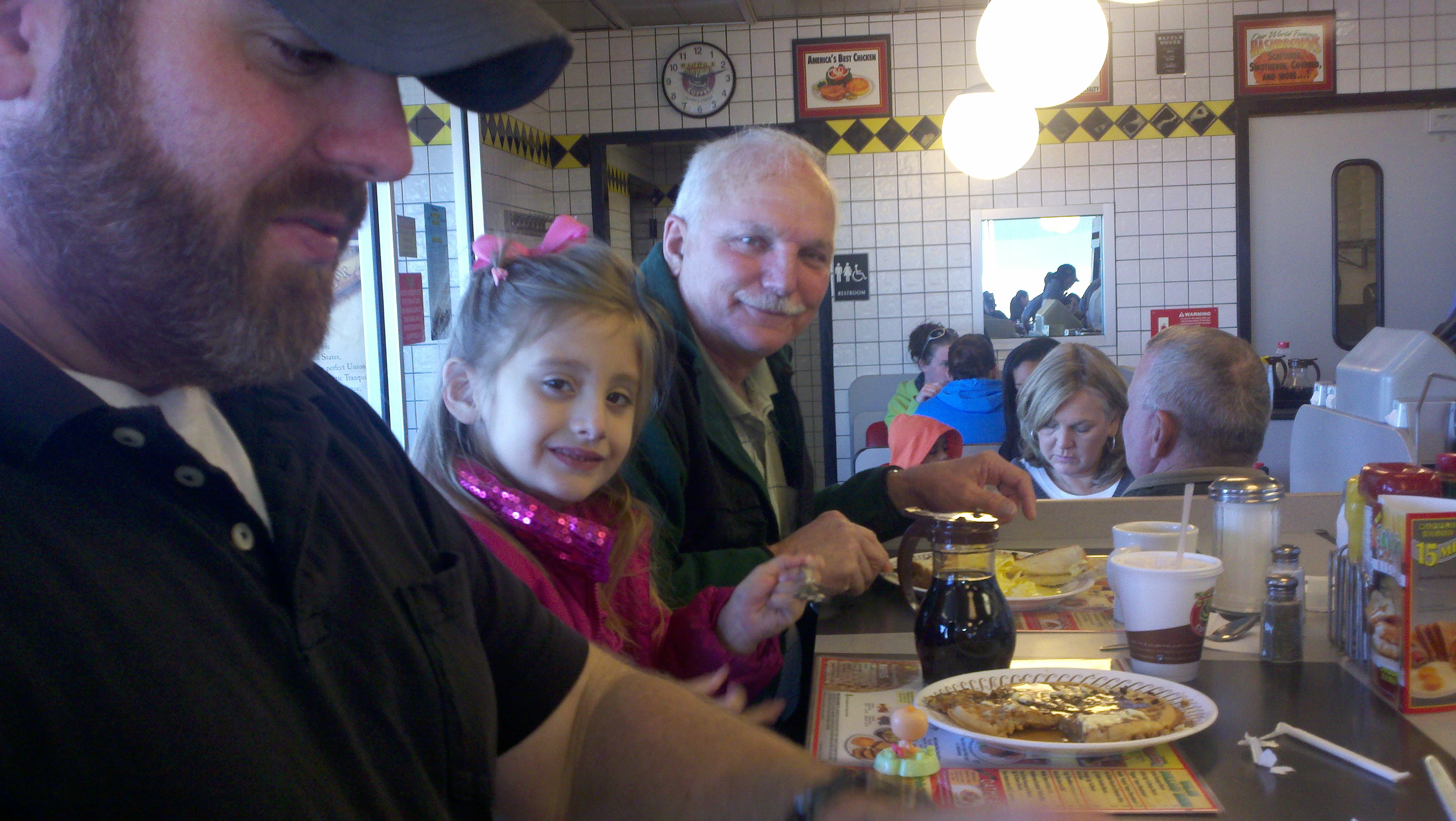 This morning we did something unusual for us, we went out for breakfast. Chip treated us to breakfast at Waffle House on the beach. There is nothing like a Waffle House meal and I say that quite seriously. They have the best food and when we left we were all stuffed!