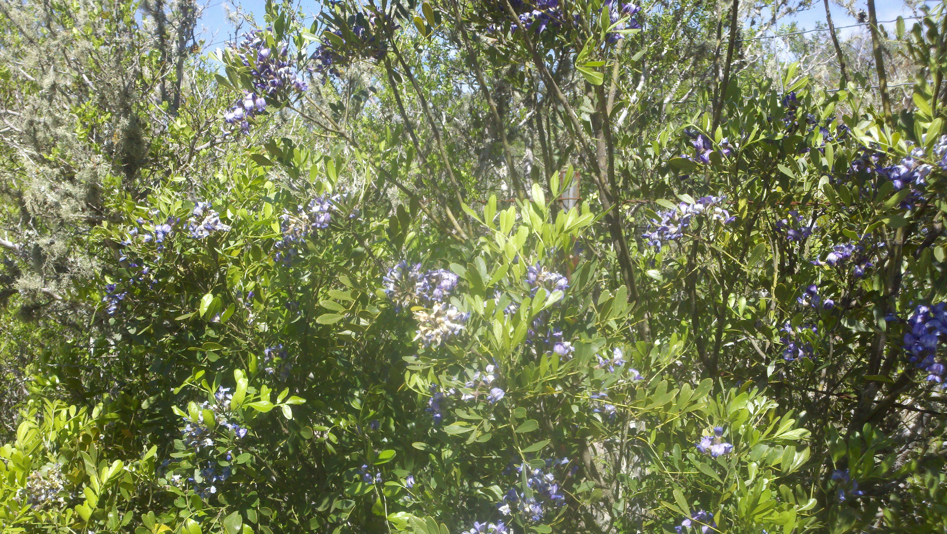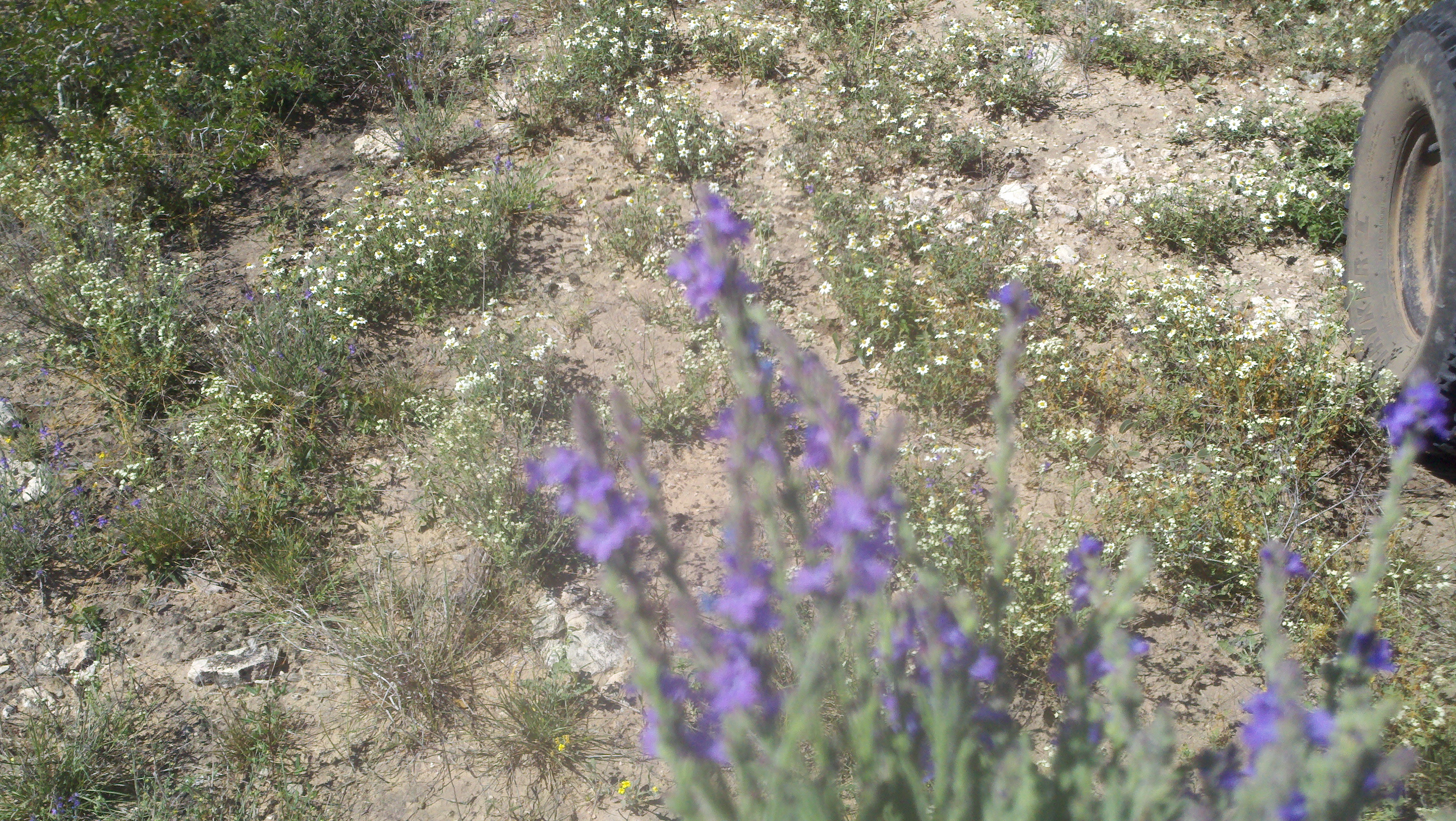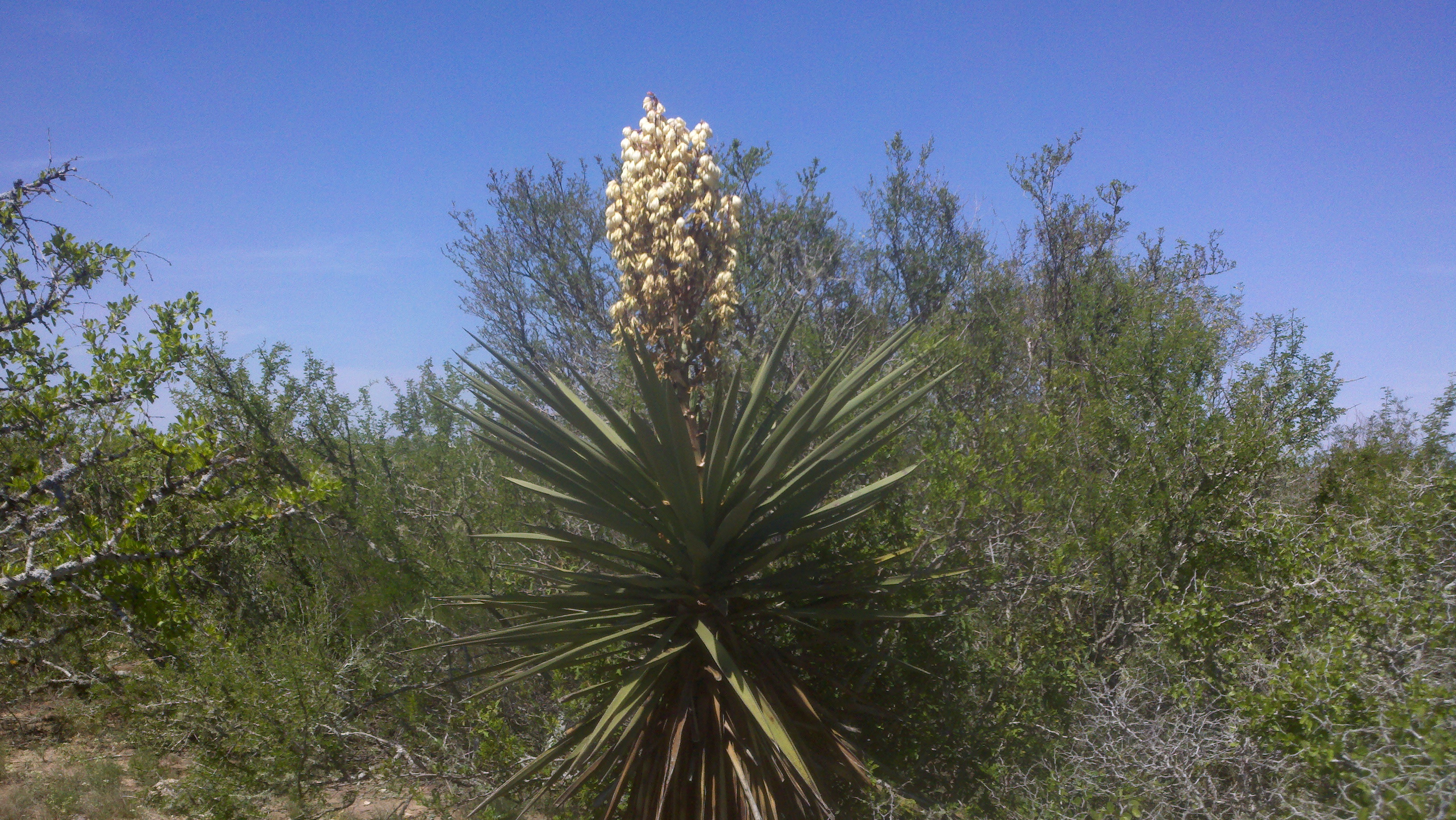 It was a beautiful breezy warm day for riding around the ranch. I picked some of the purple flowers shown below for our RV. Roy took us off the road to get an up close look at this flowering yuca (I think that’s what it is).