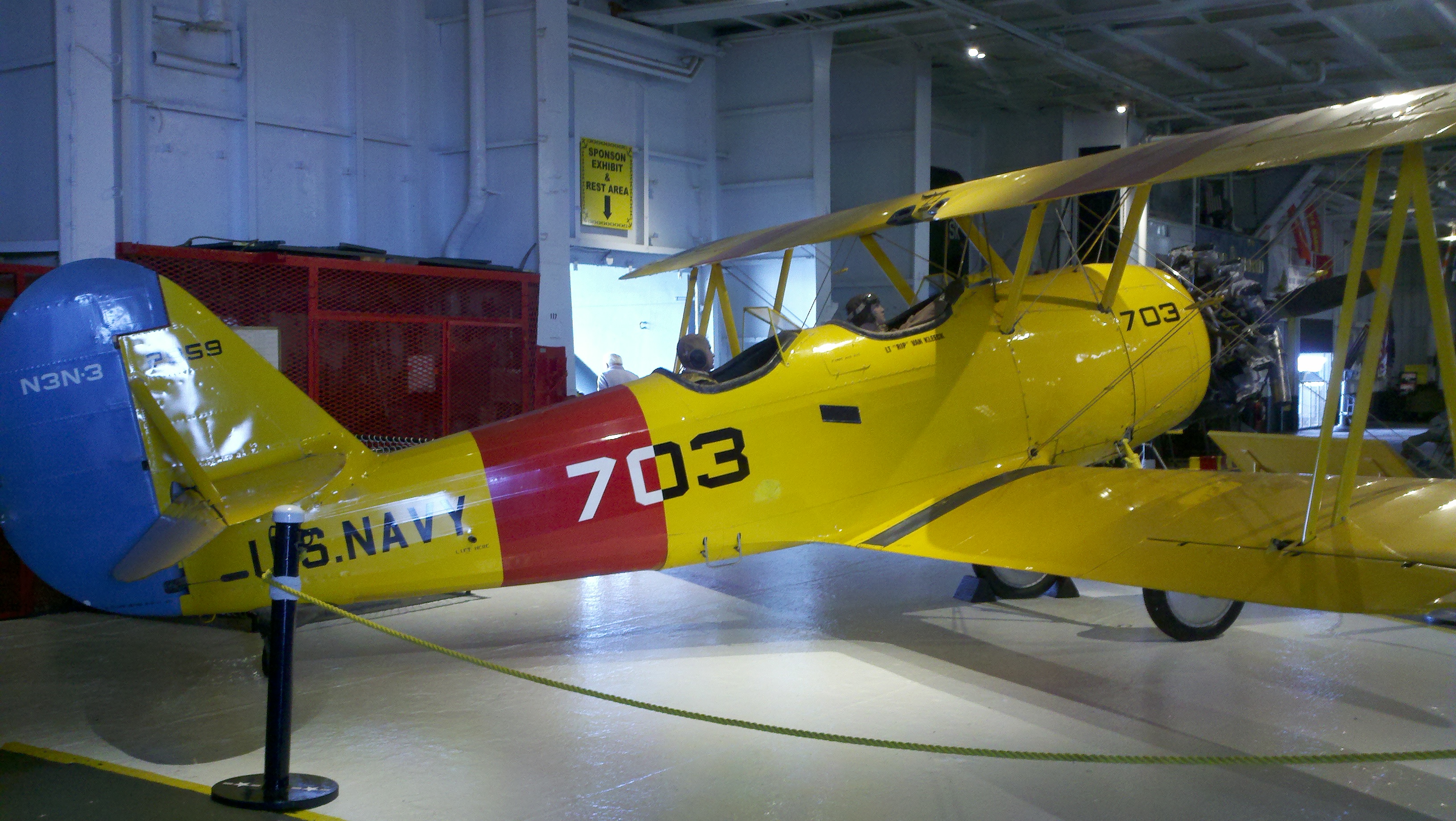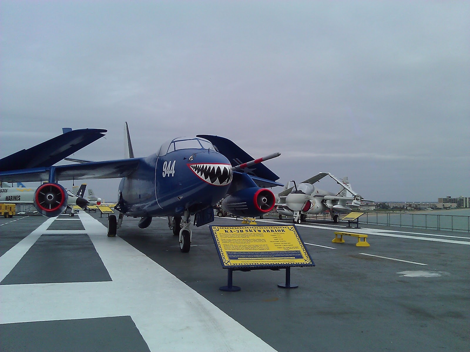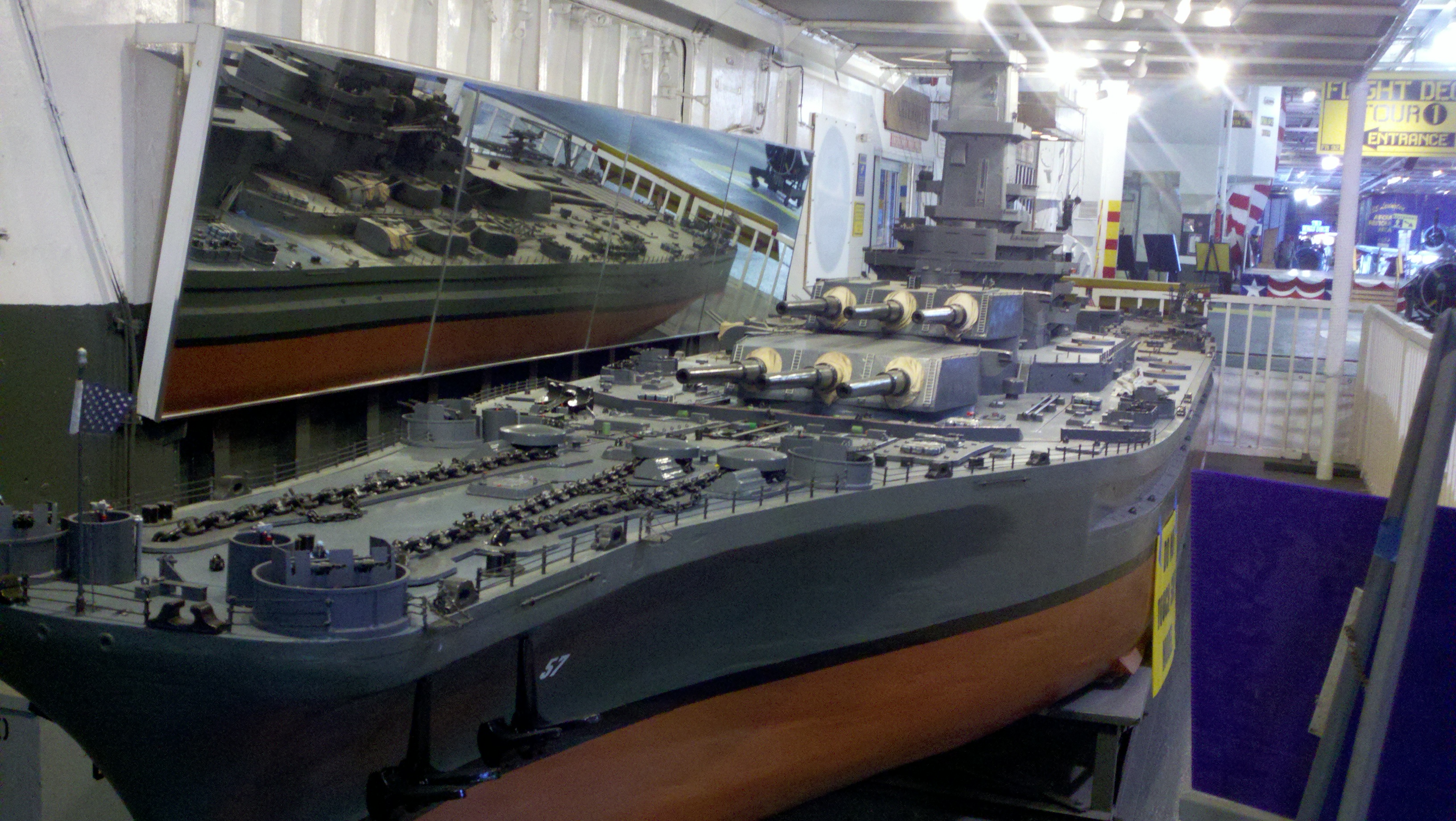 The Lexington is an enormous air craft carrier and is three football fields long. The flight deck, on top where the aircraft took off and landed, is said to be big enough to hold 1000 cars! I think they would have to be compact cars but that’s a big place! The flight deck currently is a display area for several planes from various eras. My phone’s battery died before we got to that area so the only pictures I have of the planes on the flight deck are ones I got off the internet.