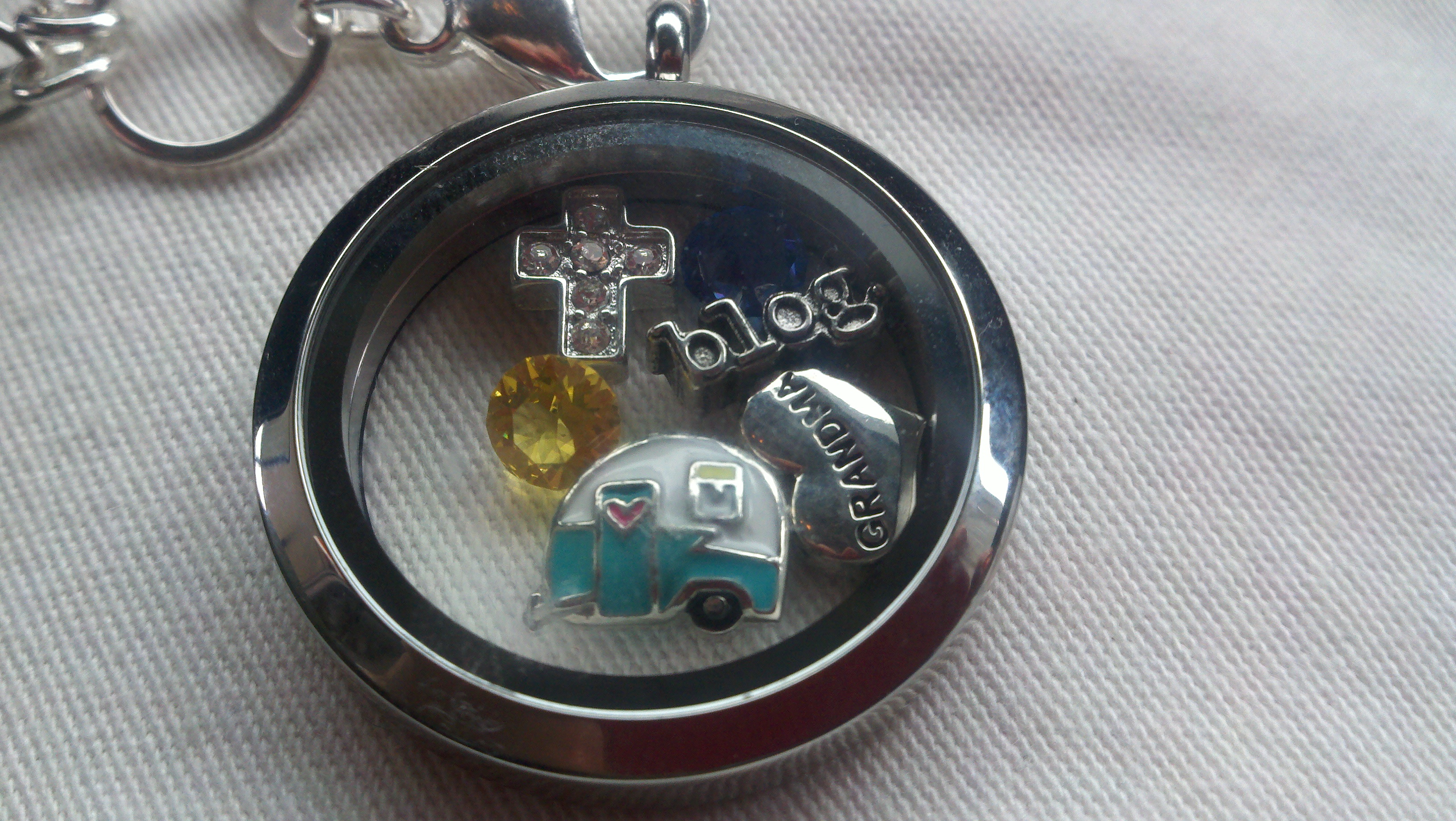 my birthday, a stone for our Anniversary, one that said Blog (guess why??!!), a cross because I’m a Christian, a precious little camper for our RV life and a heart that says Grandma. They float freely in the round pendant. It is so special and I’ve never seen anything like it before. He picked the perfect gift personalized just for me!! What mom wouldn’t love such a personalized gift!!