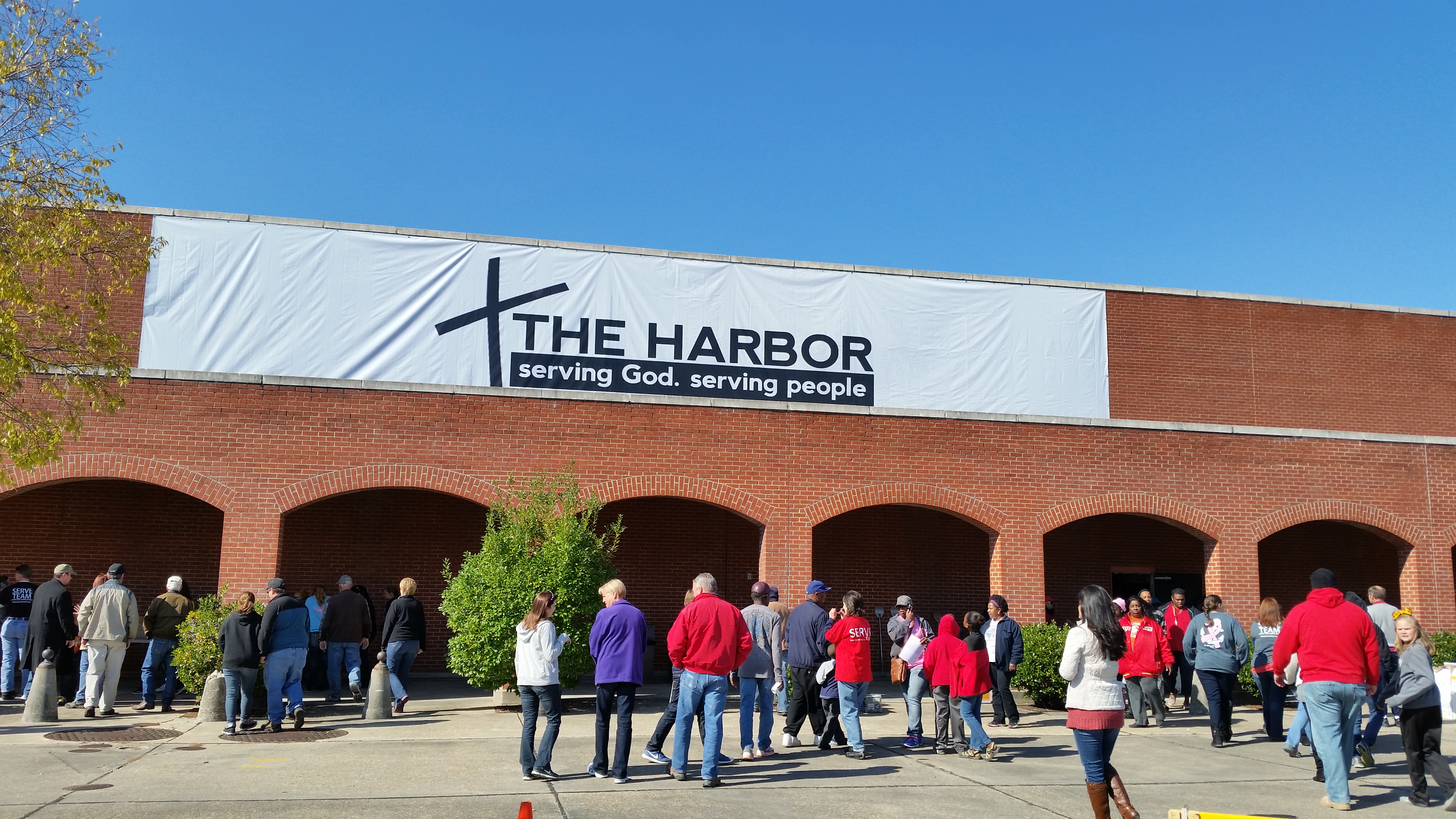 Chip’s church, Soul’s Harbor will be moving soon into what us locals call the “Old Schwegmann’s Building” in Hammond. It’s been vacant many years and I wrote about them moving there recently. The new Soul’s Harbor church building served as the distribution site Saturday. They just put up the banner on the old grocery making it official. That’s some of the workers gathered in front early in the morning.