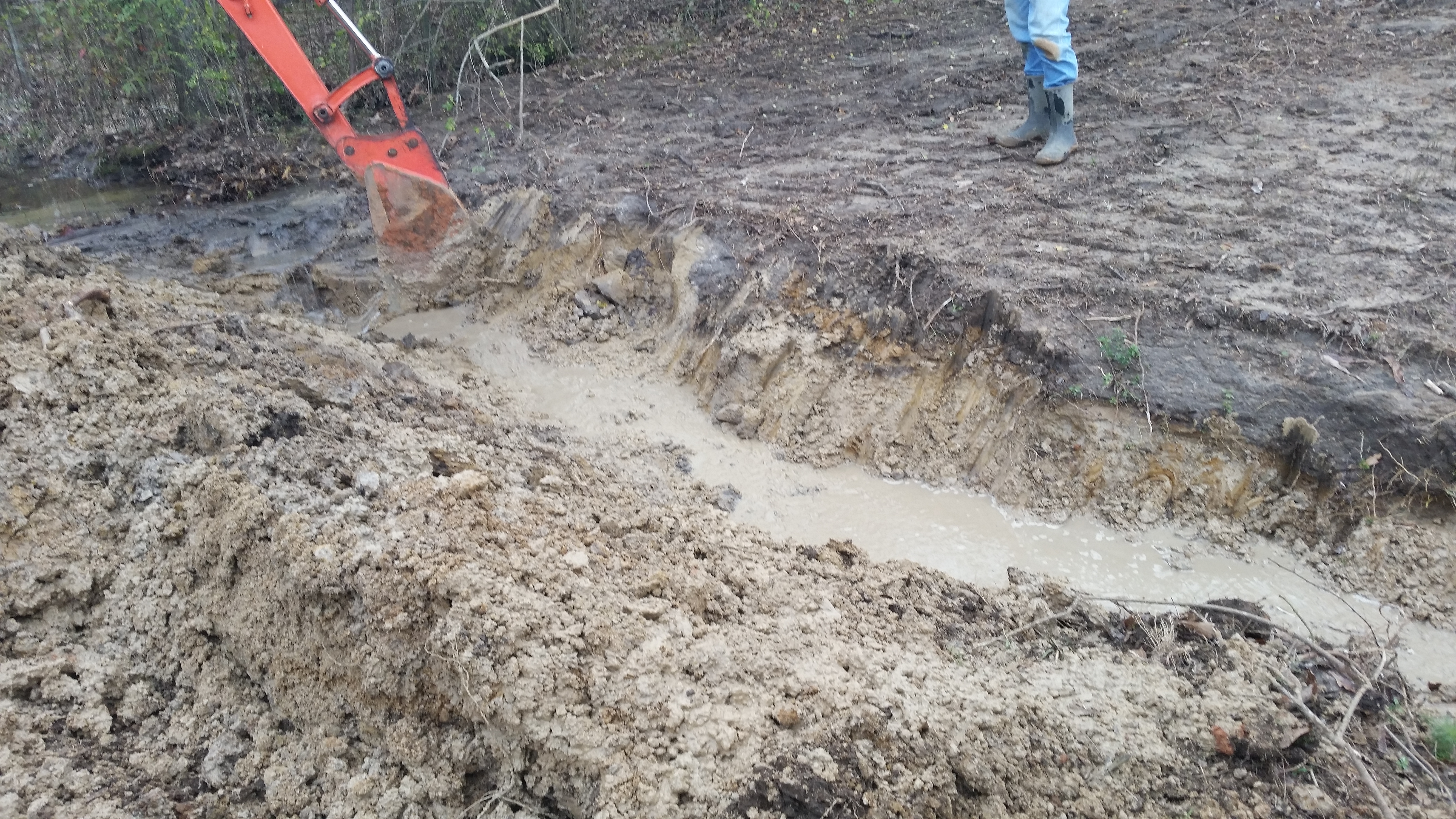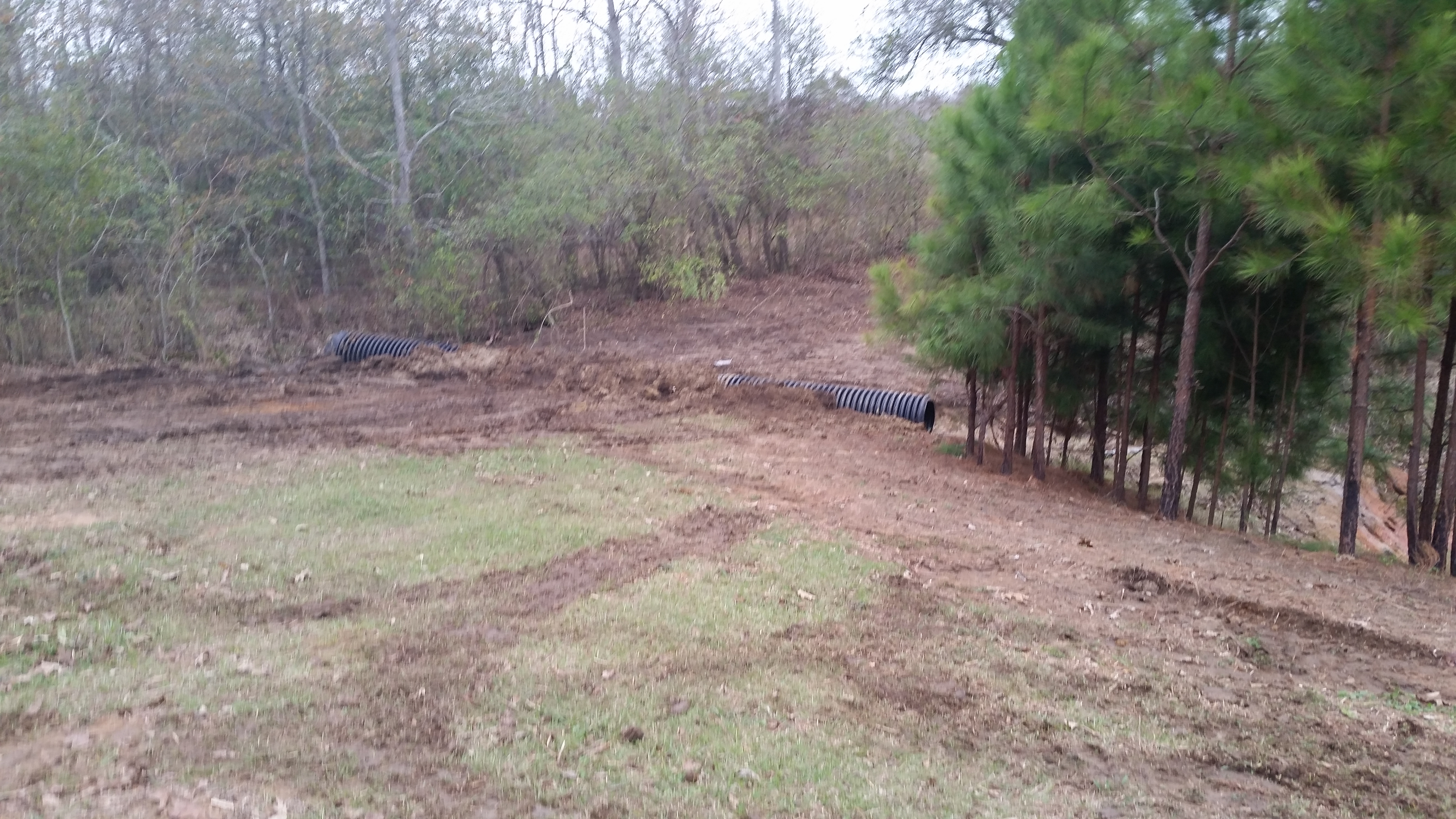 Mark is also going to dig the trench for where we will put the culvert out by the pond (where the water is flowing) which will reduce Roy’s physical work back there. We’ll still hear the water flowing sound as it falls out of the culvert into the pond. I’m going down there now to supervise and make sure they get it right!