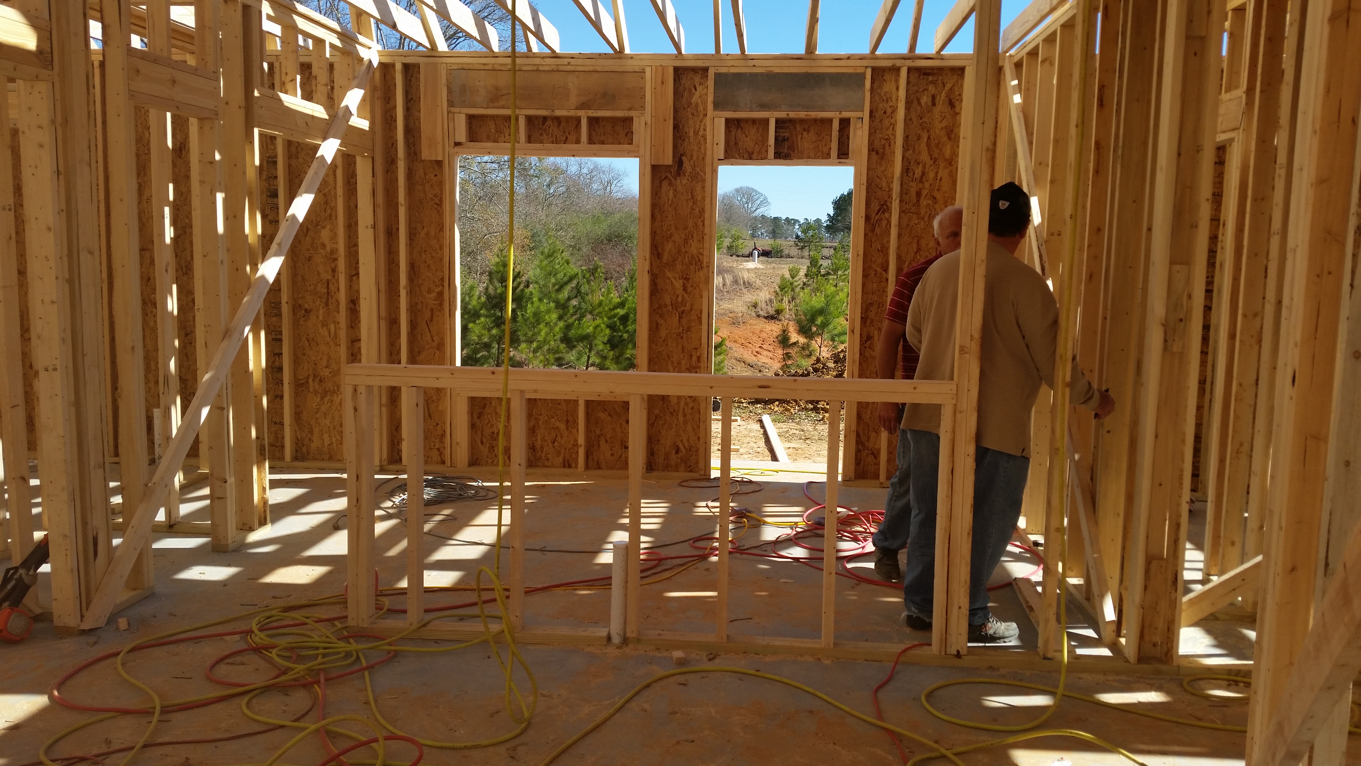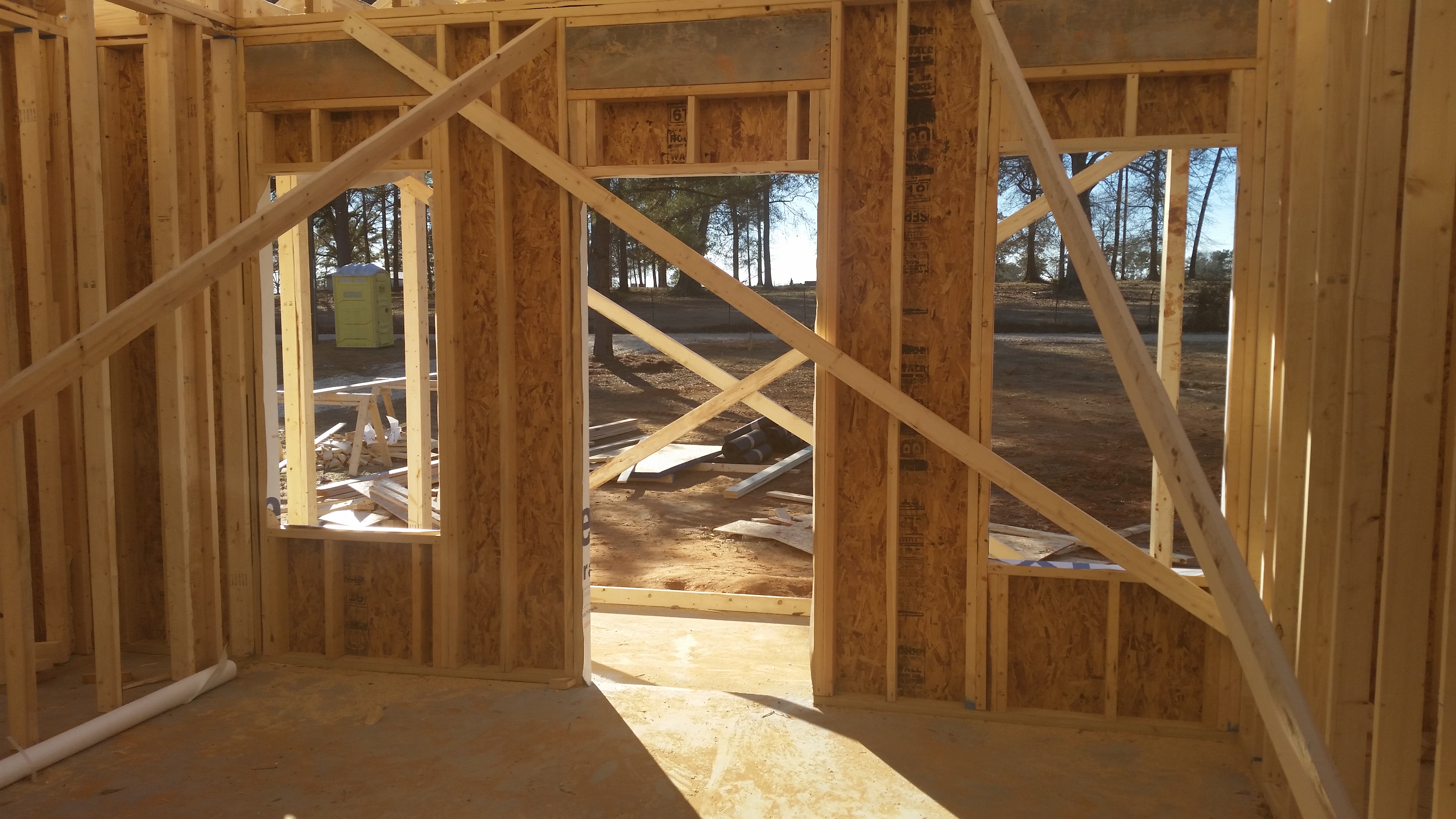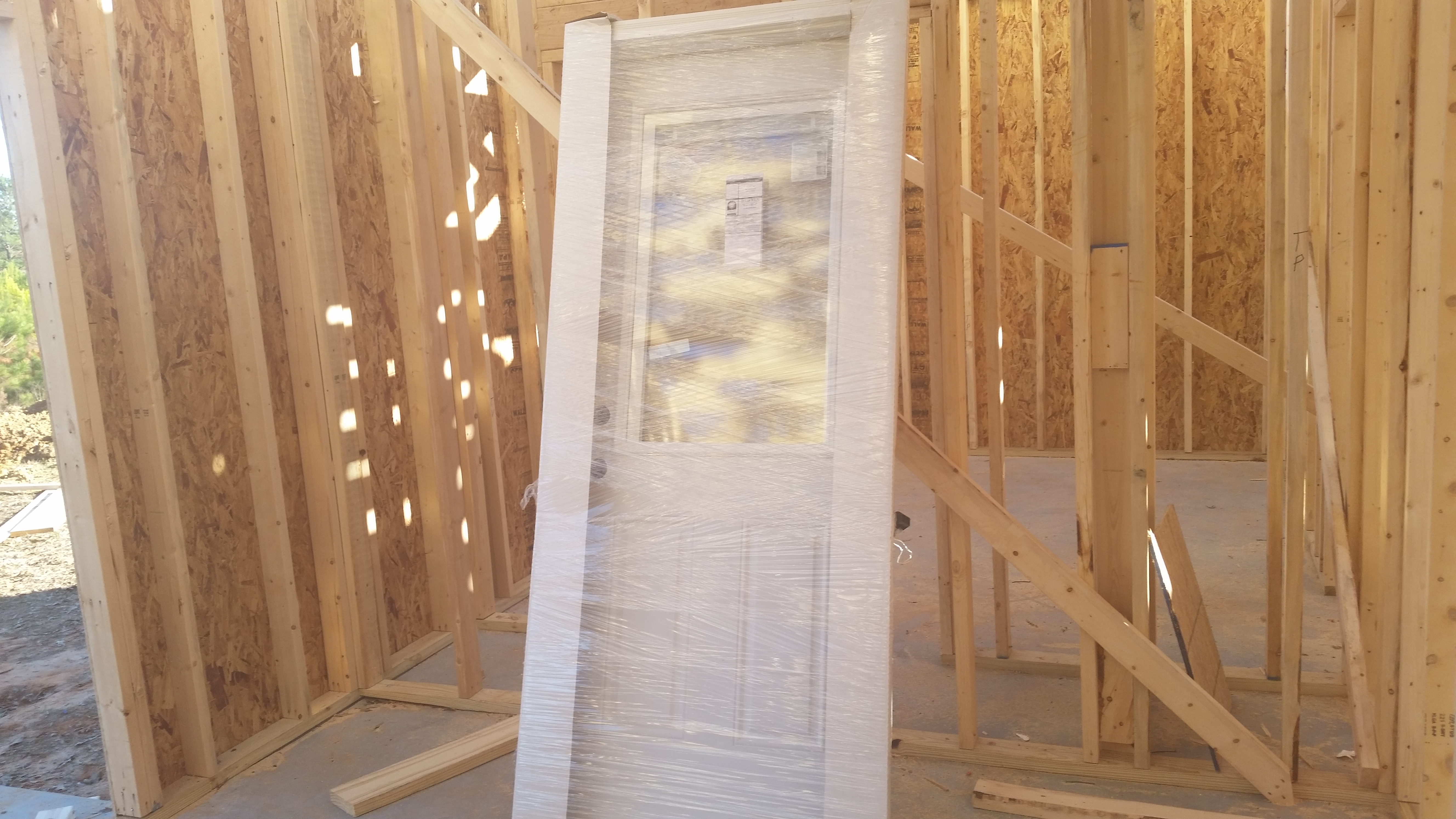 The exterior doors are stored in the house until tomorrow when they will be hung.