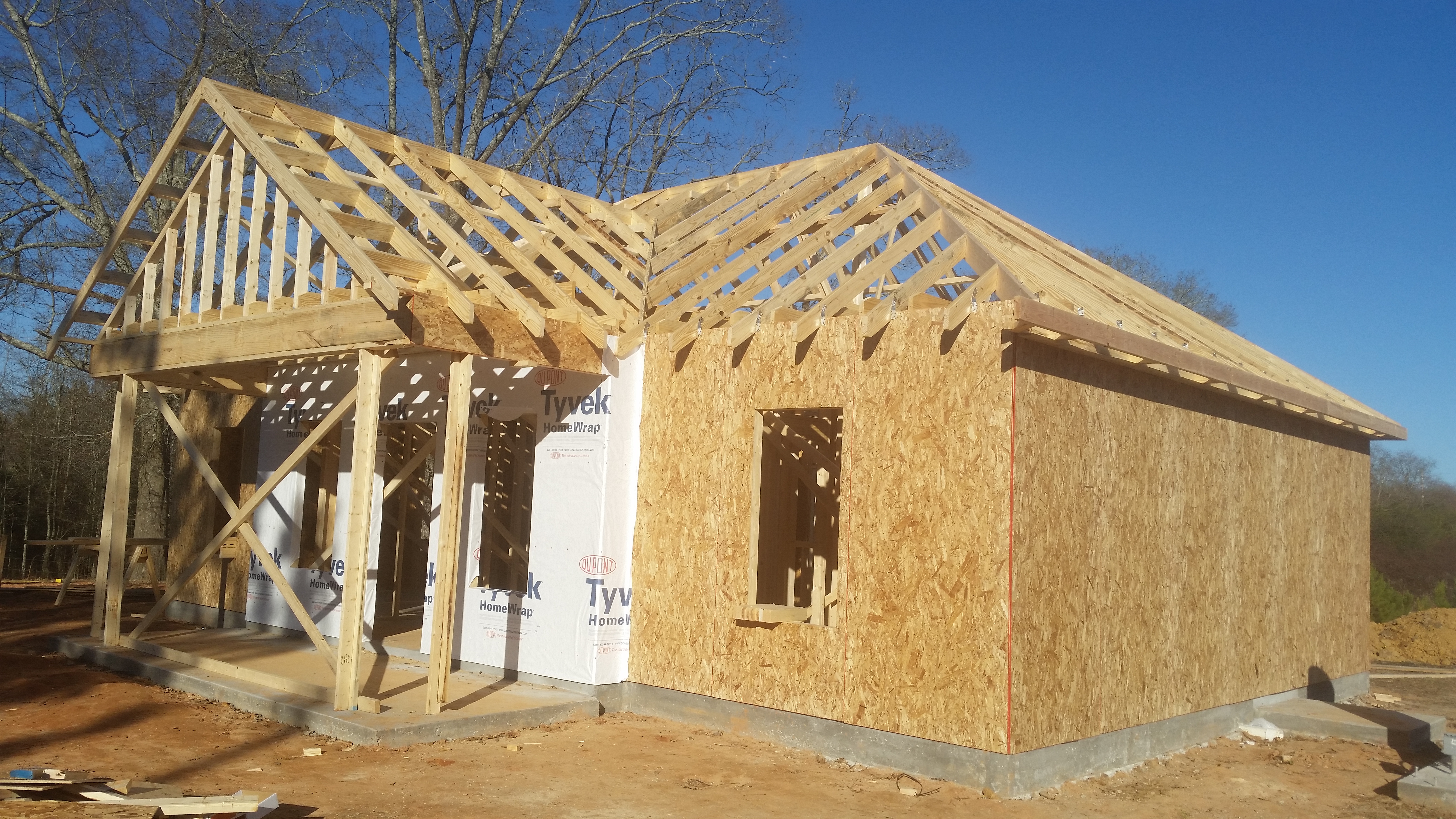 When we arrived home we saw their finished work for the day. Some TYVEK is wrapped on the front porch area and I guess will be finished tomorrow. We think they will finish their work tomorrow or if necessary Thursday morning.
