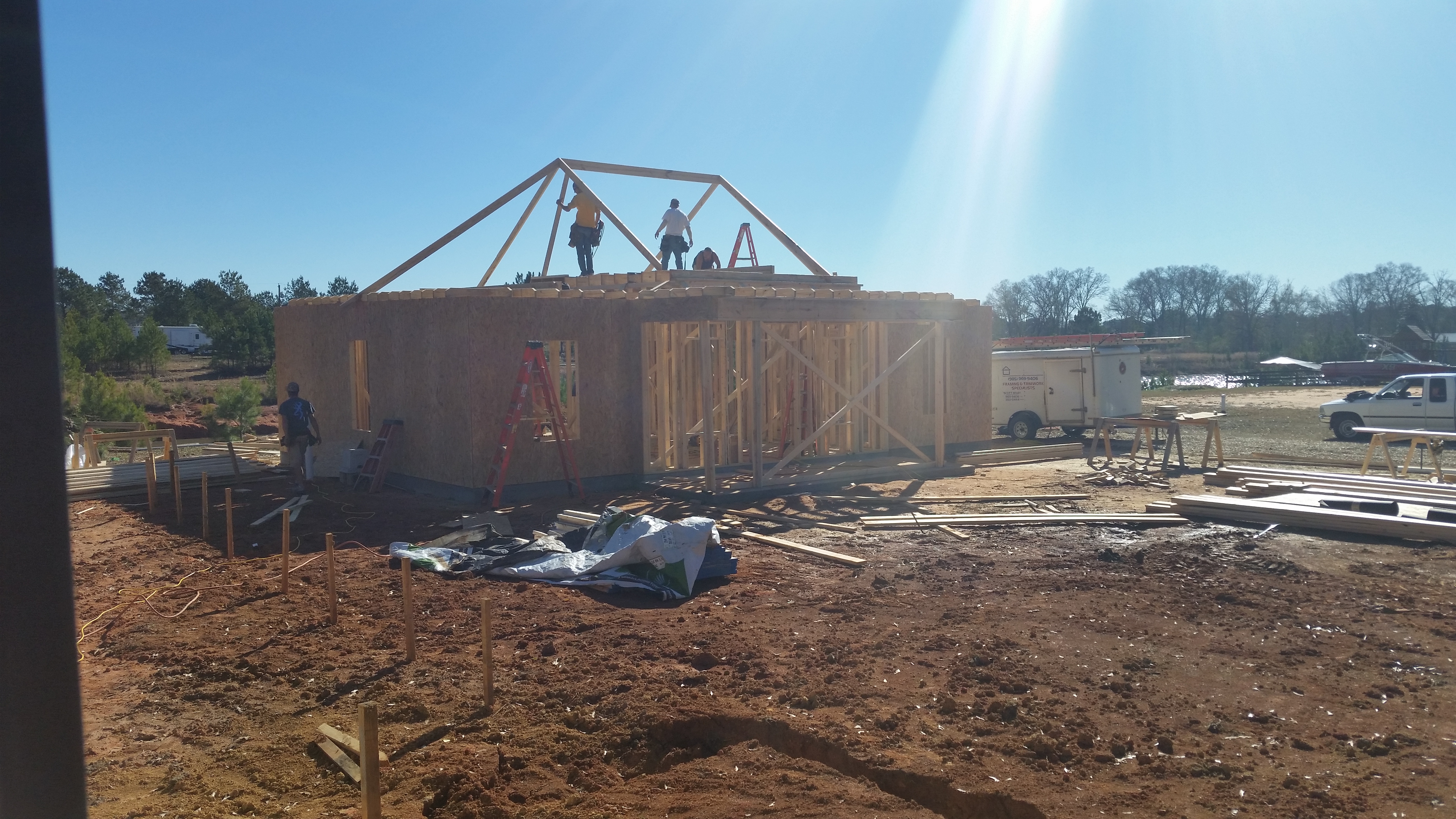 Waking up this morning I looked outside and seeing men on the ROOF hammering and building was a wonderful sight! Then to see the Gabriel’s truck drive up and unload roofing boards and felt paper was a double wonderful sight!