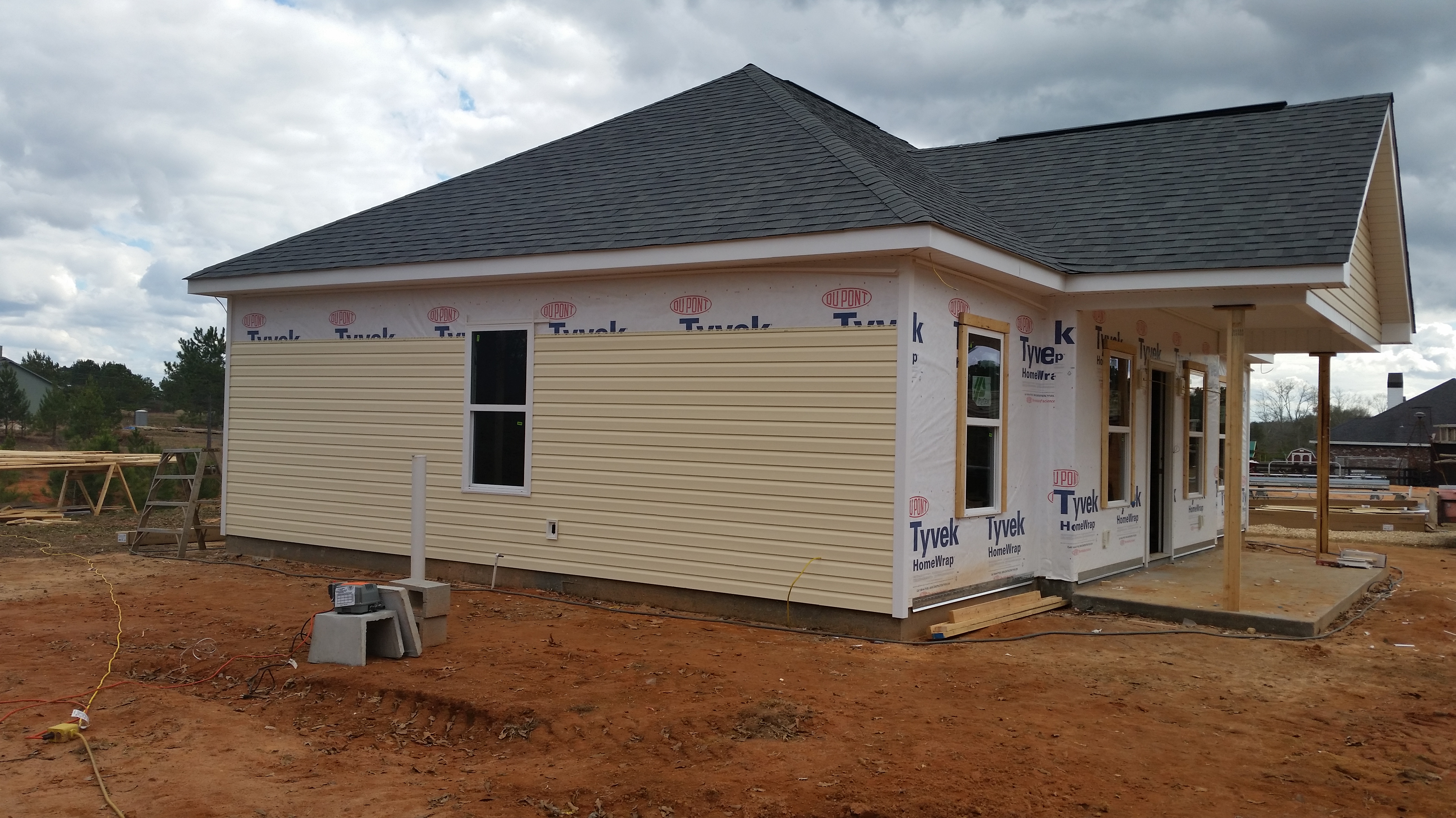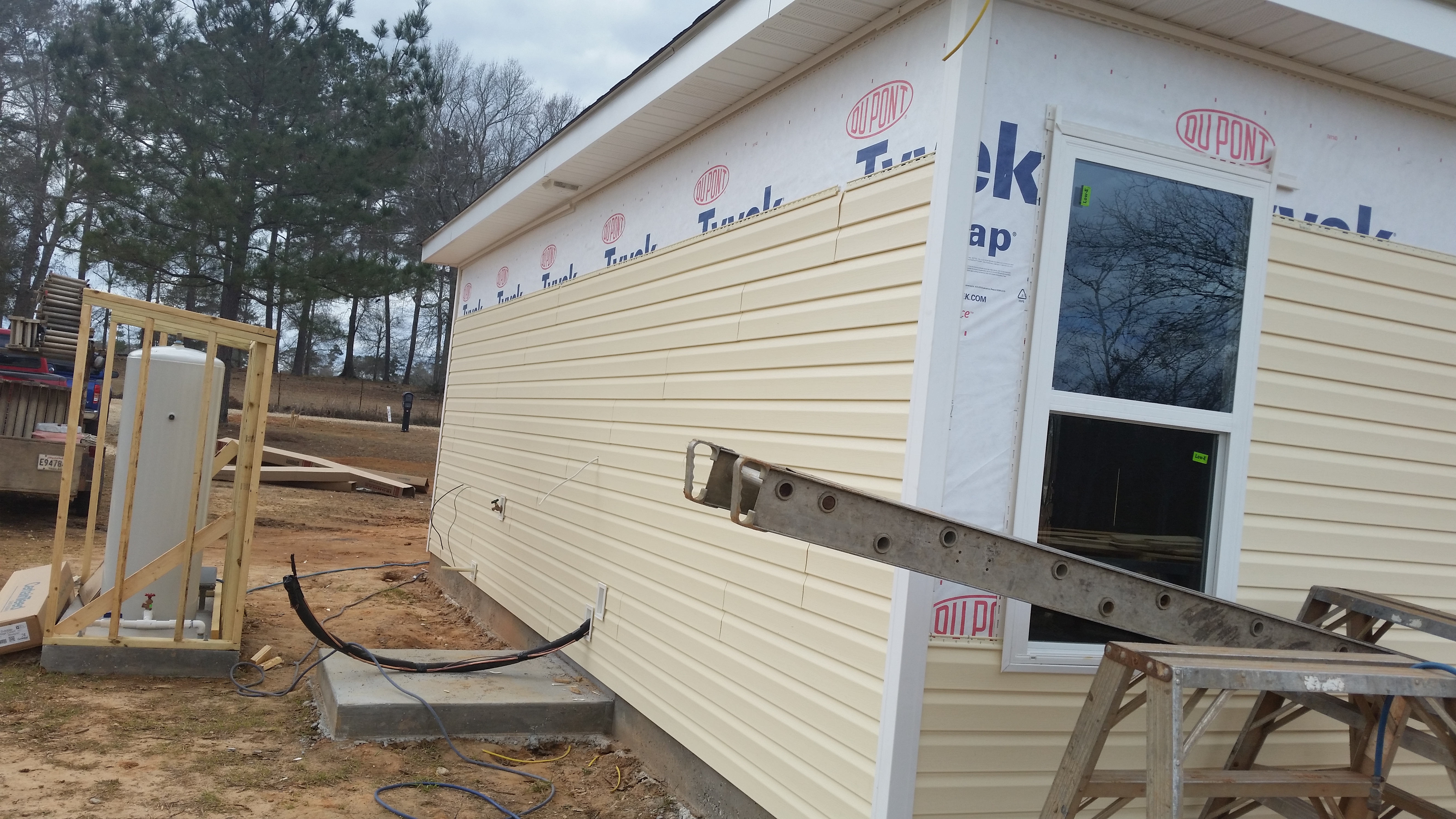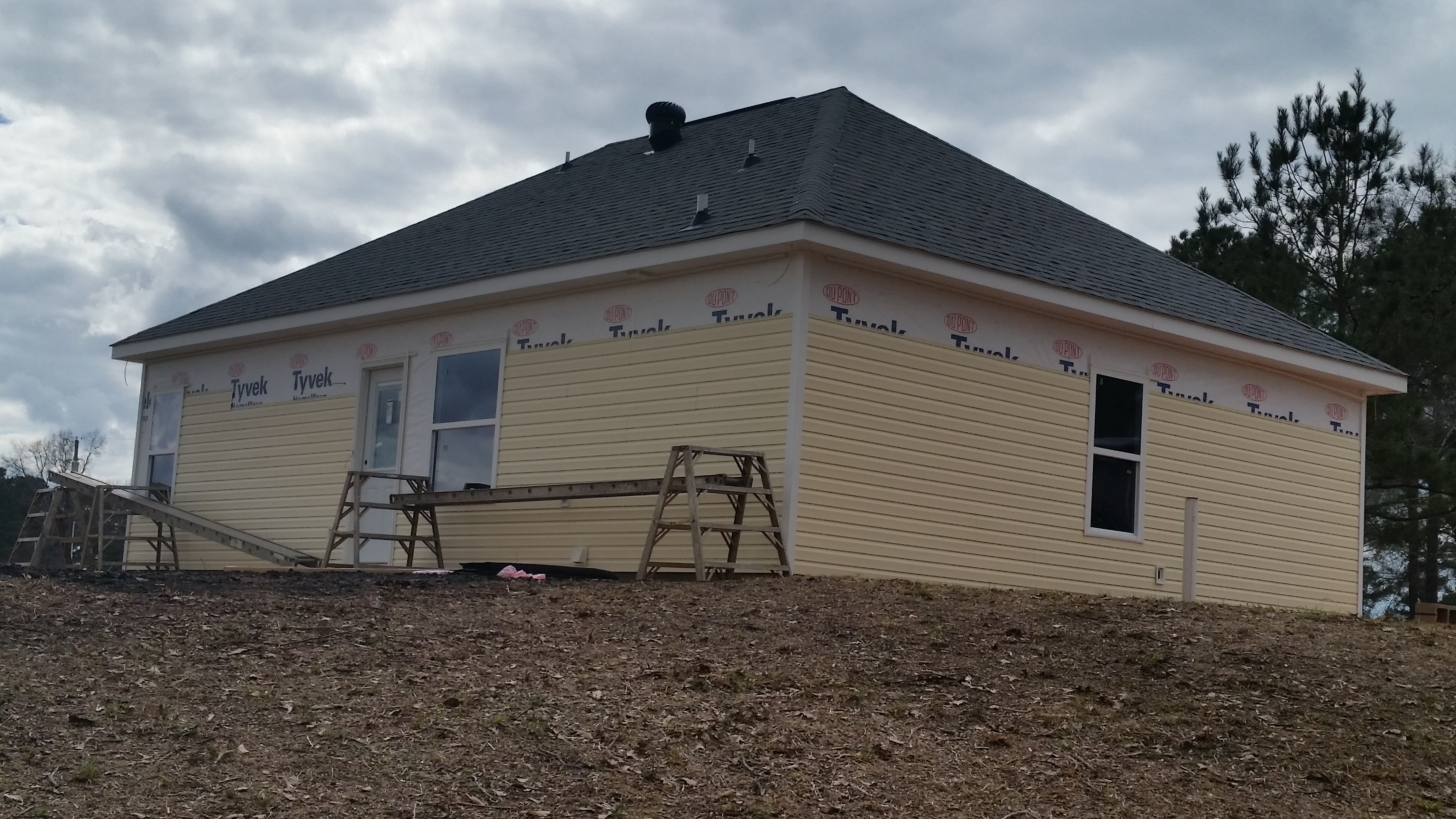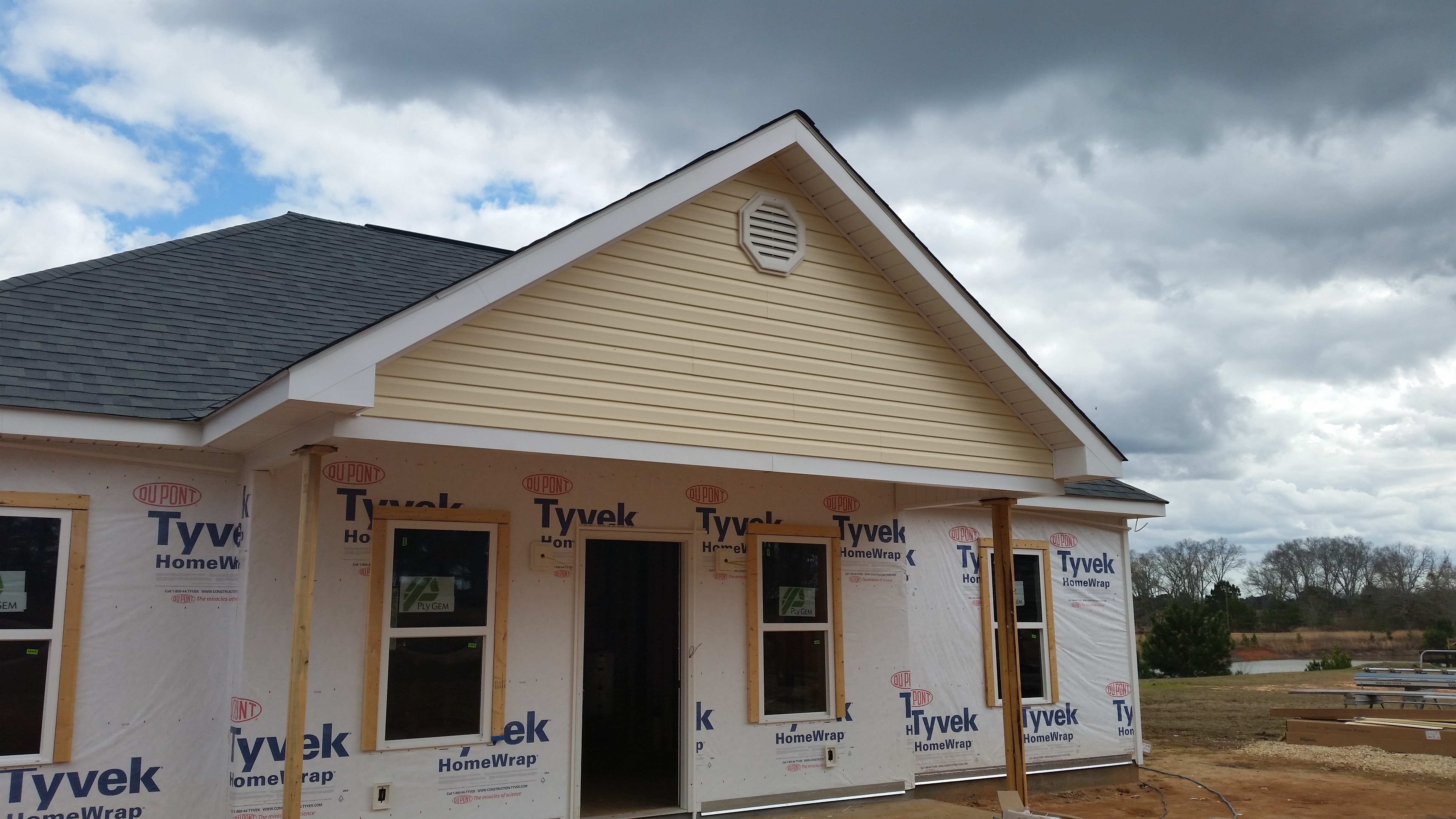 Yesterday morning the vinyl siding men started their work which was interesting to see how it was coming along. It took hours to do all the white trim work yesterday. Today they started the soft yellow (I call it banana cream color) siding. When I pulled up after church they were finishing for the day and hopefully will be back one day this week to finish it off. Three of the sides are done about 5/6 way up and the part over the front porch is done with the octagon shaped vent set in. I love how it looks and how the various components we chose are really coming together! The porch columns, railings, and decorative window headers will be in soon and I hope will nicely finish off the look just right.