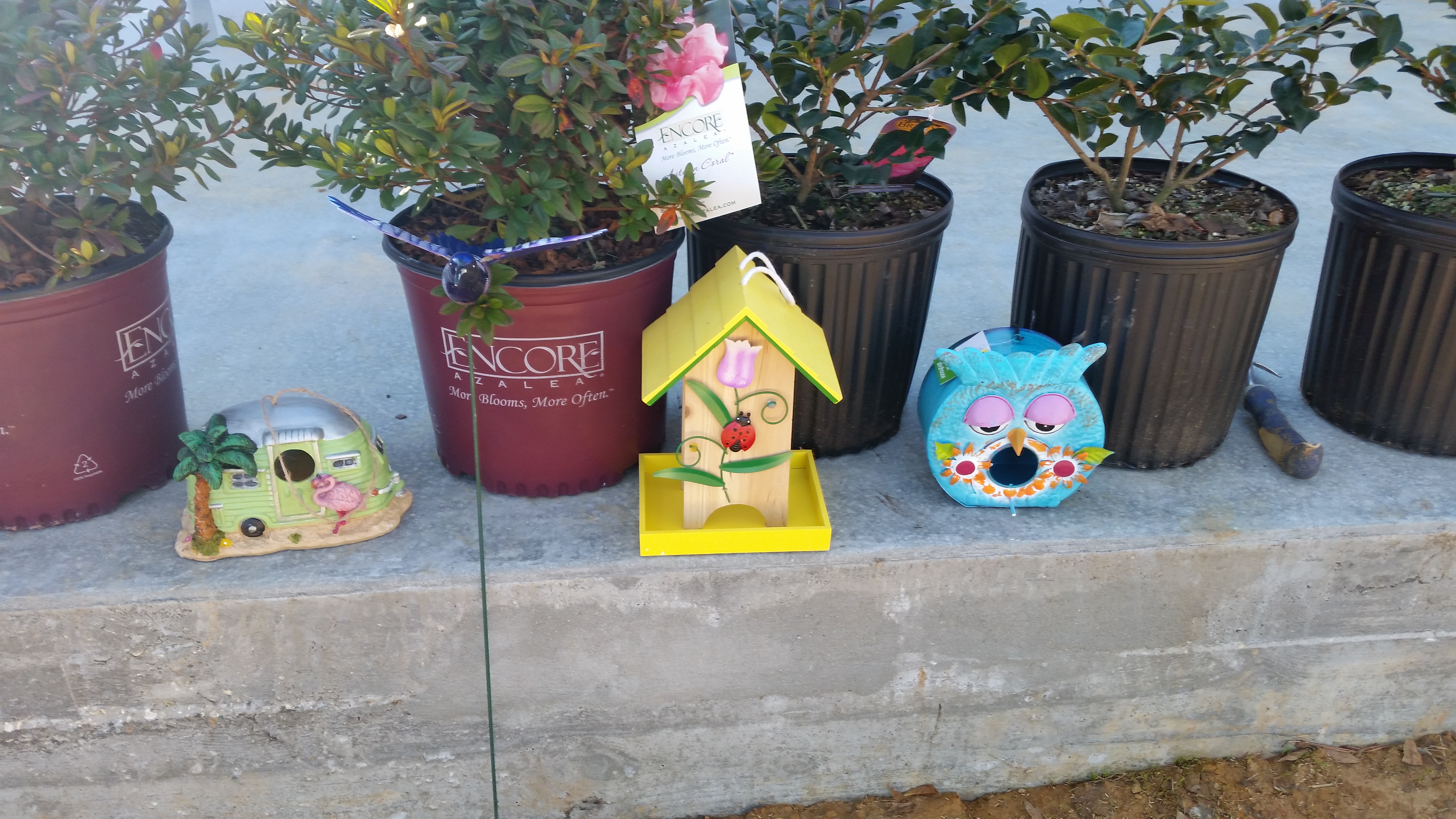 While I was out I stopped at Brown’s Bakery on Highway 16 where I purchased some bavarian cream stuffed cupcakes. Oh my what a treat that was! I also bought some decorative bird feeders to hang on the trees, including on that is shaped like an old time camper with a pink flamingo out front. That one will be hung by our RV patio!