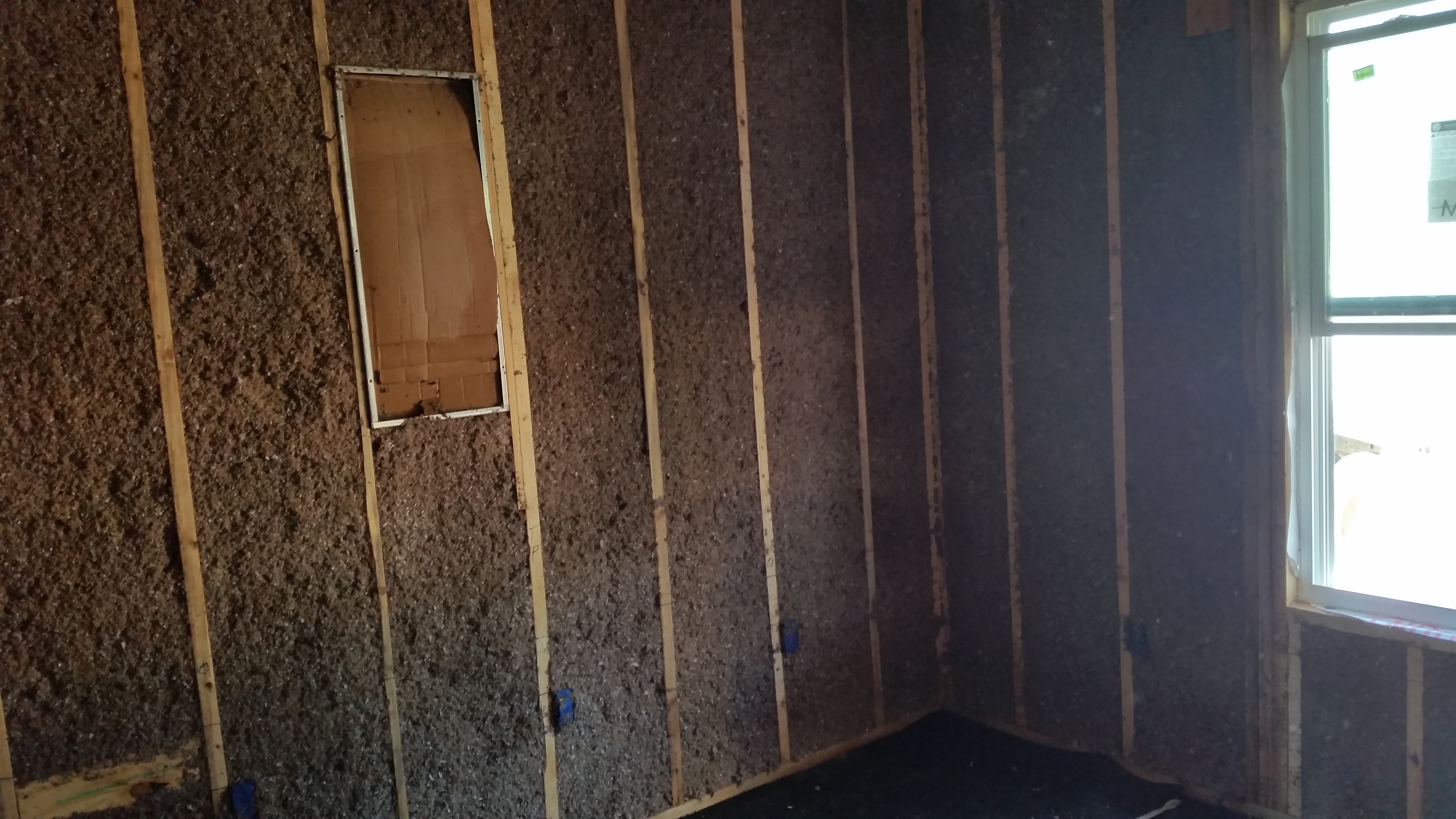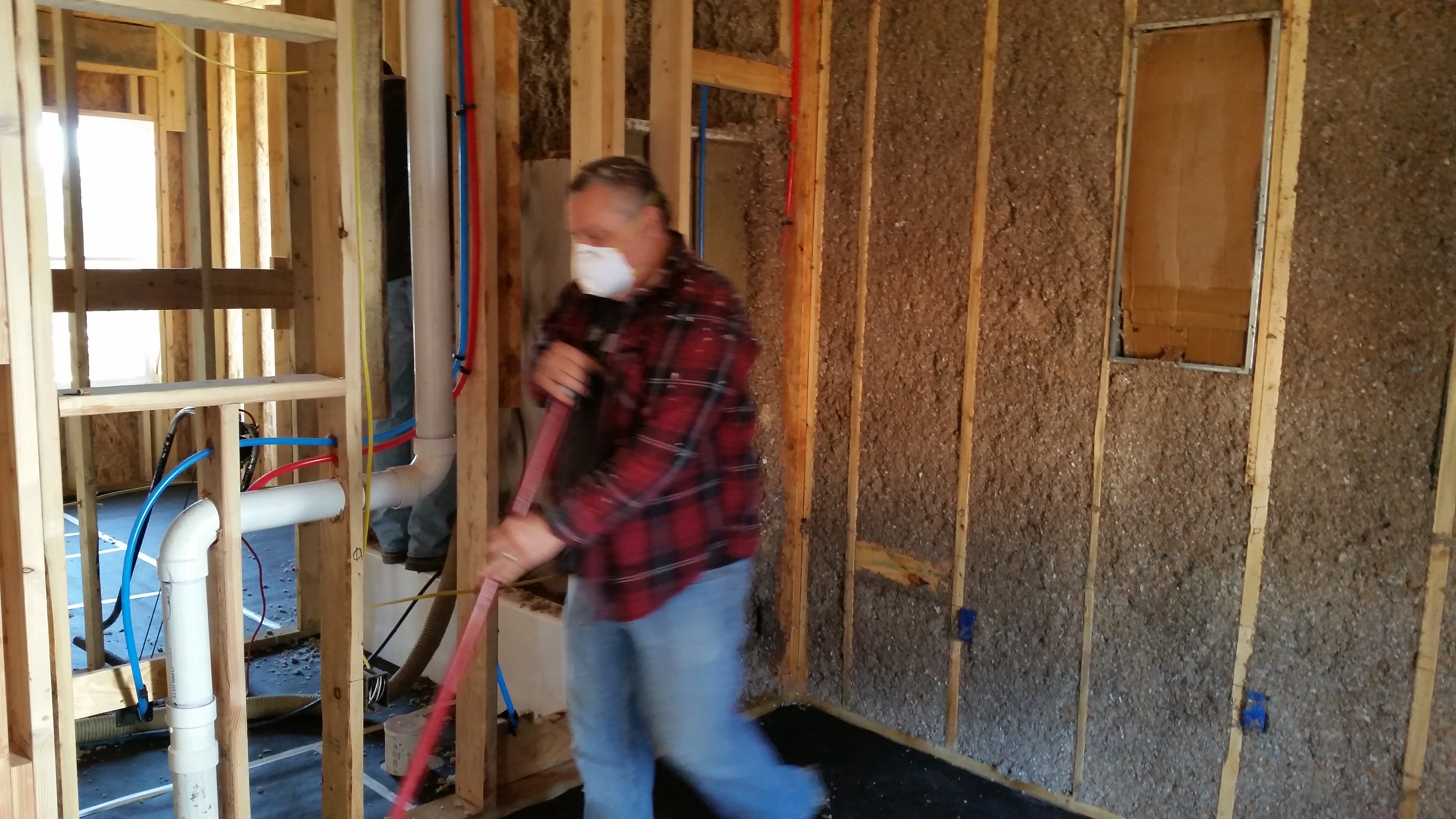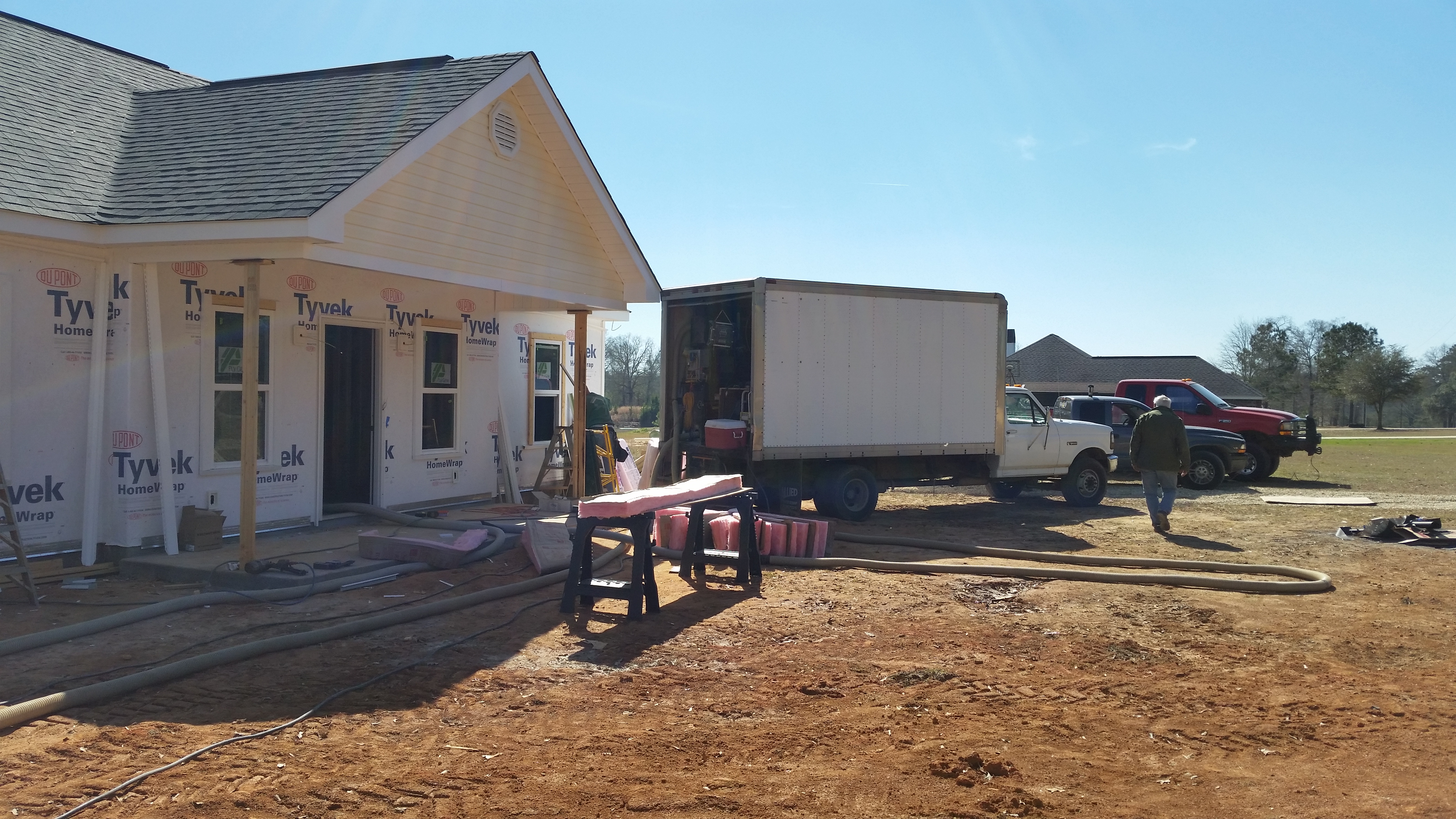 Friday, February 13, 2015 – The vinyl siding installers came back today. The wall insulation man also came and did his thing. Here’s pictures and a short video of the insulation guys doing their thing!
