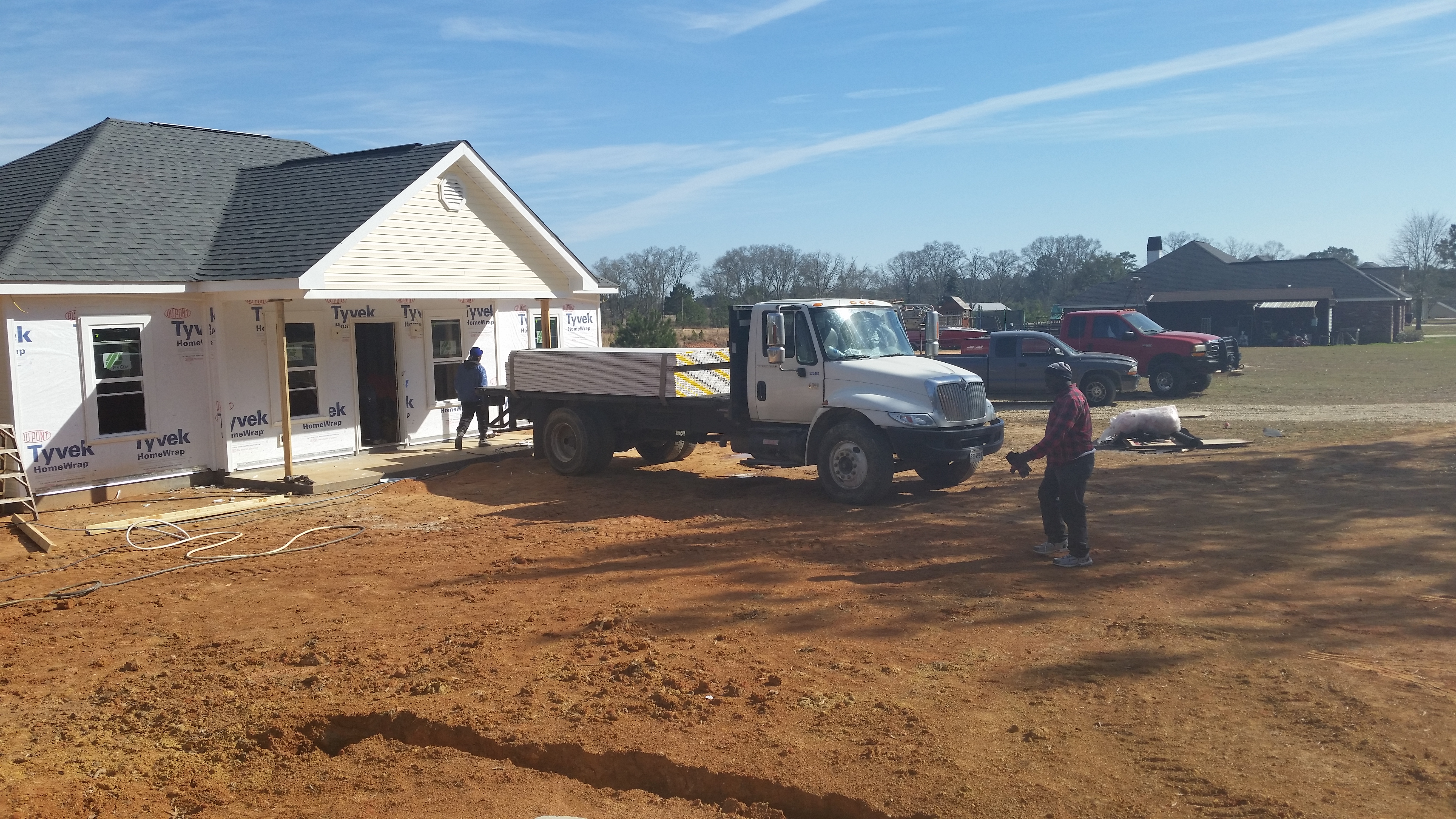 The sheet rock was just delivered ready to be hung, etc. etc. next week! Yay for walls!