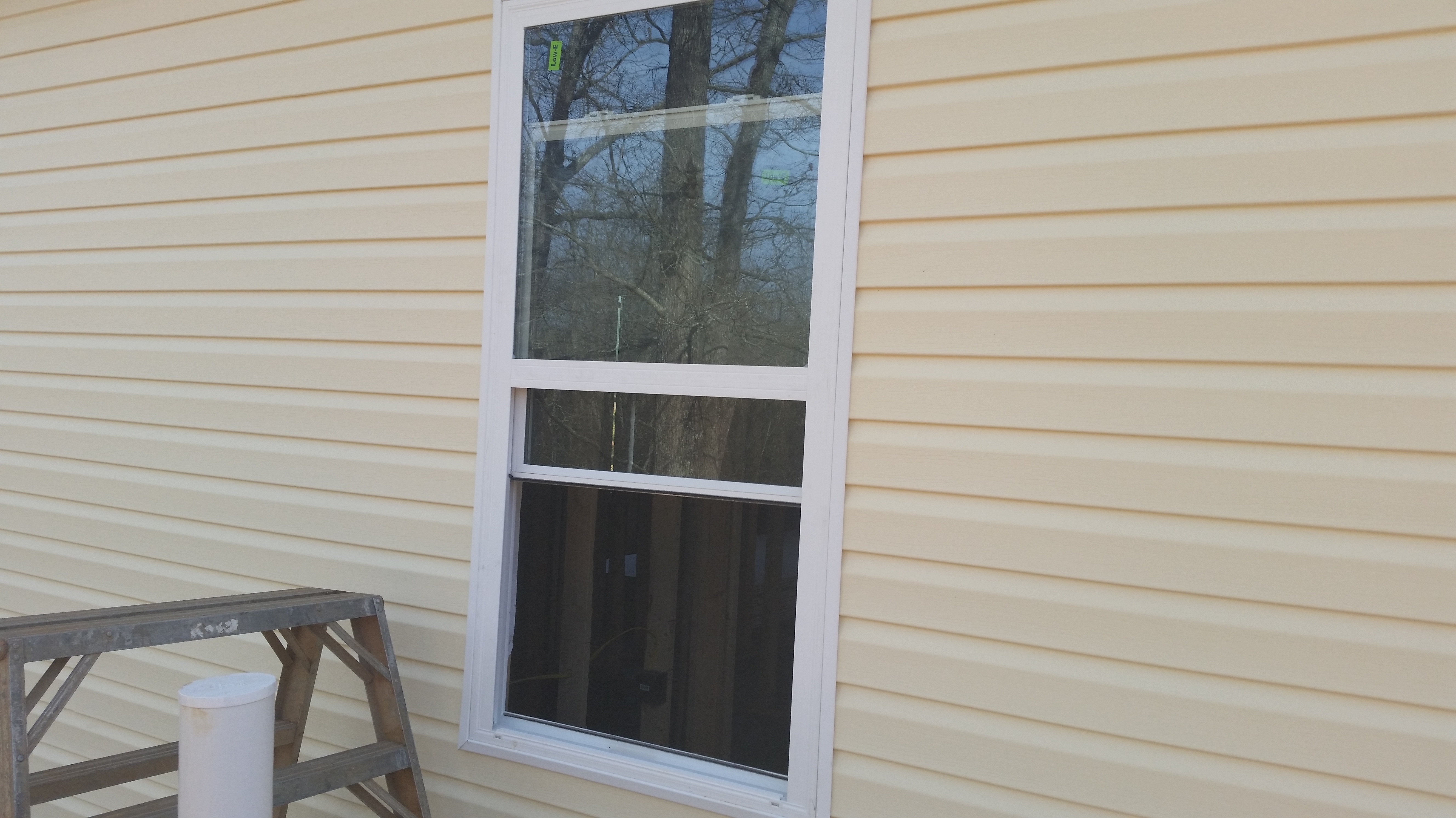 Lots of pictures of the vinyl siding guys. They wrapped the windows with an exterior 2 x 4 wood frame which is then covered with vinyl to match the windows. It creates a more substantial looking window than just a regular window. Only the front four at our house are being wrapped because it ain’t cheap! We’re leaving the shutters off because we really like the look we chose. You’ll see the process throughout the pictures and I warn I took lots of pictures of this!