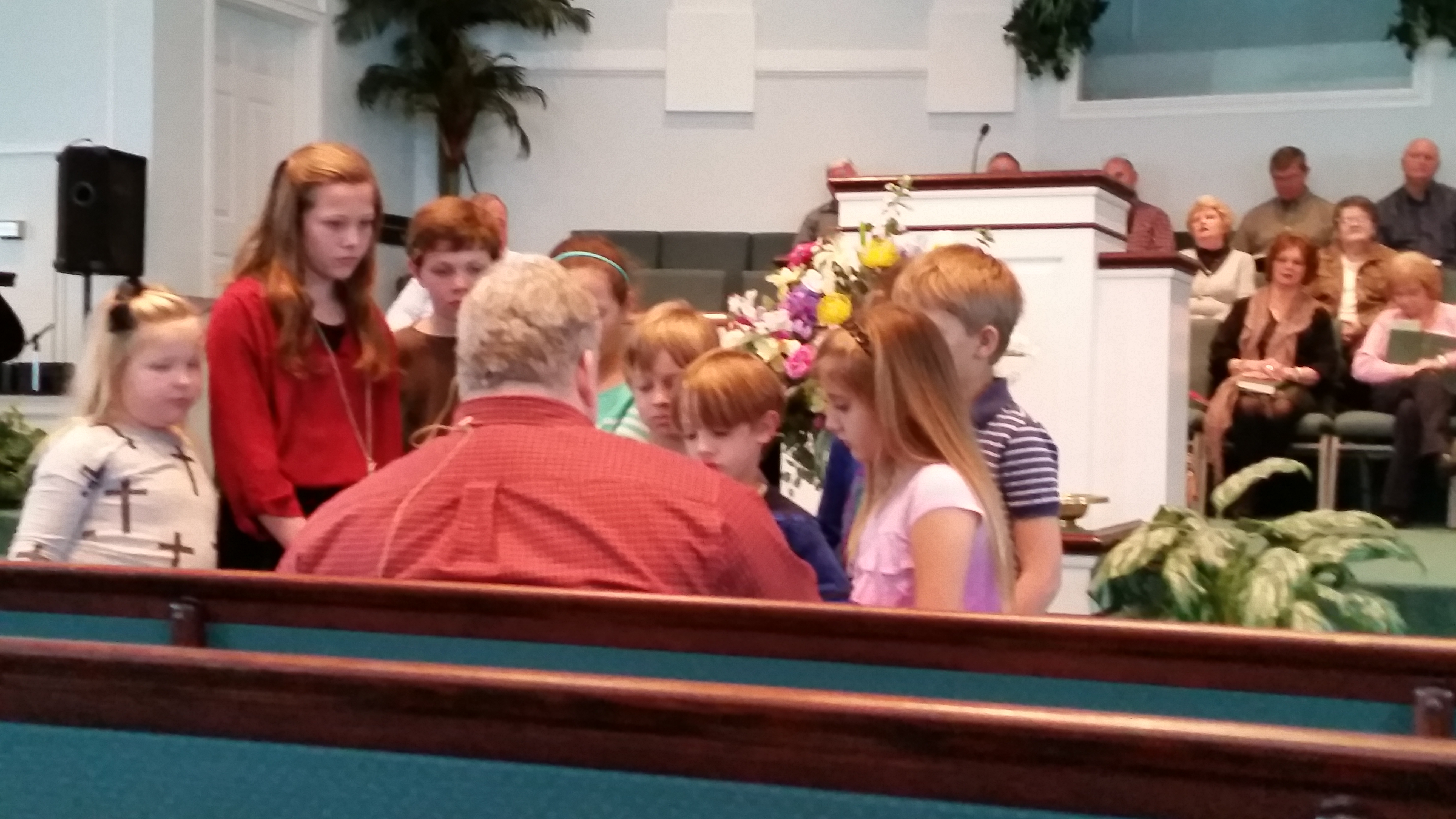 Here Madisyn is with several other children during the special children’s time in the worship service with our pastor Dr. Randy Davis.