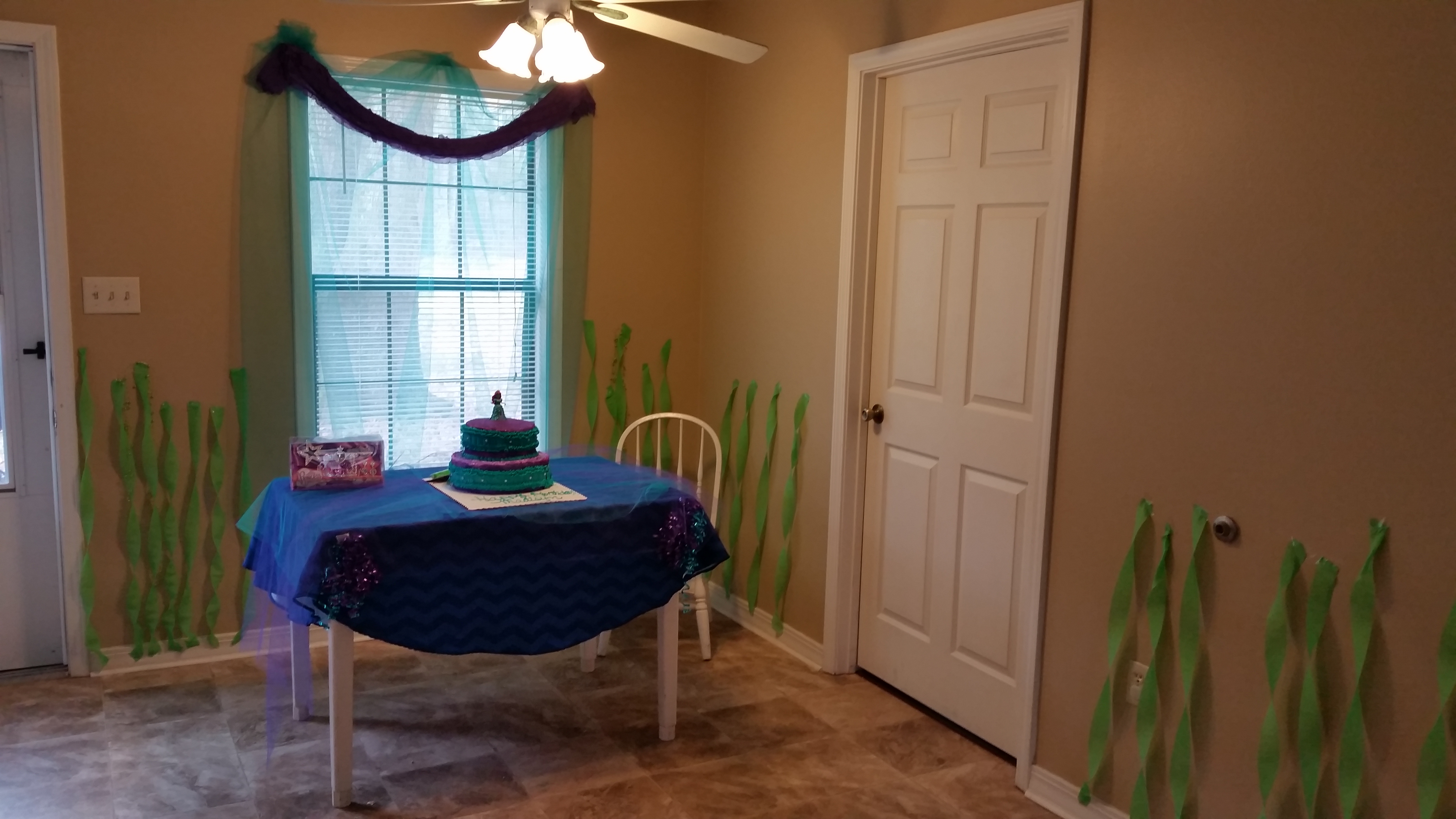 Next are pictures of her “Under the Sea” Ariel birthday party at our son Chip, her daddy’s, home. There were a lot of wonderful under the sea decorations and delicious food outside but I somehow didn’t take one picture of that.
