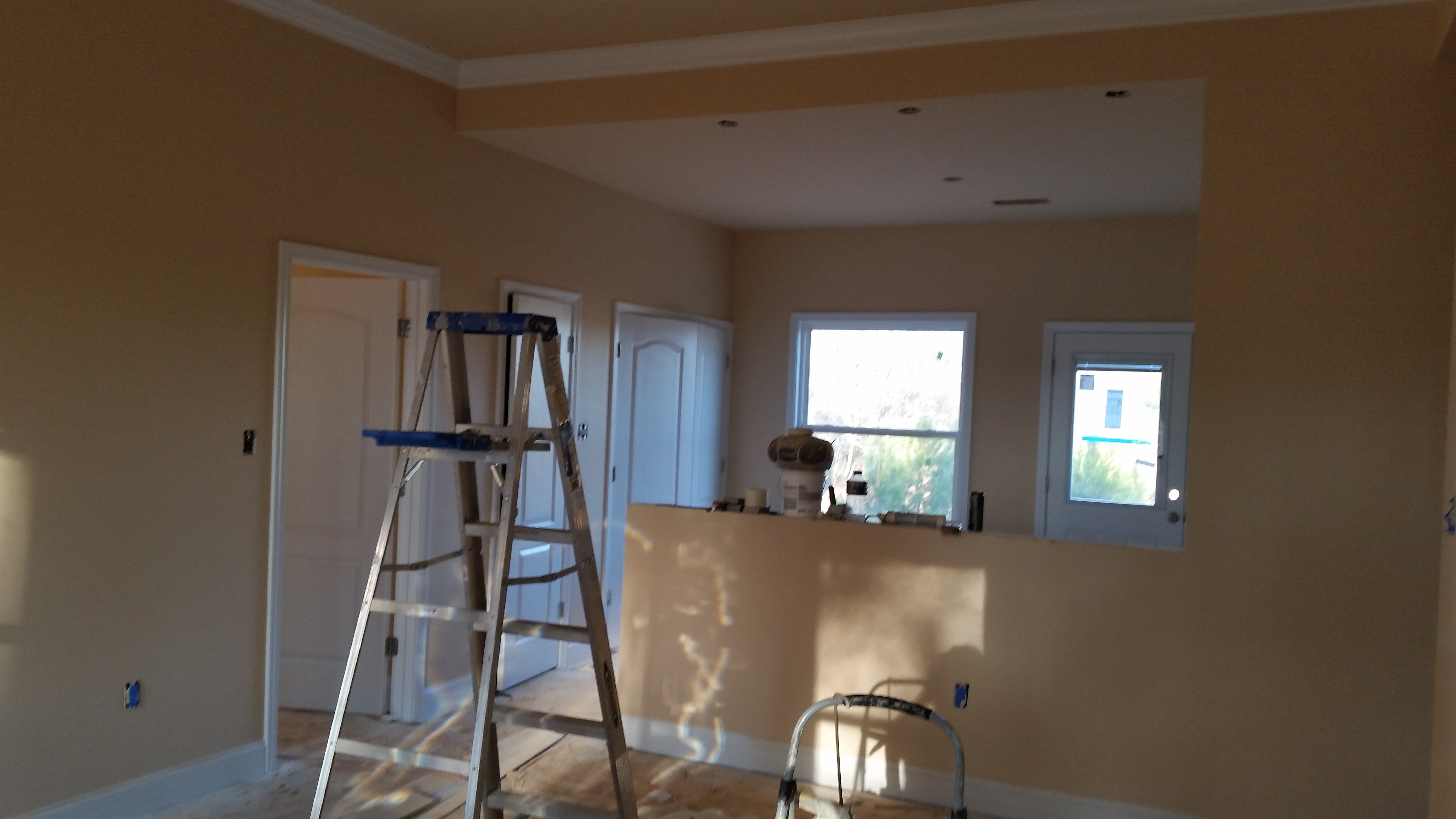 A look at the fresh paint job from the living room into the kitchen. They will be back Monday to finish things up.