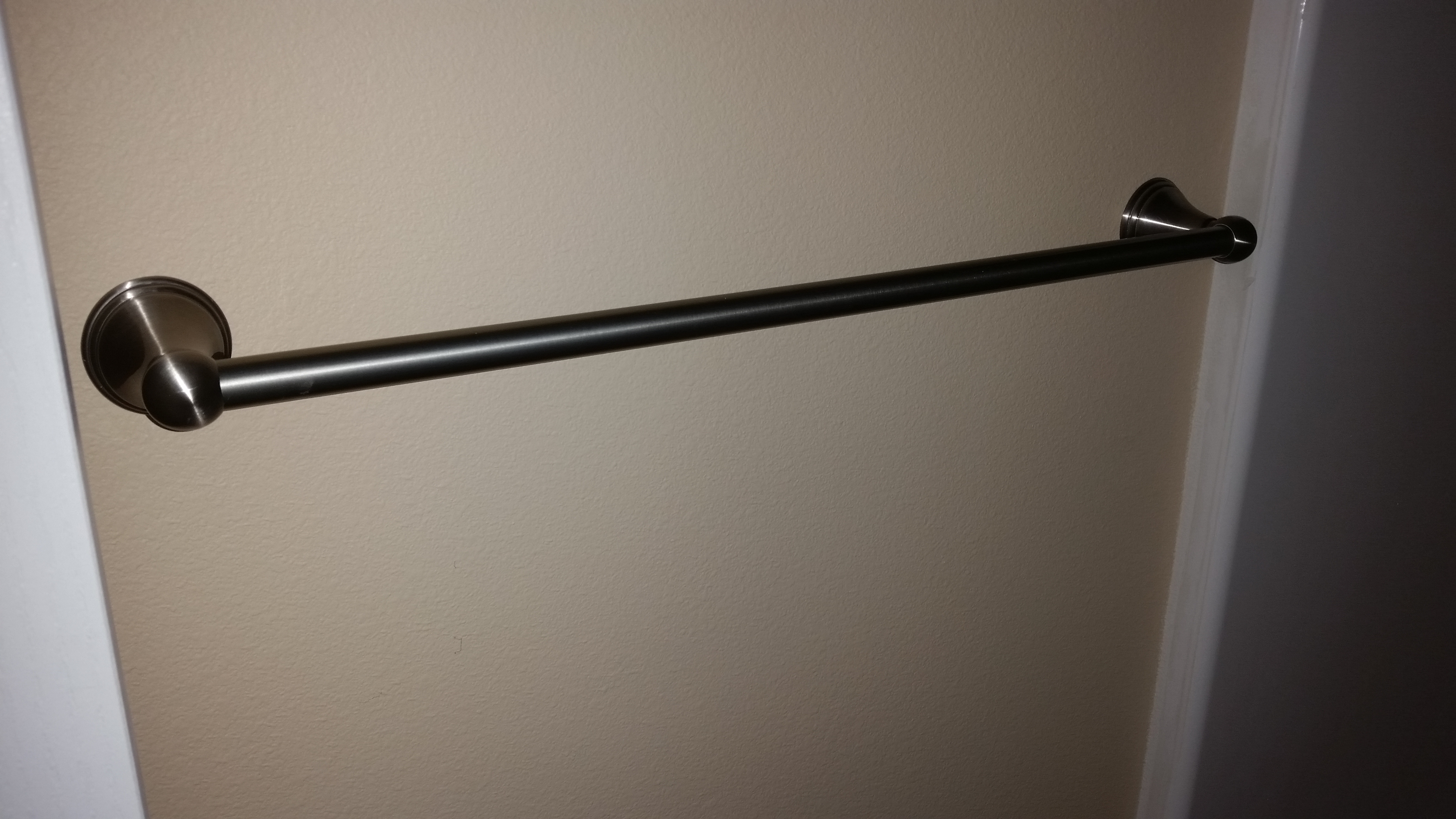 Roy finished up installing the shower rods, bath towel rings, towel bars, toilet paper holders, and window screens this weekend.