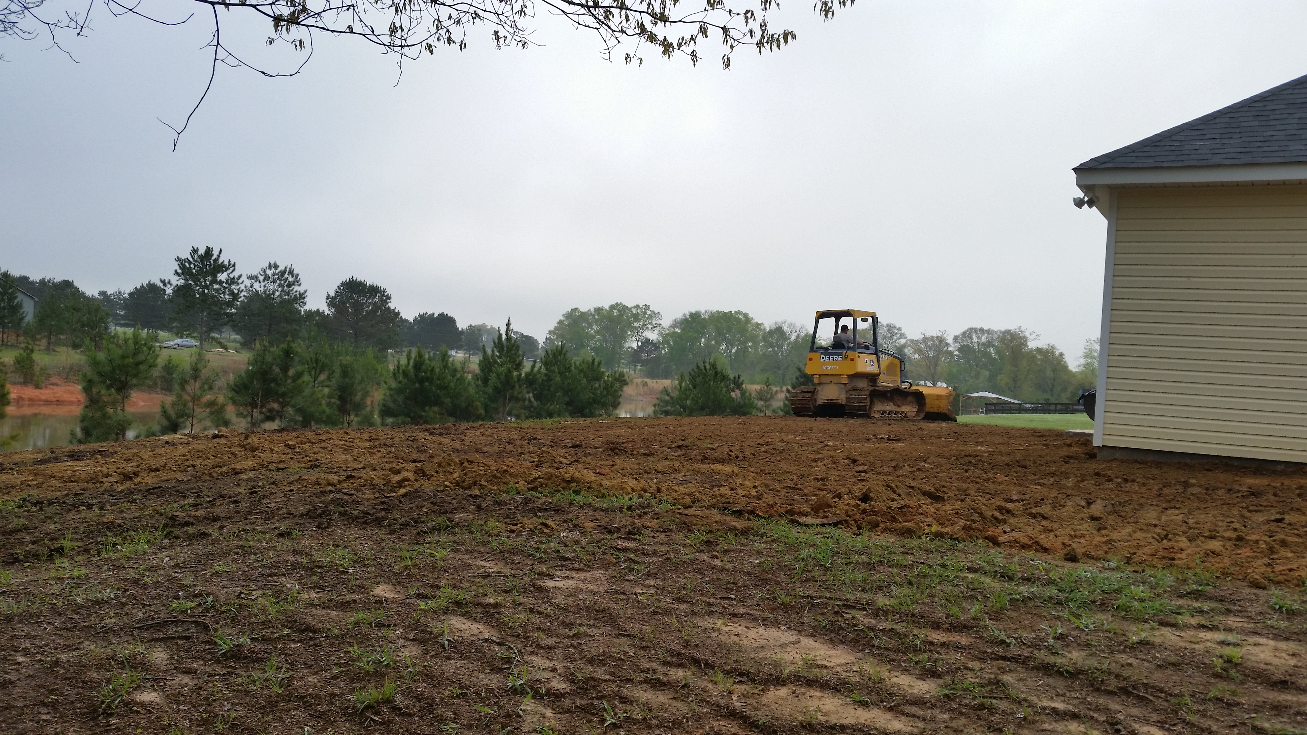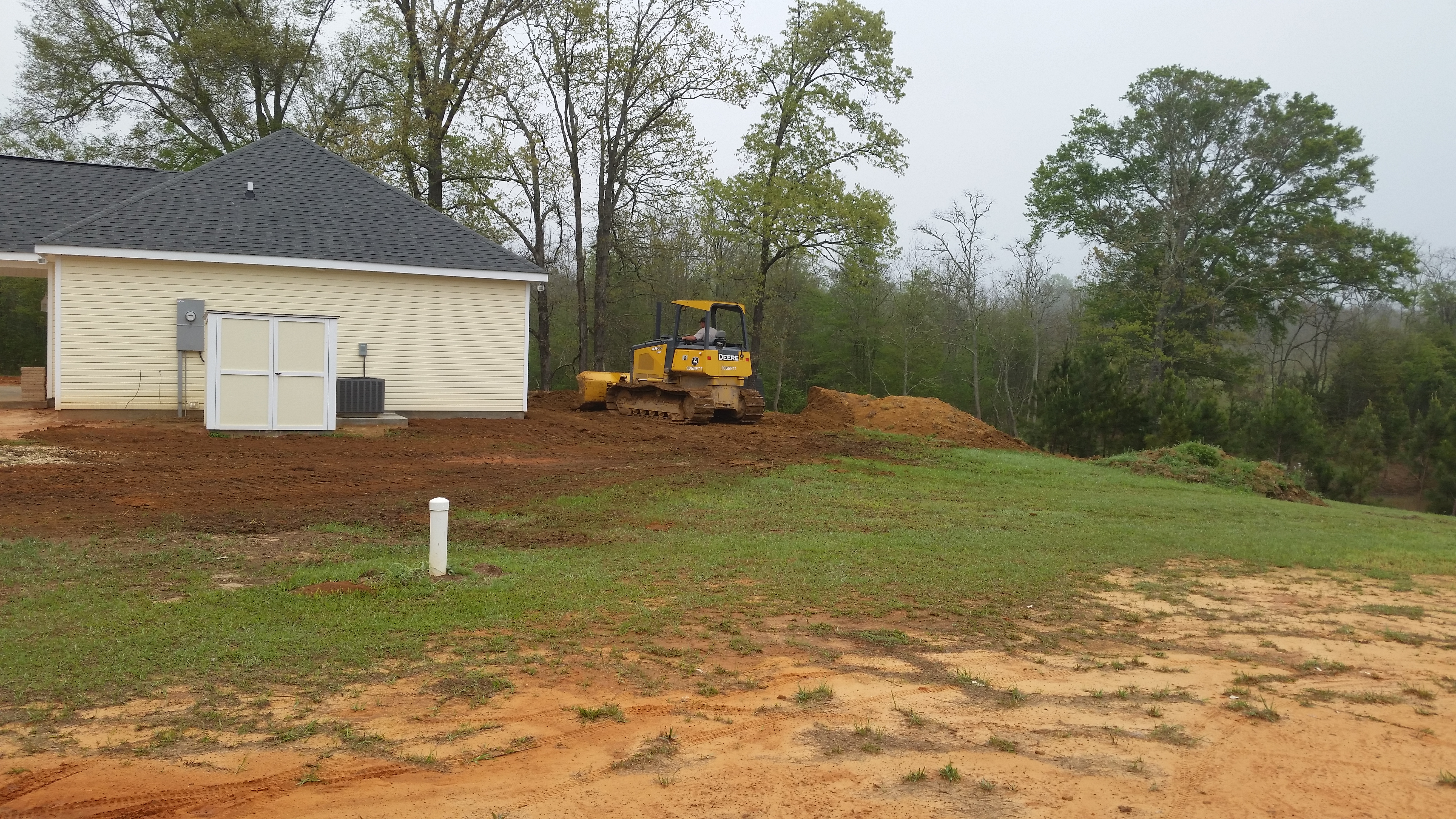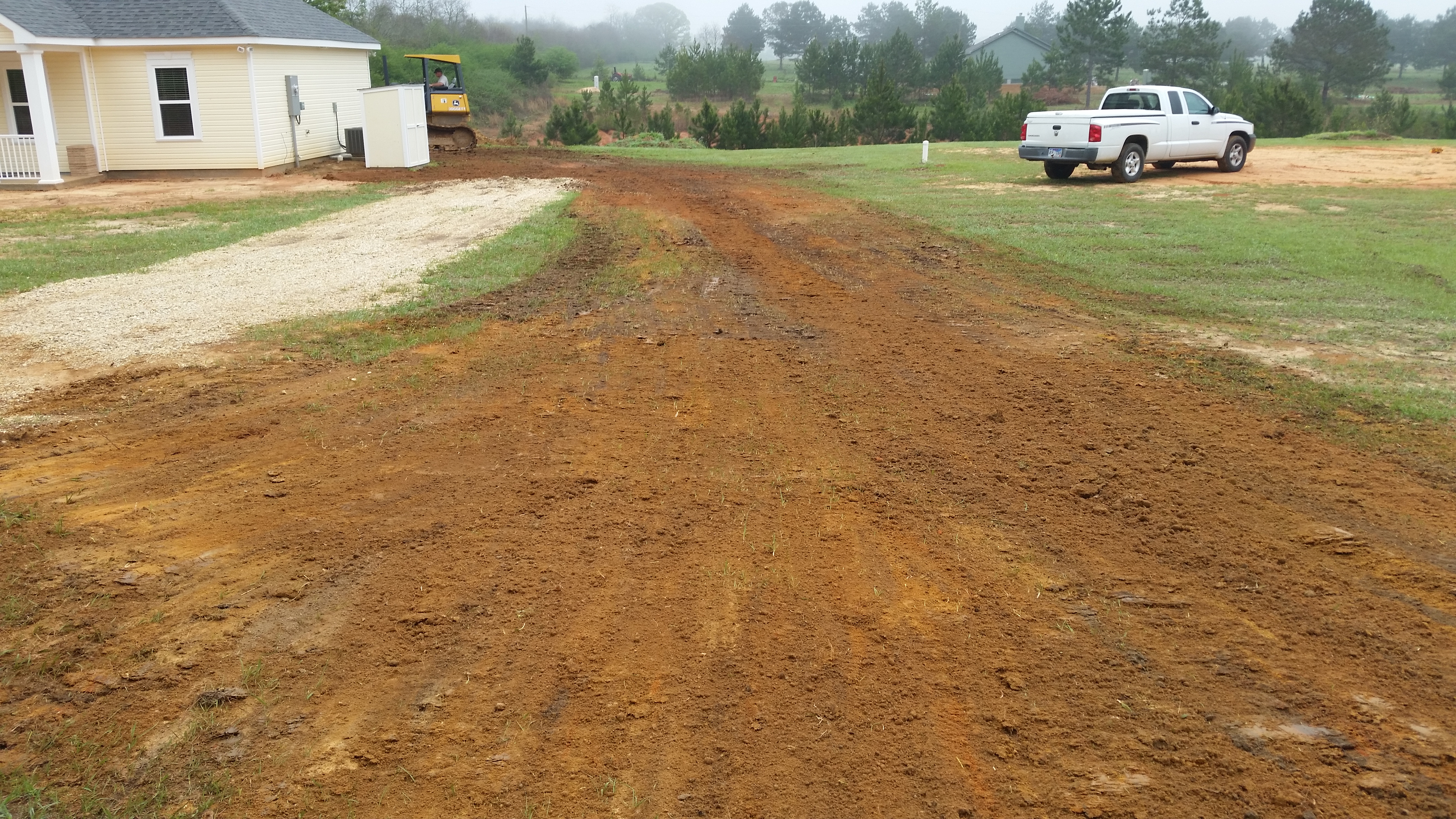 We moved Dora out to the street so the dozer could have room to do it’s thing. We also sat outside with our contractor most of the day watching the work being done. At the end of the day our pockets were much more empty but our yard looks beautiful and even.