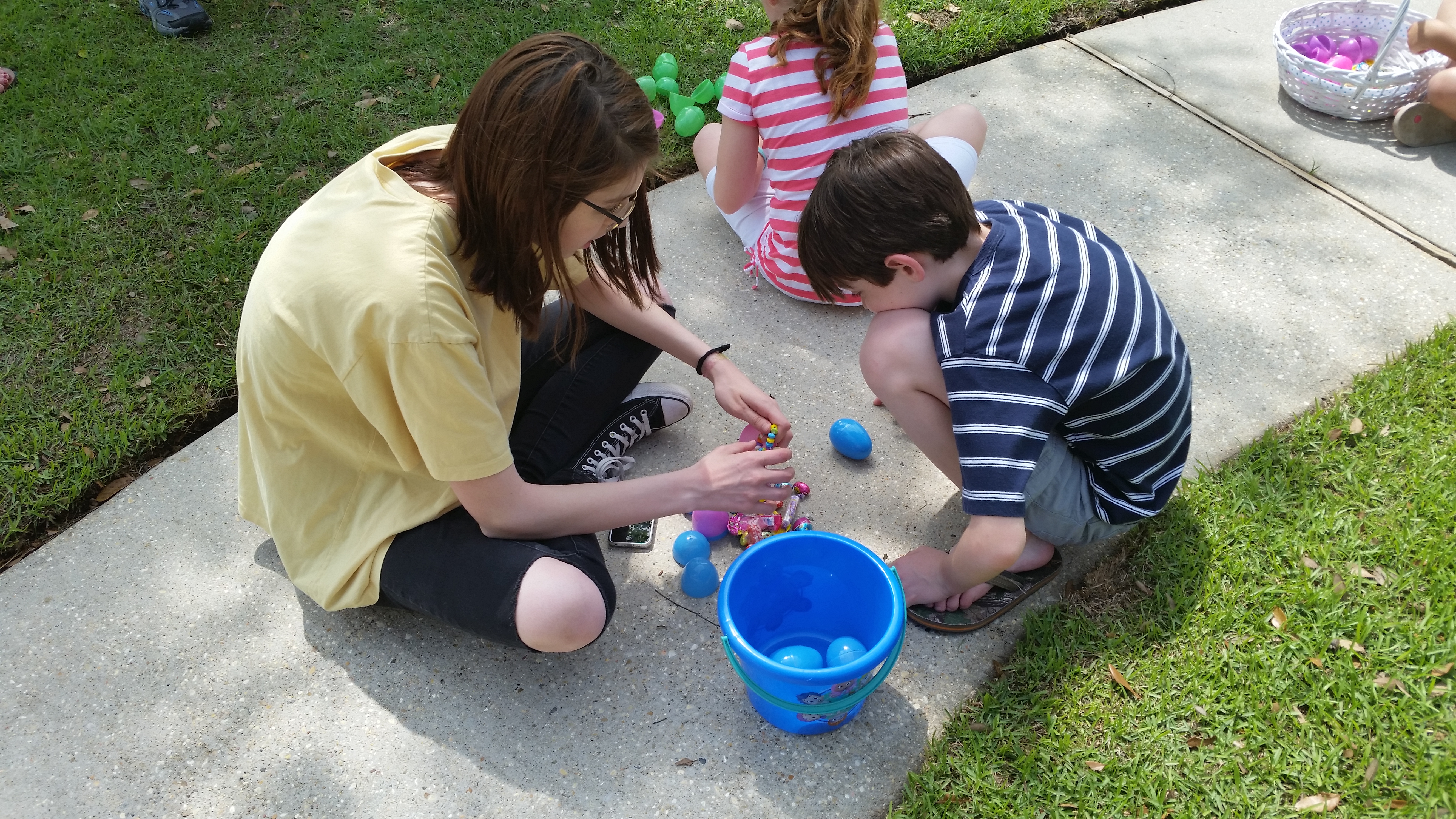 Saturday, April 4, 2015 – We met Chip’s family at my sister Harriett’s house in Madisonville for our Easter Family gathering. That’s what the filled plastic eggs were for.